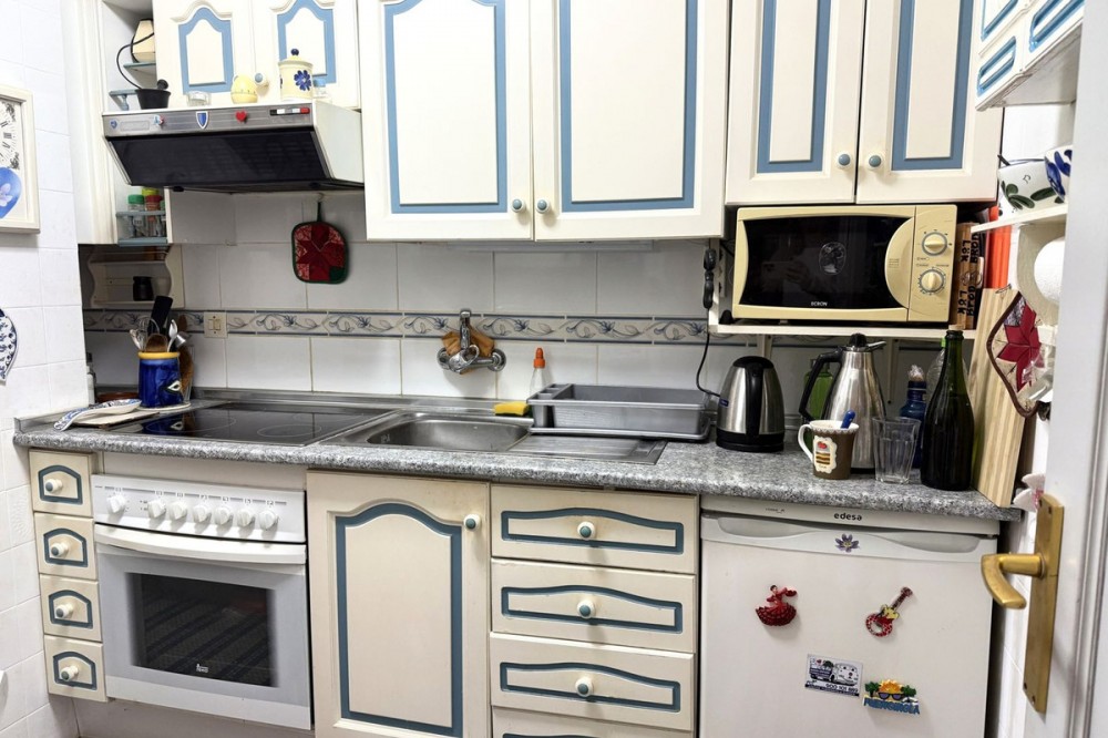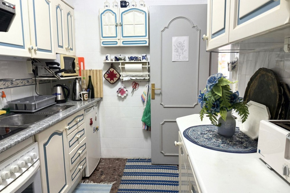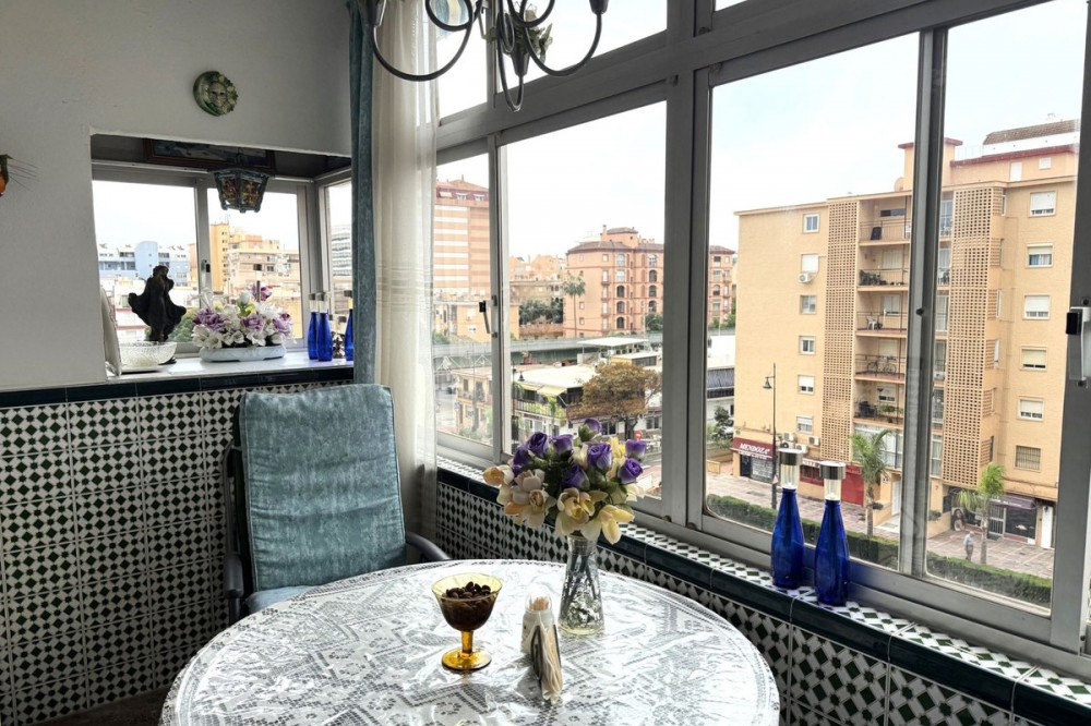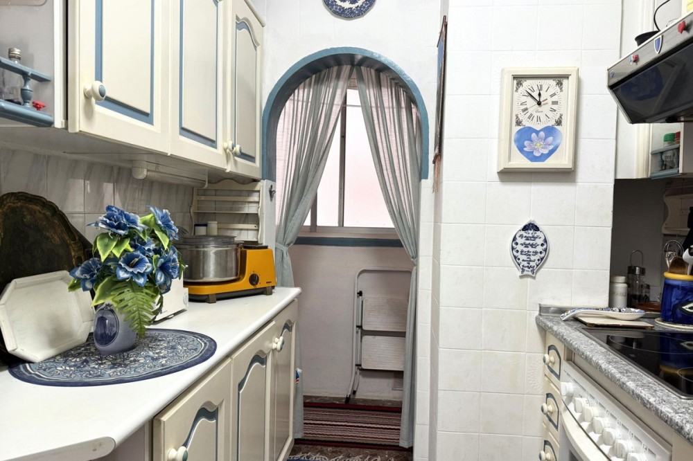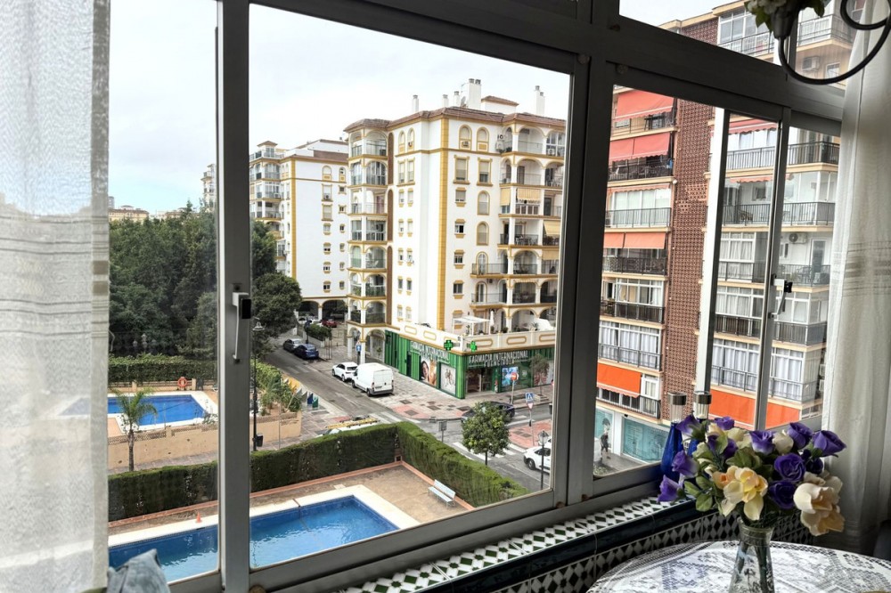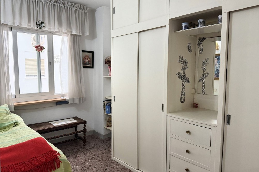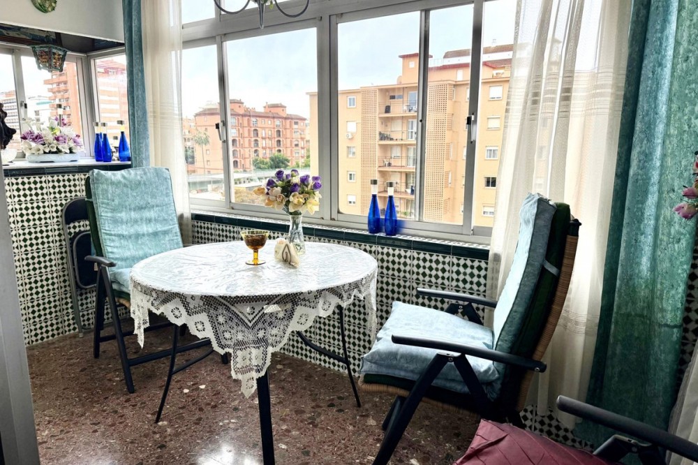 - Spacious apartment centrally located in Los Boliches with southwest orientation and open views. Convenient walking distance to the beach, train station, supermarket, pharmacy, etc. The apartment has a hall, living room-dining room with access to a glazed terrace with afternoon sun and views of the neighboring property's pool area. Next to the living room is the kitchen, which is fully equipped and adjacent to it there is a laundry room with space for storage and a small sauna with toilet and shower. From the living room there is an inner hall where we find a bathroom with bathtub and three bedrooms with built-in wardrobes. There are two communal pools in the area.