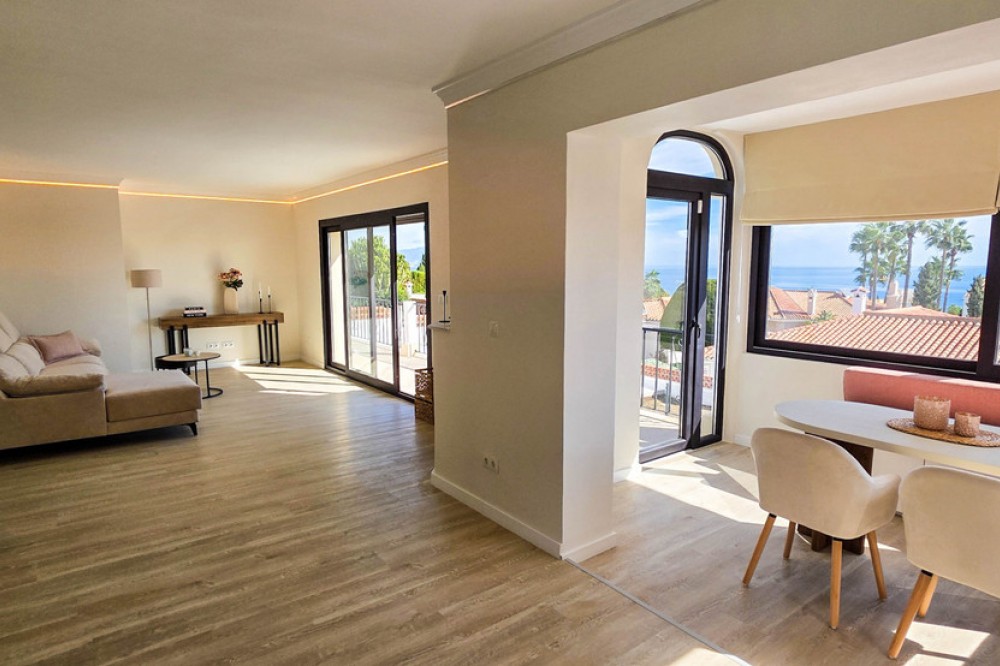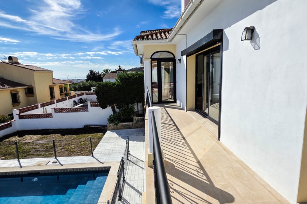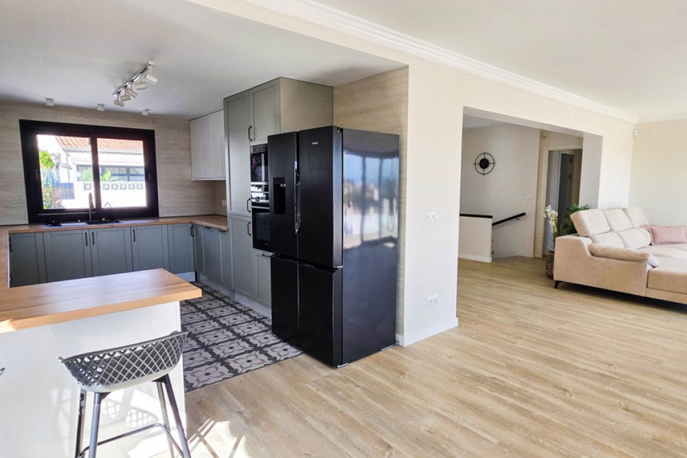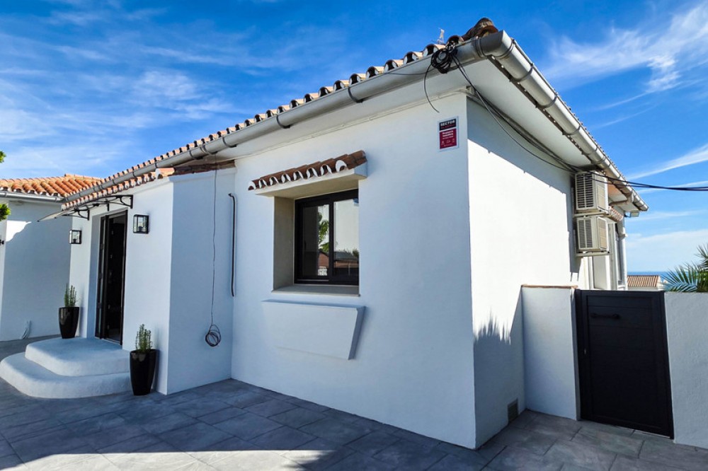 - Deze prachtig gerenoveerde villa in Manilva biedt modern comfort, hoogwaardige afwerking en een adembenemend uitzicht op zee, allemaal op loopafstand van het strand. Ontworpen met zowel stijl als functionaliteit in gedachten, is deze woning zo goed als gloednieuw en instapklaar. De villa beschikt over vier ruime slaapkamers en drie badkamers, elk afgewerkt met hoogwaardige materialen en voorzieningen. Er is volop bergruimte in het hele huis. De badkamers zijn voorzien van vloerverwarming en in elke kamer zijn nieuwe, individueel regelbare airconditioningunits geïnstalleerd voor optimaal comfort het hele jaar door. De keuken is uitgerust met hoogwaardige apparatuur en het open ontwerp zorgt voor veel natuurlijk lichtinval in het hele huis. Toegankelijkheid is zorgvuldig geïntegreerd, met een traplift en een rolstoelvriendelijke indeling, waardoor het ideaal is voor alle generaties. Buiten bieden een privézwembad en een zonneterras een uitnodigende ruimte om te genieten van het panoramische uitzicht op zee en het mediterrane klimaat. Een garage biedt veilige parkeergelegenheid en extra opslagruimte. Deze woning ligt in een rustige maar gunstige buurt van Manilva, dicht bij het strand, de jachthaven, restaurants en lokale voorzieningen – perfect voor een ontspannen leven aan de kust. De luchthaven van Malaga ligt op ongeveer 1 uur rijden met de auto en de luchthaven van Gibraltar is in ongeveer 30 minuten te bereiken. Dit is een unieke kans om een volledig gerenoveerde, energiezuinige villa te kopen met een uitzonderlijk uitzicht op zee en hoogwaardige voorzieningen.