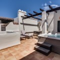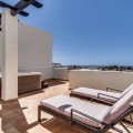 - Discover the ultimate Costa del Sol lifestyle in this modern 2-bedroom, 2-bathroom duplex penthouse located in the exclusive Urbanización Sunset Golf, Estepona. This south-facing home offers panoramic sea views and a light-filled open-plan layout designed for comfort and style. The spacious living area connects seamlessly to a 65m² private terrace, featuring a private jacuzzi — perfect for relaxing and entertaining while enjoying the Mediterranean panorama. The property includes two elegant bathrooms (one en-suite), a fully equipped contemporary kitchen, and high-quality finishes throughout. Set within a secure gated community with a doorman, residents enjoy beautifully maintained gardens and a large communal pool. Additional highlights include: Two underground parking spaces Private storage room South orientation for maximum sunlight 20-minute walk to the beach Only 10 minutes from Marbella and Estepona This penthouse is the perfect blend of luxury, privacy, and convenience — an exceptional home for permanent living or as a high-end holiday retreat.