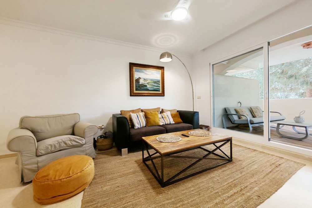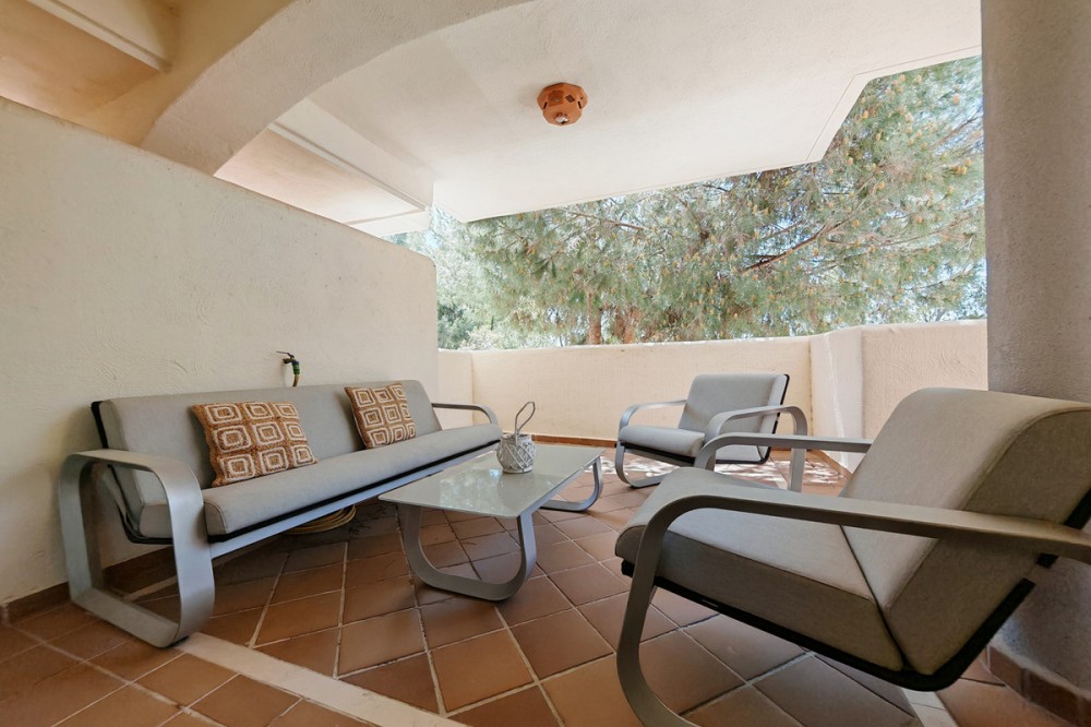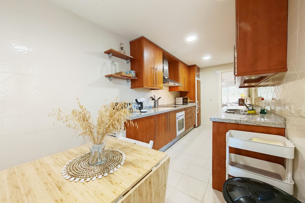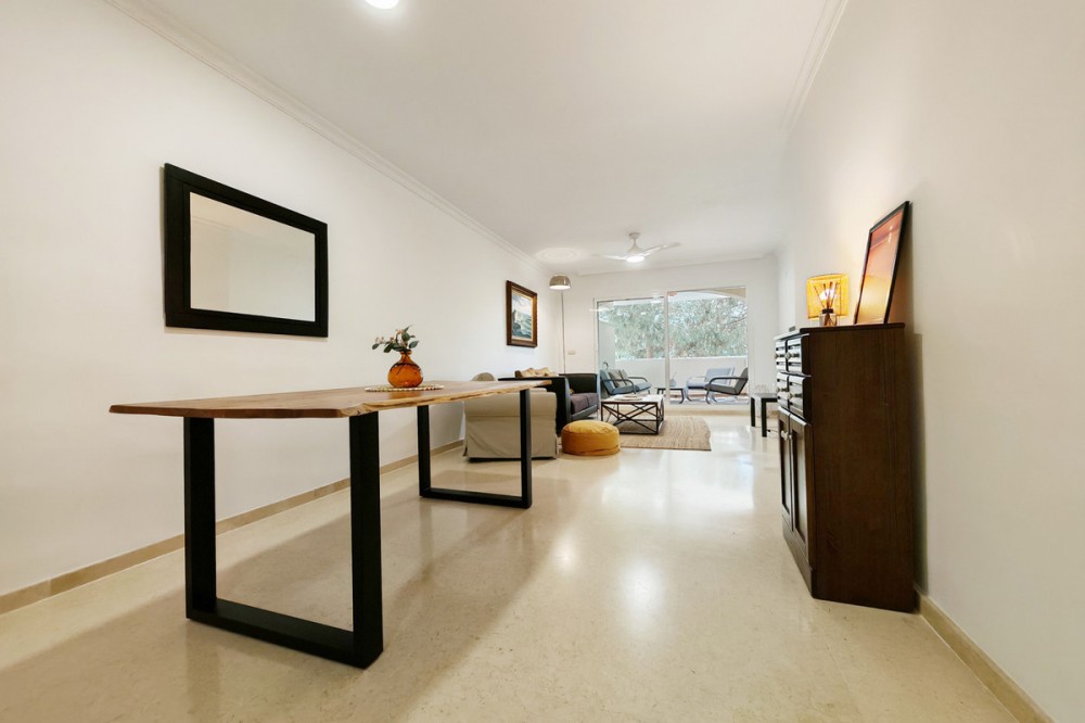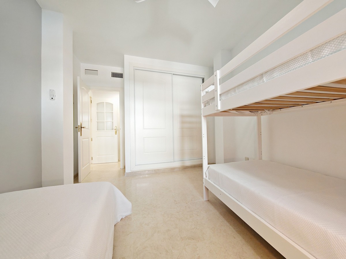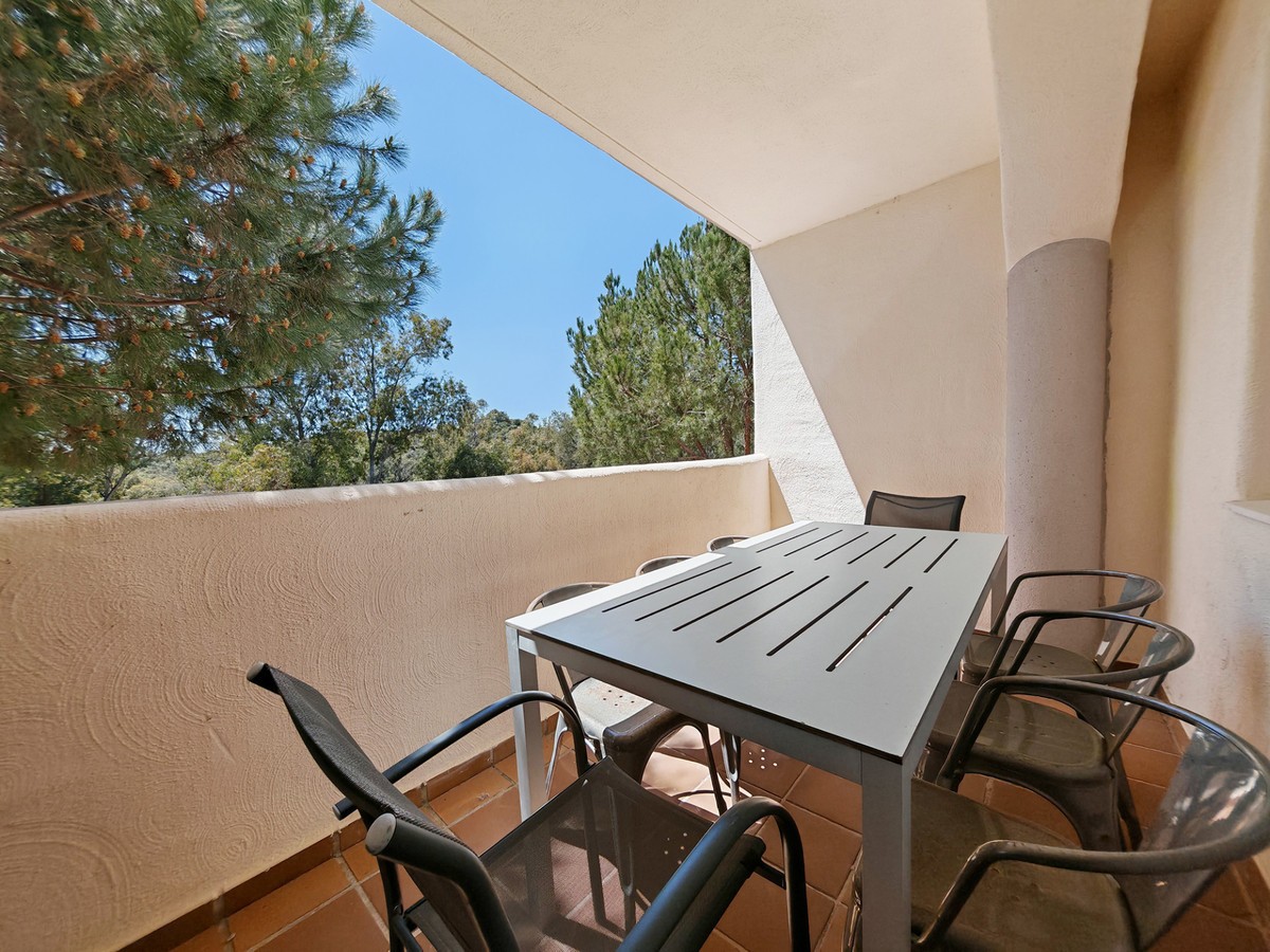 - Apartment for sale in Elviria, Marbella with 2 bedrooms, 2 bathrooms, 1 on suite bathroom and with orientation south/west, with communal swimming pool, communal garage (1 parking spaces) and communal garden. Regarding property dimensions, it has 123 m² built and 16.25 m² terrace. Has the following facilities amenities near, air conditioning, fully furnished, fully fitted kitchen, marble floors, private terrace, kitchen equipped, water tank, country view, indoor pool, laundry room, internet - wi-fi, covered terrace, fitted wardrobes, gated community, lift, close to sea / beach, close to golf, balcony, excellent condition, ceiling cooling system, close to town, close to schools, surveillance cameras, inside golf resort and close to restaurants.