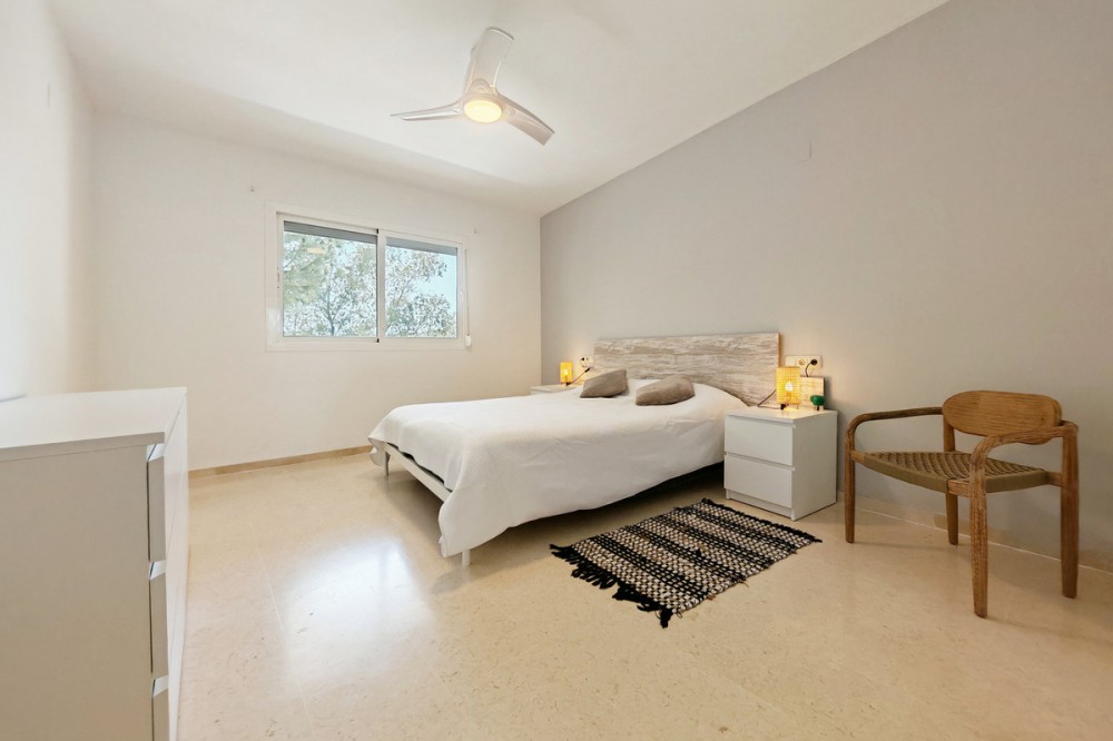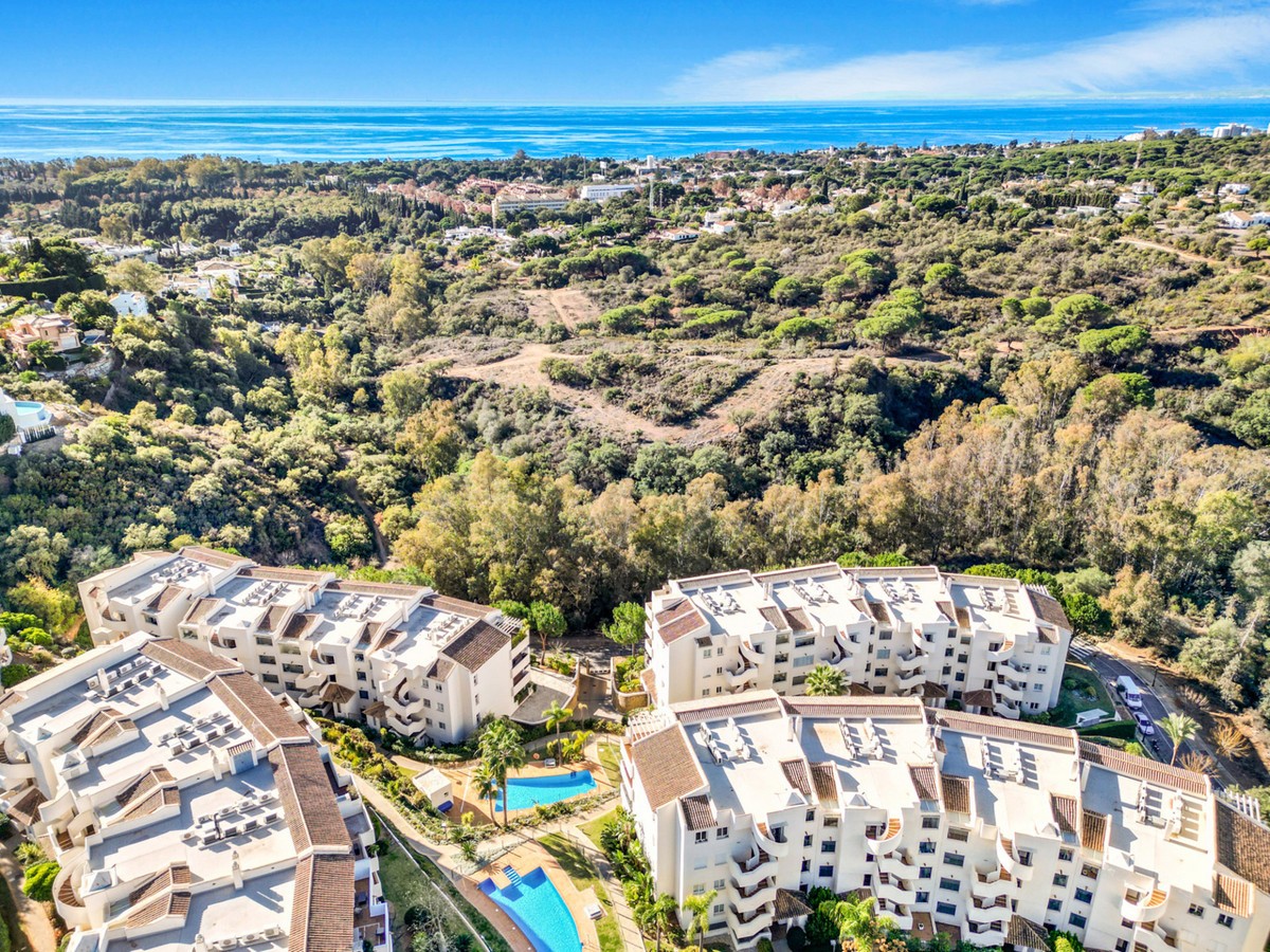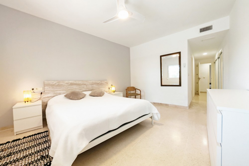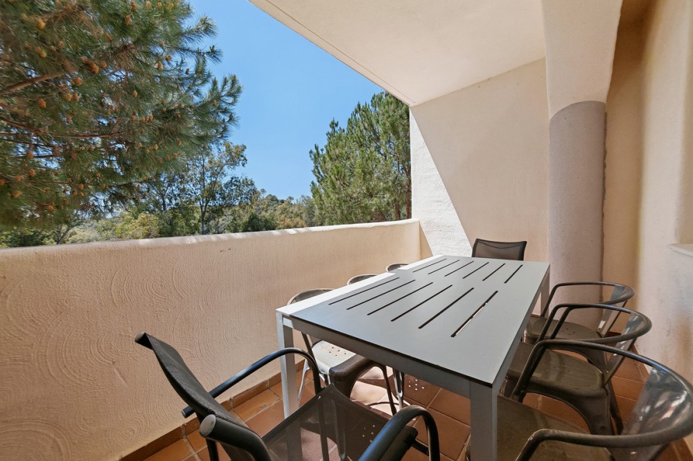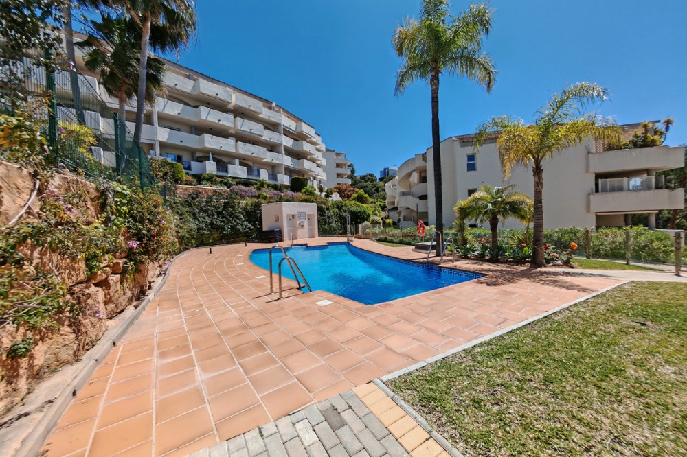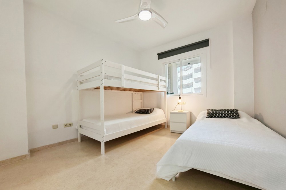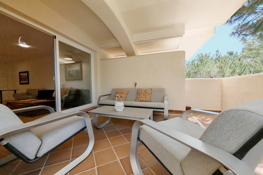 - Apartment for sale in Elviria, Marbella with 2 bedrooms, 2 bathrooms, 1 on suite bathroom and with orientation south/west, with communal swimming pool, communal garage (1 parking spaces) and communal garden. Regarding property dimensions, it has 123 m² built and 16.25 m² terrace. Has the following facilities amenities near, air conditioning, fully furnished, fully fitted kitchen, marble floors, private terrace, kitchen equipped, water tank, country view, indoor pool, laundry room, internet - wi-fi, covered terrace, fitted wardrobes, gated community, lift, close to sea / beach, close to golf, balcony, excellent condition, ceiling cooling system, close to town, close to schools, surveillance cameras, inside golf resort and close to restaurants.