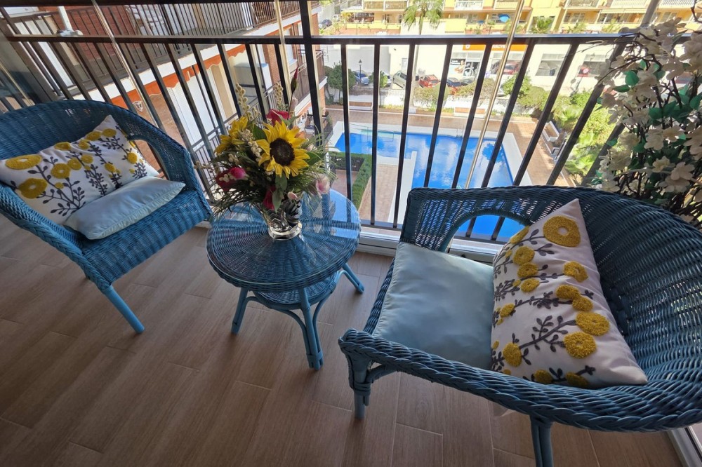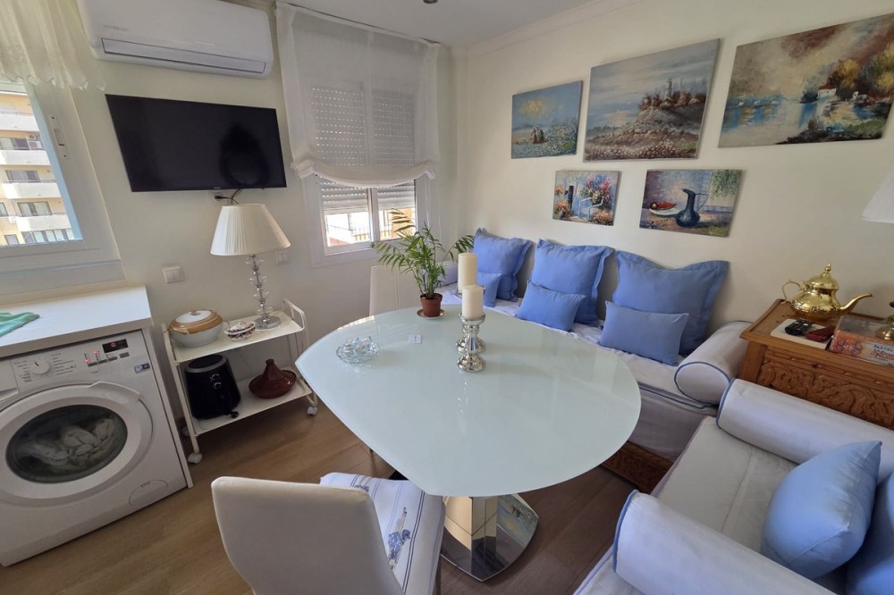 - Excellent apartment located just 300 meters from the beach in a highly sought-after location in Fuengirola, close to all amenities, supermarkets, schools, train and bus stations. The apartment has been completely renovated and is in impeccable condition. It comprises a living-dining room, a terrace with Lumon glass, 2 spacious bedrooms with wardrobes, 2 bathrooms, and a kitchen with space for a dining area where daily life takes place. It also has a communal swimming pool and parking.