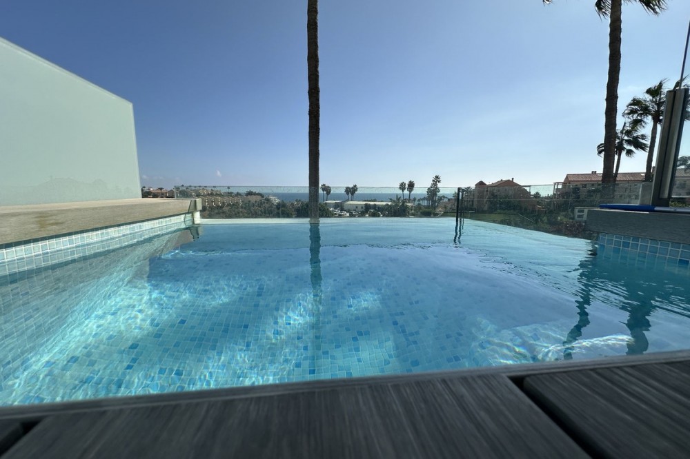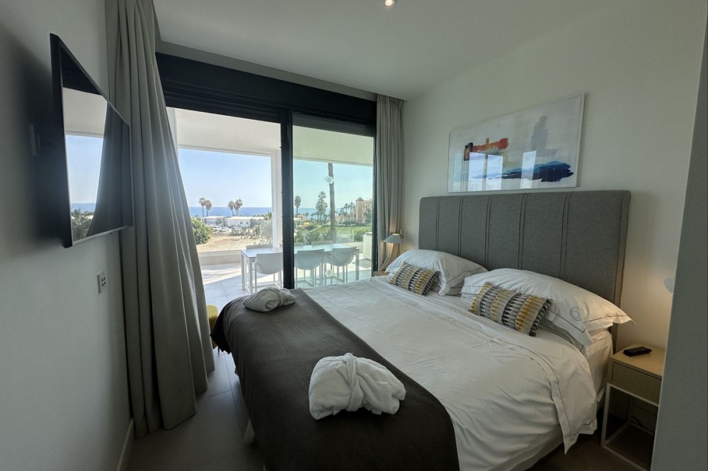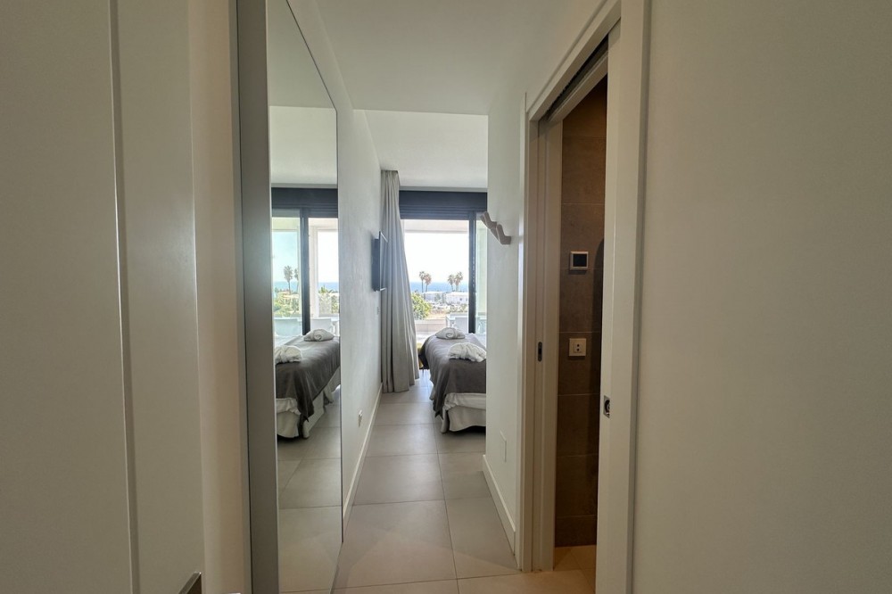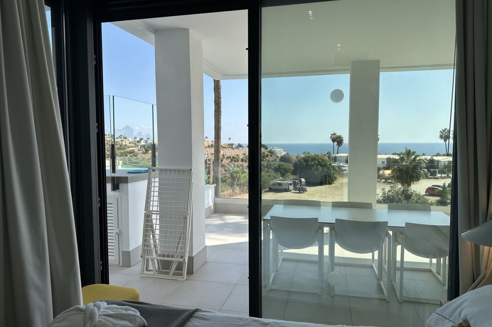- Ongelooflijk state-of-the-art appartement in Mijas Costa met faciliteiten ter plaatse en uitzicht op zee Dit appartement beschikt over twee slaapkamers en drie badkamers, een moderne open keuken, eetkamer en woonkamer. Het beschikt ook over een groot privéterras met een dompelbad en uitzicht op zee. De keuken is voorzien van alle Miele-apparatuur, airconditioning is in alle kamers geïntegreerd en de rolluiken zijn elektrisch. Het appartement wordt volledig gemeubileerd verkocht, inclusief een ondergrondse parkeerplaats en een berging. De beveiligde community beschikt over een video-entreesysteem. Er is een verwarmd zwembad voor de wintermaanden en nog een groot inloopzwembad. Er zijn ook een fitnessruimte, een Turks stoombad en een sauna. Slechts 10 minuten lopen naar het strand of 2 minuten rijden. Dit is een fantastisch vakantiehuis en een makkelijke verhuurinvestering, beheerd door een resort.