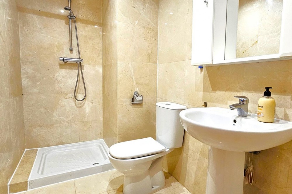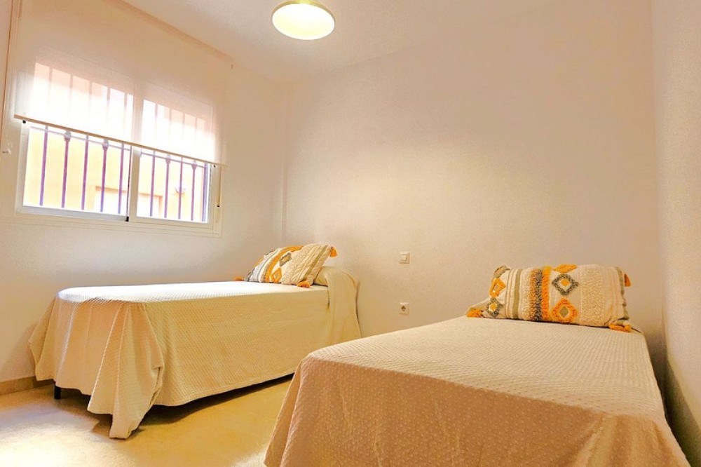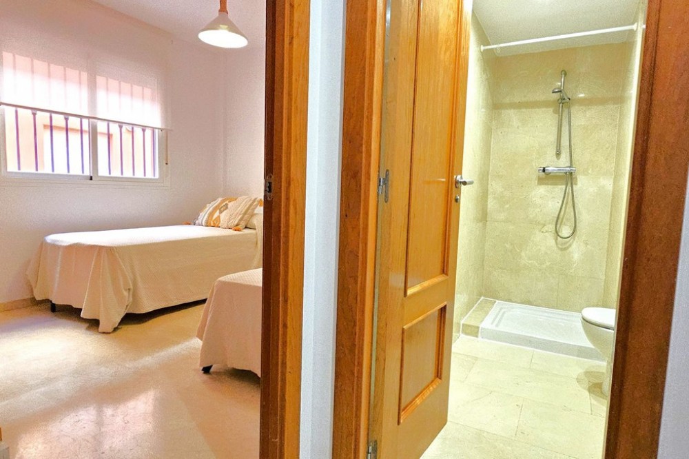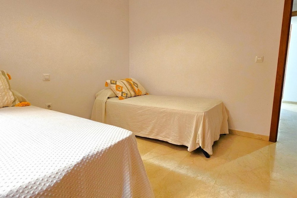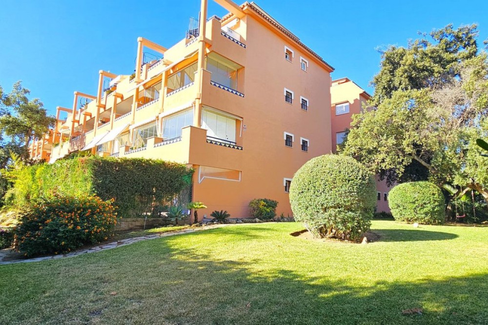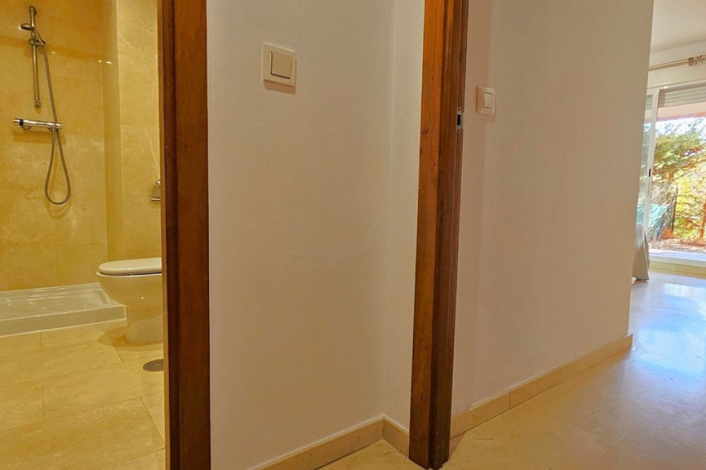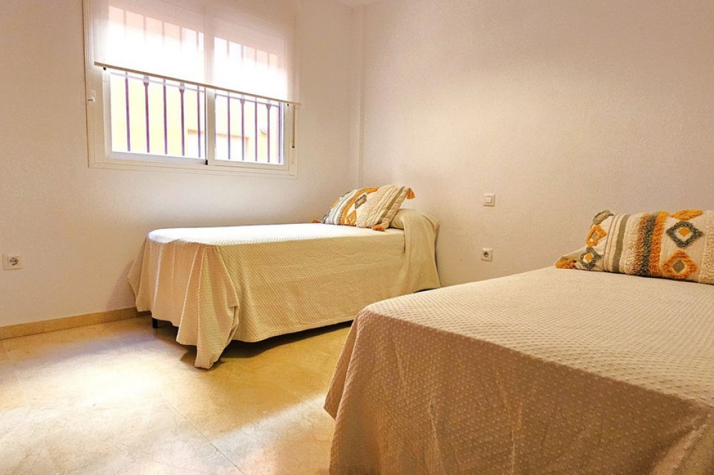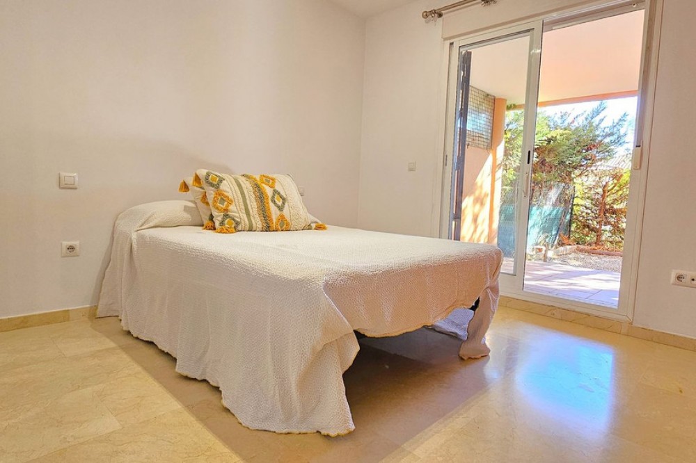 - MAGNIFICENT GROUND-FLOOR APARTMENT WITH PRIVATE GARDEN IN ELVIRIA,A SHORT DISTANCE FROM THE STUNNING COSTABELLA AND ELVIRIA BEACHES! Excellent ground-floor apartment that combines comfort, spaciousness, and a privileged location. It features a bright living-dining room with direct access to a sunny terrace and a pleasant private garden — perfect for enjoying barbecues, breakfasts, or outdoor meals, or simply relaxing in the sun and taking advantage of the Costa del Sol’s wonderful climate all year round. The property offers a spacious and bright living-dining area, a fully equipped independent kitchen (with the possibility of easily opening it to the living room by removing a partition wall), 2 bedrooms, and 2 full bathrooms, one of them en suite in the master bedroom, which also has a large window with direct access to the terrace. The gated community ensures security and privacy and features beautifully maintained communal gardens with lush vegetation, pleasant walking paths, and shaded areas — all in a peaceful environment, ideal for families or for those seeking comfort, proximity to the sea, and quality of life. Among its amenities are communal swimming pools for adults and children, two paddle courts, and several playgrounds. As for its location, it is situated in the prestigious area of Elviria, surrounded by all services: supermarkets (Mercadona and Lidl), public and private schools, nurseries, a health center, a municipal sports center with a heated pool and paddle court, a bus stop, and direct access to the motorway. In addition, it’s just a few minutes’ walk from the beach. The property includes an underground parking space and a storage room. An unbeatable opportunity as a permanent residence or as an investment, thanks to its high rental potential — both for holiday and long-term rentals.