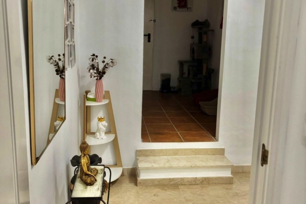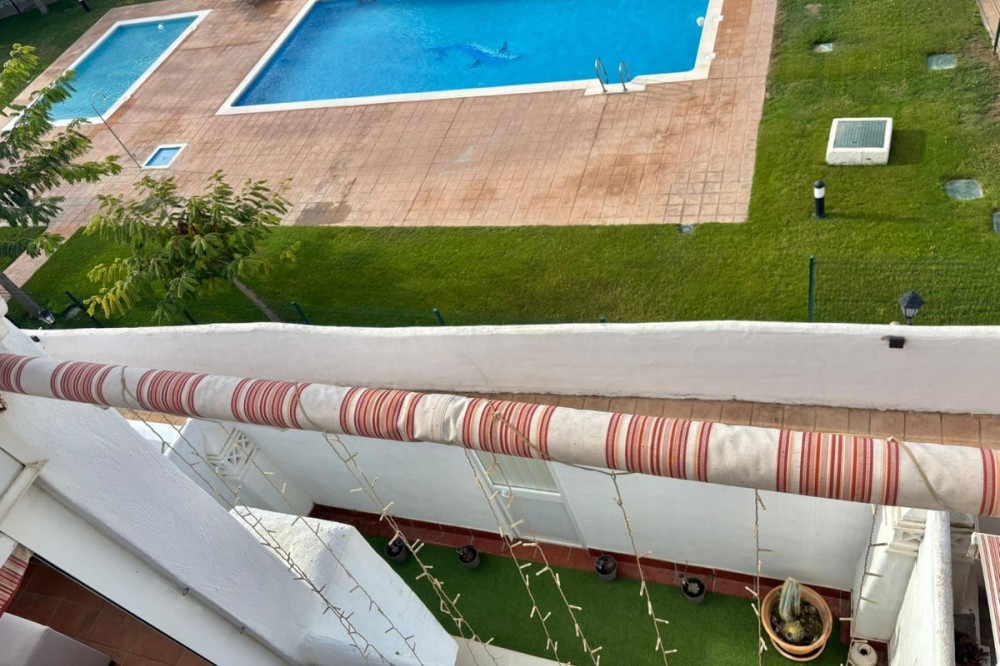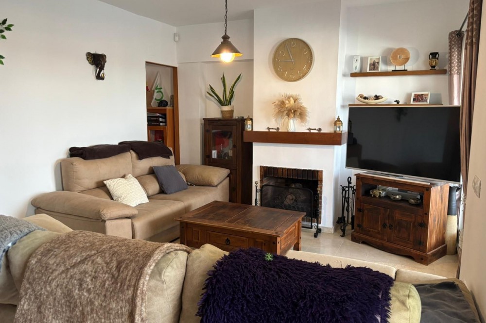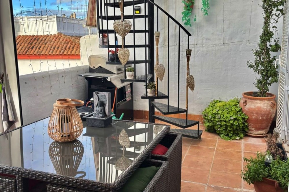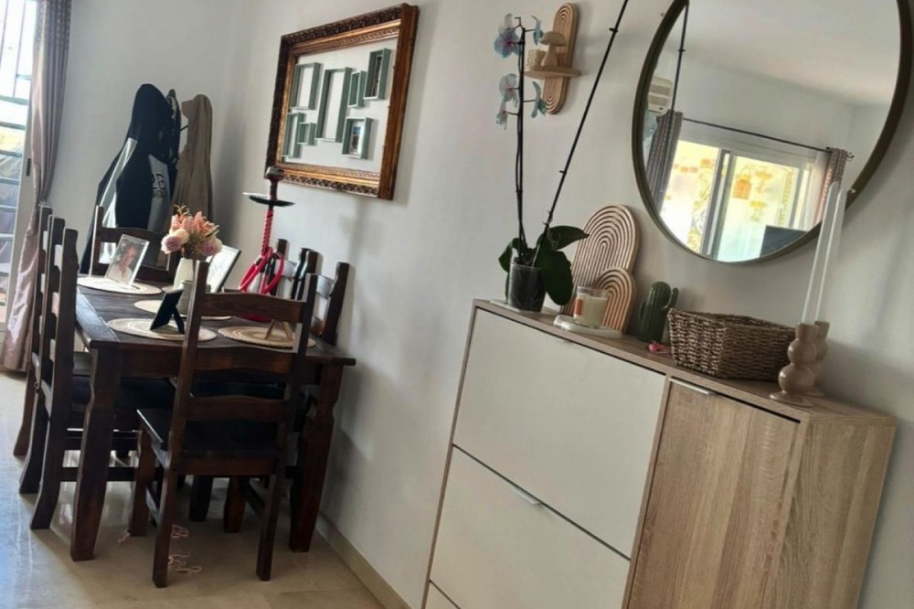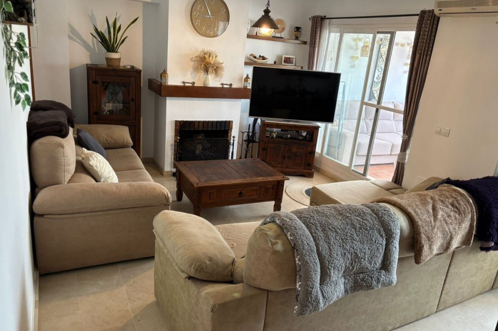 - Discover this enchanting townhouse in the idyllic village of Manilva Pueblo, a serene haven on the Costa del Sol celebrated for its traditional whitewashed Andalusian charm, breathtaking panoramic views of the Mediterranean Sea, lush vineyards, and the iconic Rock of Gibraltar in the distance. Perched on a gentle hillside just 3-5 km from unspoilt beaches like Playa de Sabinillas, this property offers an ideal blend of peaceful rural living and everyday convenience—perfect for families, couples, or retirees. A brief walk connects you to essential amenities such as supermarkets (including Mercadona), schools, welcoming cafés, pharmacies, and bakeries, simplifying daily life. With seamless access to the A-7 motorway, you're a mere 10-15 minutes from the sophisticated marina of Sotogrande, the vibrant town of Estepona, or the luxury of Marbella, all while savouring Manilva's renowned sweet Moscatel wines and over 300 days of glorious sunshine annually in this welcoming expat community. Thoughtfully arranged over three levels with flexible dual entry from the first or second floor, this 107 m² (89 m² usable) south-facing retreat is in superb second-hand condition, featuring marble flooring throughout and spectacular vistas. The first floor boasts two spacious bedrooms with fitted wardrobes, air conditioning, and en-suite bathrooms, both opening to a shared terrace that leads directly to the urbanisation's inviting swimming pools—ideal for leisurely swims. A wide hallway reveals a versatile third auxiliary room, perfect as a guest suite or home office. This level also includes a dedicated storage space connecting to a private garage with built-in storage solutions, plus an under-stairs cupboard for additional organisation. Ascend to the second floor, where an independent, fully equipped kitchen with ample storage awaits, alongside a bright living-dining room with air conditioning and a cosy fireplace, seamlessly flowing to a large terrace with awe-inspiring views—enhanced by awnings for year-round use and currently set up as a barbecue area. A spiral staircase ascends to a private rooftop solarium, offering endless potential as a chill-out zone. A guest cloakroom ensures visitors have convenience without accessing private areas. Equipped with individual heat pump heating, air conditioning throughout, and an energy certificate indicating 185.5 kWh/m² annual consumption and 33.6 kg CO₂/m² emissions, this home includes a garage and storage. Residents enjoy communal pools in a secure, well-kept environment. A video tour is available upon request—this distinctive property is ready to embrace your lifestyle; contact us today to explore.