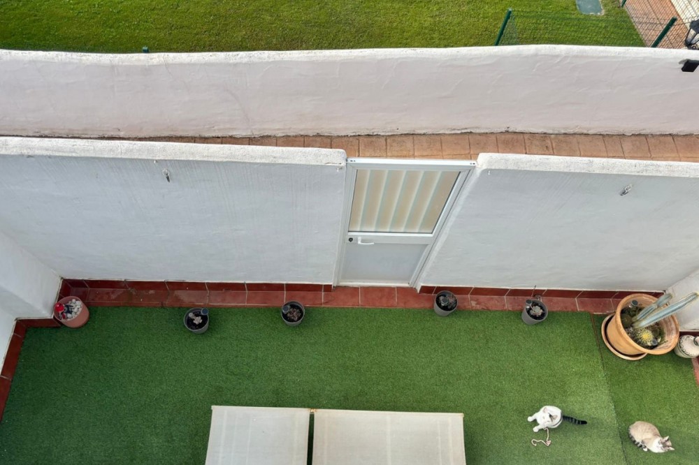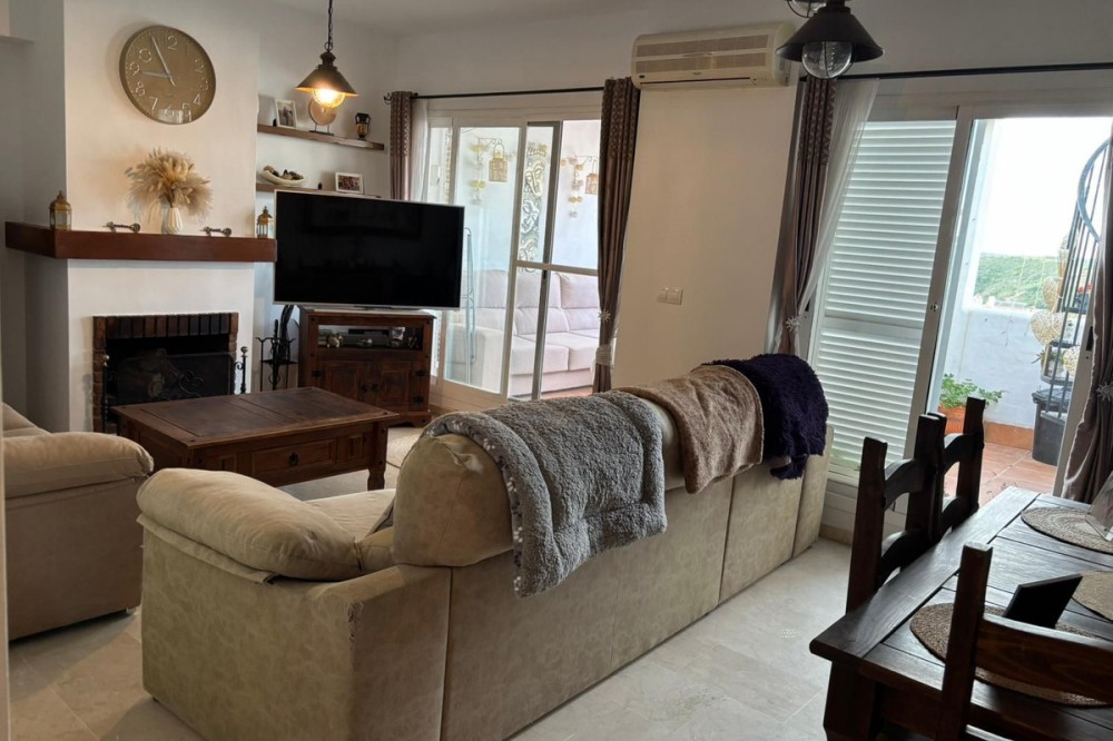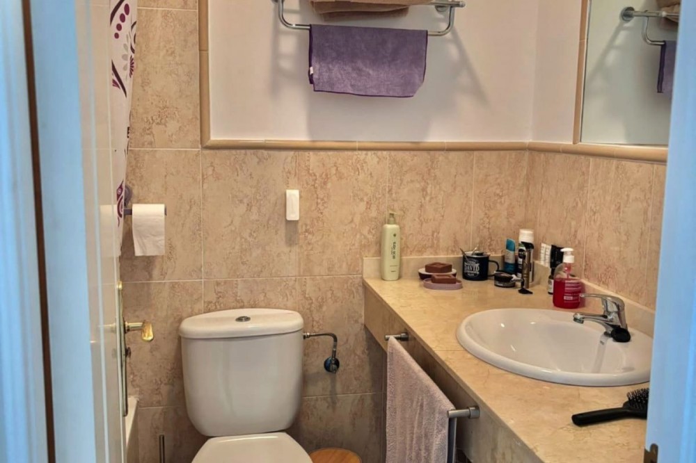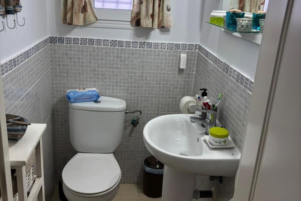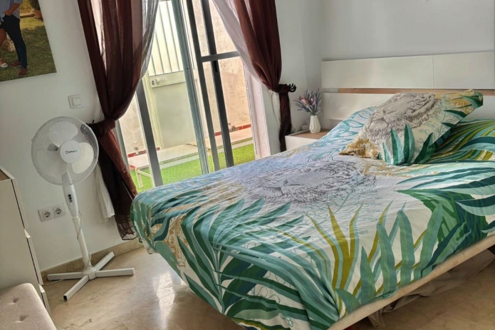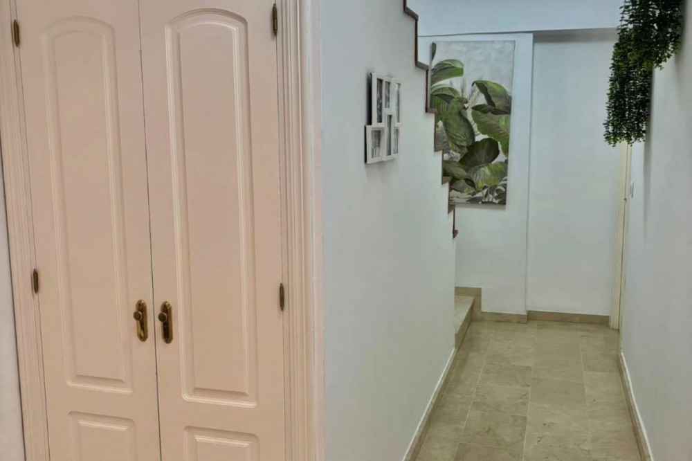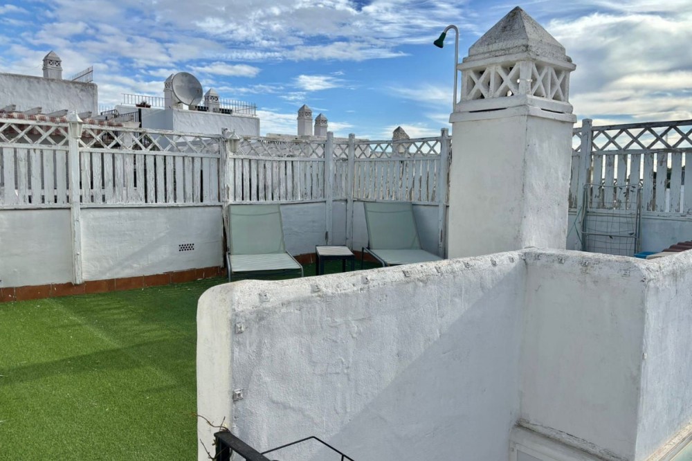 - Discover this enchanting townhouse in the idyllic village of Manilva Pueblo, a serene haven on the Costa del Sol celebrated for its traditional whitewashed Andalusian charm, breathtaking panoramic views of the Mediterranean Sea, lush vineyards, and the iconic Rock of Gibraltar in the distance. Perched on a gentle hillside just 3-5 km from unspoilt beaches like Playa de Sabinillas, this property offers an ideal blend of peaceful rural living and everyday convenience—perfect for families, couples, or retirees. A brief walk connects you to essential amenities such as supermarkets (including Mercadona), schools, welcoming cafés, pharmacies, and bakeries, simplifying daily life. With seamless access to the A-7 motorway, you're a mere 10-15 minutes from the sophisticated marina of Sotogrande, the vibrant town of Estepona, or the luxury of Marbella, all while savouring Manilva's renowned sweet Moscatel wines and over 300 days of glorious sunshine annually in this welcoming expat community. Thoughtfully arranged over three levels with flexible dual entry from the first or second floor, this 107 m² (89 m² usable) south-facing retreat is in superb second-hand condition, featuring marble flooring throughout and spectacular vistas. The first floor boasts two spacious bedrooms with fitted wardrobes, air conditioning, and en-suite bathrooms, both opening to a shared terrace that leads directly to the urbanisation's inviting swimming pools—ideal for leisurely swims. A wide hallway reveals a versatile third auxiliary room, perfect as a guest suite or home office. This level also includes a dedicated storage space connecting to a private garage with built-in storage solutions, plus an under-stairs cupboard for additional organisation. Ascend to the second floor, where an independent, fully equipped kitchen with ample storage awaits, alongside a bright living-dining room with air conditioning and a cosy fireplace, seamlessly flowing to a large terrace with awe-inspiring views—enhanced by awnings for year-round use and currently set up as a barbecue area. A spiral staircase ascends to a private rooftop solarium, offering endless potential as a chill-out zone. A guest cloakroom ensures visitors have convenience without accessing private areas. Equipped with individual heat pump heating, air conditioning throughout, and an energy certificate indicating 185.5 kWh/m² annual consumption and 33.6 kg CO₂/m² emissions, this home includes a garage and storage. Residents enjoy communal pools in a secure, well-kept environment. A video tour is available upon request—this distinctive property is ready to embrace your lifestyle; contact us today to explore.