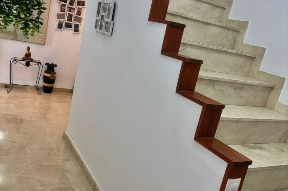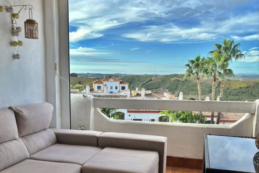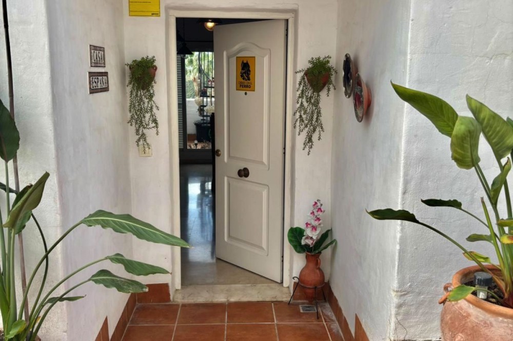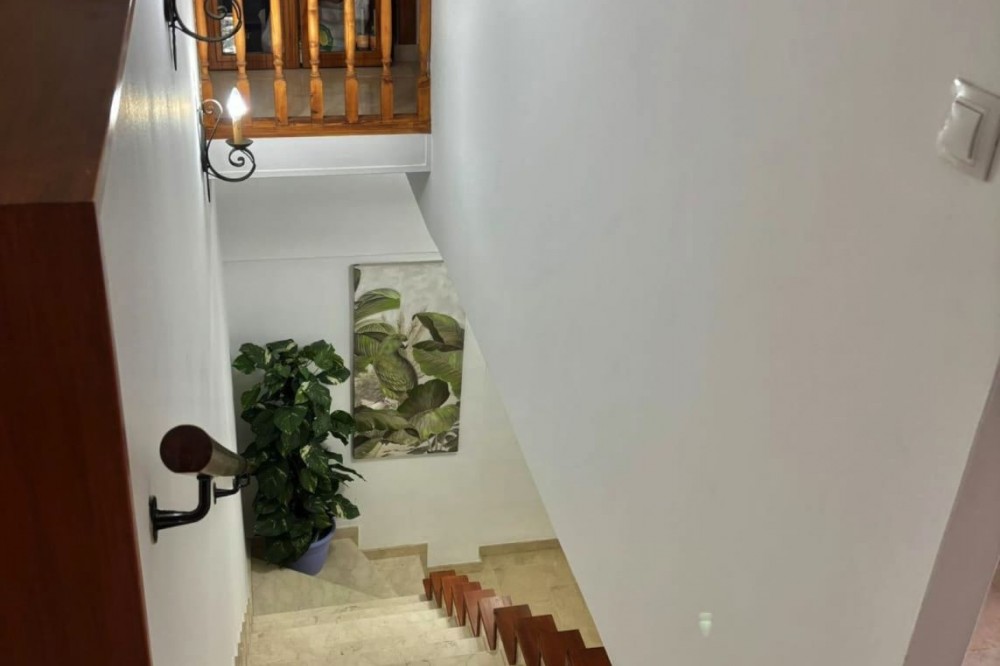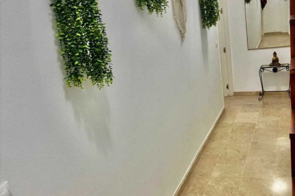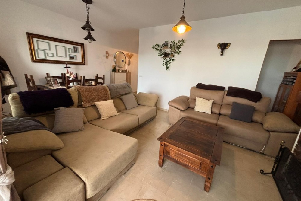 - Discover this enchanting townhouse in the idyllic village of Manilva Pueblo, a serene haven on the Costa del Sol celebrated for its traditional whitewashed Andalusian charm, breathtaking panoramic views of the Mediterranean Sea, lush vineyards, and the iconic Rock of Gibraltar in the distance. Perched on a gentle hillside just 3-5 km from unspoilt beaches like Playa de Sabinillas, this property offers an ideal blend of peaceful rural living and everyday convenience—perfect for families, couples, or retirees. A brief walk connects you to essential amenities such as supermarkets (including Mercadona), schools, welcoming cafés, pharmacies, and bakeries, simplifying daily life. With seamless access to the A-7 motorway, you're a mere 10-15 minutes from the sophisticated marina of Sotogrande, the vibrant town of Estepona, or the luxury of Marbella, all while savouring Manilva's renowned sweet Moscatel wines and over 300 days of glorious sunshine annually in this welcoming expat community. Thoughtfully arranged over three levels with flexible dual entry from the first or second floor, this 107 m² (89 m² usable) south-facing retreat is in superb second-hand condition, featuring marble flooring throughout and spectacular vistas. The first floor boasts two spacious bedrooms with fitted wardrobes, air conditioning, and en-suite bathrooms, both opening to a shared terrace that leads directly to the urbanisation's inviting swimming pools—ideal for leisurely swims. A wide hallway reveals a versatile third auxiliary room, perfect as a guest suite or home office. This level also includes a dedicated storage space connecting to a private garage with built-in storage solutions, plus an under-stairs cupboard for additional organisation. Ascend to the second floor, where an independent, fully equipped kitchen with ample storage awaits, alongside a bright living-dining room with air conditioning and a cosy fireplace, seamlessly flowing to a large terrace with awe-inspiring views—enhanced by awnings for year-round use and currently set up as a barbecue area. A spiral staircase ascends to a private rooftop solarium, offering endless potential as a chill-out zone. A guest cloakroom ensures visitors have convenience without accessing private areas. Equipped with individual heat pump heating, air conditioning throughout, and an energy certificate indicating 185.5 kWh/m² annual consumption and 33.6 kg CO₂/m² emissions, this home includes a garage and storage. Residents enjoy communal pools in a secure, well-kept environment. A video tour is available upon request—this distinctive property is ready to embrace your lifestyle; contact us today to explore.