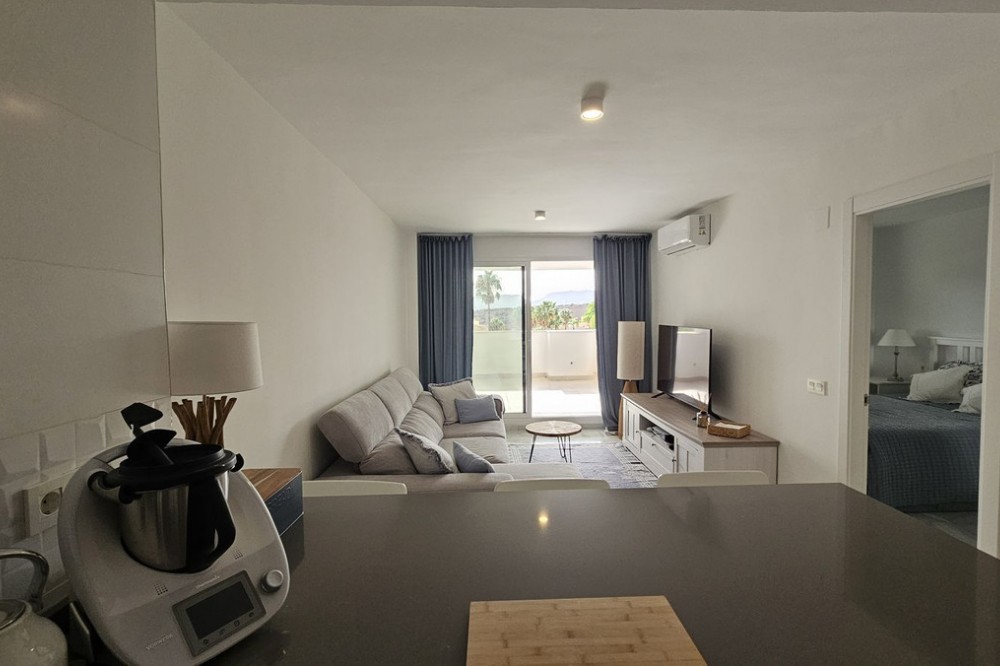 - Modern 2-Bed Apartment in Doña Julia Golf Resort, Casares Costa – Beautiful Sea and mountain Views Description Modern 2-Bed Apartment in Doña Julia Golf Resort, Casares Costa – Beautiful Sea and mountains Views A bright and modern first-floor apartment located in the peaceful Doña Julia Golf Resort, Casares Costa. The property offers a functional layout with an open-plan living area, a fully equipped kitchen, two bedrooms, and two bathrooms. It is tastefully furnished in a contemporary style and features a large sunny terrace with beautiful panoramic views of the sea and surrounding greenery and mountains. Conveniently located just a few minutes from the beach, the Doña Julia Golf Club, restaurants, and local shops. Ideal for comfortable year-round living, holidays, or rental investment. Private parking included. Only a short drive to Estepona and the Marina of La Duquesa.