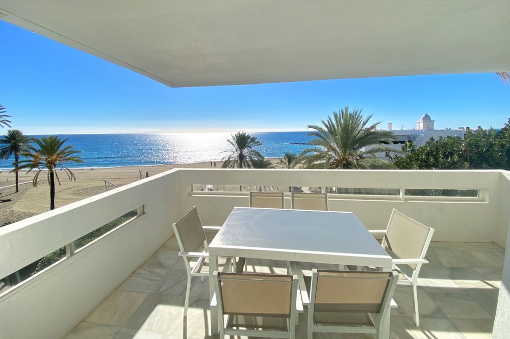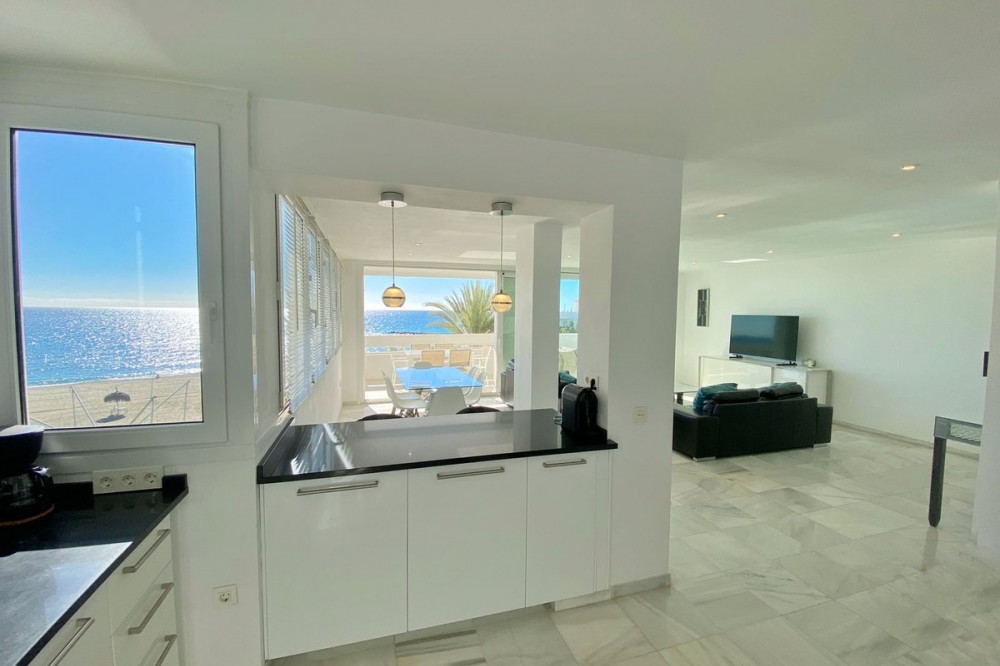 - EXCLUSIEVE AANBIEDING Ontdek dit prachtige appartement aan het strand, waar de zeebries en het uitzicht op de oceaan deel uitmaken van uw dagelijks leven. Gelegen aan de boulevard, tegenover het populaire strand La Venus en de jachthaven, biedt het een bevoorrechte locatie in het hart van Marbella. Op slechts een steenworp afstand van het charmante historische centrum en het populaire Plaza de Los Naranjos, is dit appartement de perfecte plek om te genieten van het mediterrane leven. Oorspronkelijk waren het twee aparte appartementen, maar na een complete renovatie zijn ze samengevoegd tot ruime en comfortabele woonruimtes. Met drie grote tweepersoonsslaapkamers en twee complete badkamers, plus een gastentoilet, is er voldoende ruimte voor het hele gezin. De hoofdslaapkamer heeft een eigen badkamer. De ruime woon-eetkamer met direct uitzicht op zee, samen met een prachtige open keuken voorzien van een kookeiland, vormt het hart van het huis: de perfecte plek om onvergetelijke momenten te delen en te beleven in het comfort van uw eigen huis aan zee. Het fantastische terras biedt een prachtig uitzicht over de boulevard en het strand, de ideale plek om van de zon te genieten. Daarnaast beschikt de woning over een kleine, praktische binnenruimte voor de was en extra opbergruimte. Doordat de kamer op het zuiden is gericht en de hele dag zonlicht ontvangt, is het er ongelooflijk licht. Het is in perfecte staat. Het gebouw beschikt over een conciërgeservice, wat het verblijf nog comfortabeler maakt. Het is ook een uitstekend pand voor wie het wil verhuren als vakantiewoning. Dit appartement is een unieke kans. En het wordt exclusief te koop aangeboden door dit makelaarskantoor. Neem gerust contact met ons op als u vragen heeft of een bezichtiging wilt plannen.