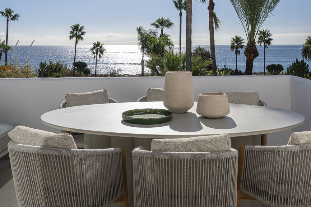 - Perfectly positioned along Estepona’s New Golden Mile, this exclusive beachfront community offers a serene atmosphere surrounded by lush gardens and sparkling pools. With its blend of Andalusian elegance and modern comfort, Costalita provides direct beach access, easy reach to top golf courses and restaurants, and the relaxed sophistication that defines life on the Costa del Sol. A brand new 2-bedroom apartment just steps from the golden sands of the Mediterranean, set within a secure, landscaped resort-style complex. The bright, open-plan living and dining area flows seamlessly onto a generous south-west facing terrace with spectacular sea views, while a cozy fireplace adds warmth and charm. The modern kitchen, equipped with high-quality German appliances and a Thermomix, combines style and functionality. Both bedrooms are spacious and elegantly finished, with contemporary bathrooms featuring premium fixtures. A separate laundry area and thoughtful design details make this a comfortable, sophisticated coastal home filled with natural light and warm tones.