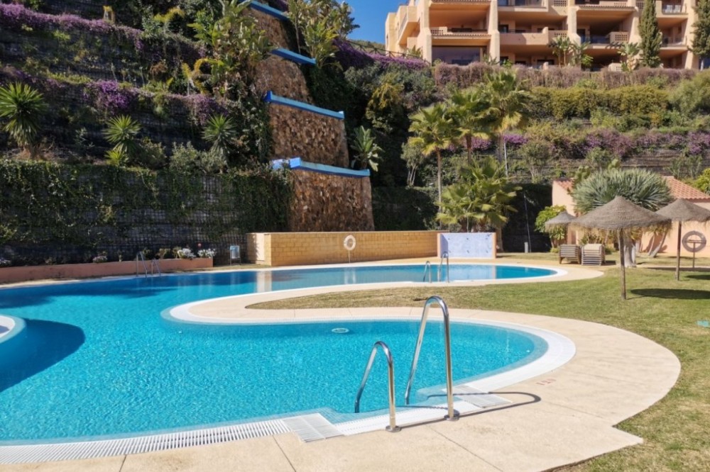 - Stylish 2-bedroom, 2-bathroom apartment in the sought-after Calanova Sea Golf complex in La Cala de Mijas. It features a bright living room with access to a 22 m² terrace, fully equipped kitchen, modern furniture, underground parking Near golf, Calanova Golf, Mijas Costa, Malaga province 2 bedrooms, 2 bathrooms, pool (communal), garden (communal), garage (private) Discover this exclusive apartment for sale, located in the prestigious Calanova Sea Golf residential complex in La Cala de Mijas. Set on the front line of the golf course, this property stands out for its breath-taking panoramic views of the Mediterranean Sea, where, on clear days, you can even see Africa and Gibraltar. A natural, peaceful, and secure setting, perfect for enjoying life on the Costa del Sol. Key Features 2 bedrooms – the master with a walk-in wardrobe and the second with a fitted wardrobe. 2 full bathrooms, including one en suite. Independent kitchen fully equipped with brand-new appliances. Bright and spacious living-dining room with direct access to the terrace. 22 m² terrace with stunning sea and golf views. Modern furniture included in the price. Underground parking space and storage room included. Five communal swimming pools plus a children’s pool. Beautifully maintained landscaped gardens. Property Highlights The apartment has been recently updated with modern furniture and high-quality appliances, making it move-in ready. The marble floors and bathrooms add a touch of elegance, while the partially open kitchen offers functionality without losing visual connection to the living room and terrace. From every corner of the main living area, you can enjoy spectacular year-round views. Location Calanova Sea Golf is perfectly located, just 10 minutes’ drive from La Cala de Mijas, Riviera, and Calahonda, only 20 minutes from Marbella, and 35 minutes from Málaga International Airport, ensuring excellent connectivity. Ideal for… This property is perfect as a permanent residence, holiday home, or investment. Its prime location, spectacular views, and excellent facilities make it highly appealing for both short-term holiday rentals and long-term stays.