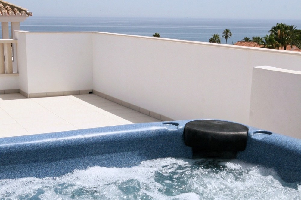 - This super modern house has what everyone wants - a detached house with private pool and sea views within an easy walk of La Cala de Mijas and the beach. The original house has had a second floor added, and the current layout makes this effectively two houses in one. On the ground floor is a one level 3 bedroom, 2 bathroom house with fully fitted kitchen and living dining room, while outside is off street parking for 2 cars, a very large private terraced area and private pool. Via separate independent access on the first floor is a one bedroom bathroom open plan villa with large south facing terrace with sea views. From this terrace one can also access the private roof terrace with jacuzzi and fabulous views. A really high quality reformed house, with a show house feel from top to bottom...