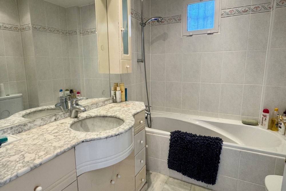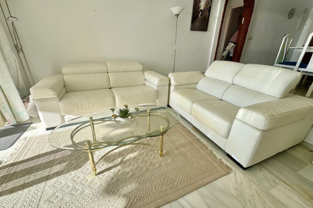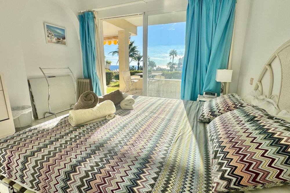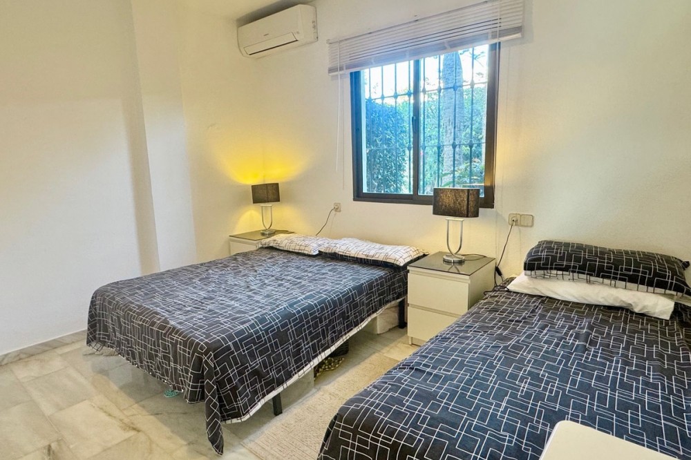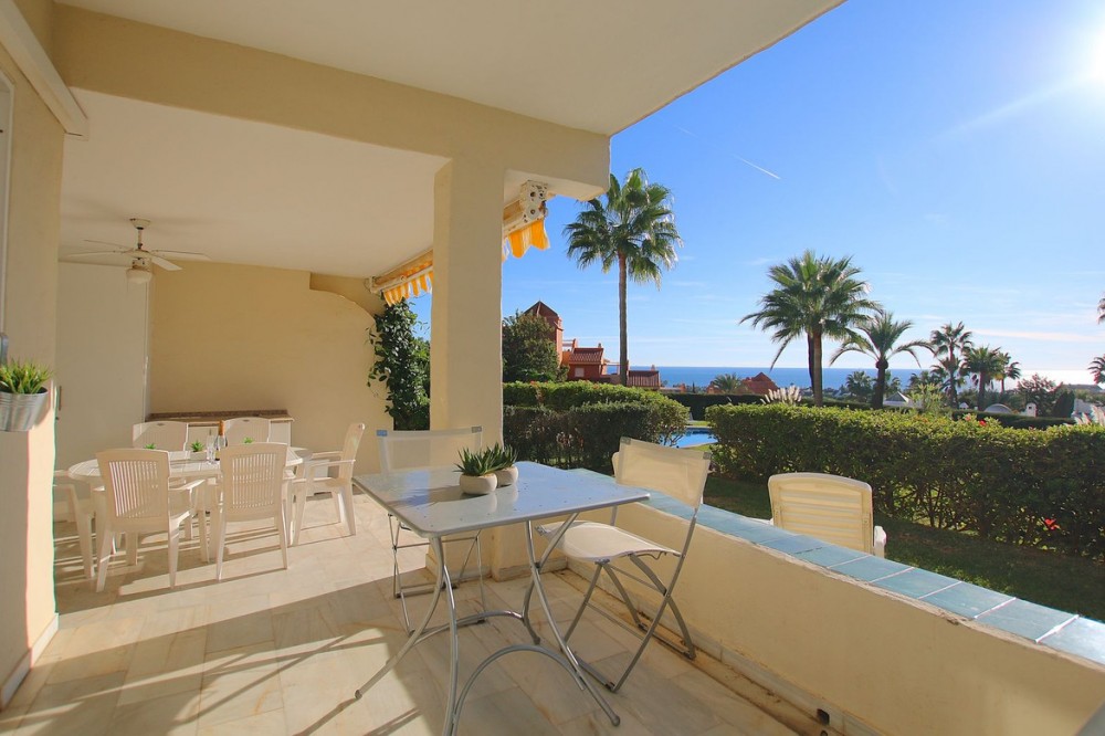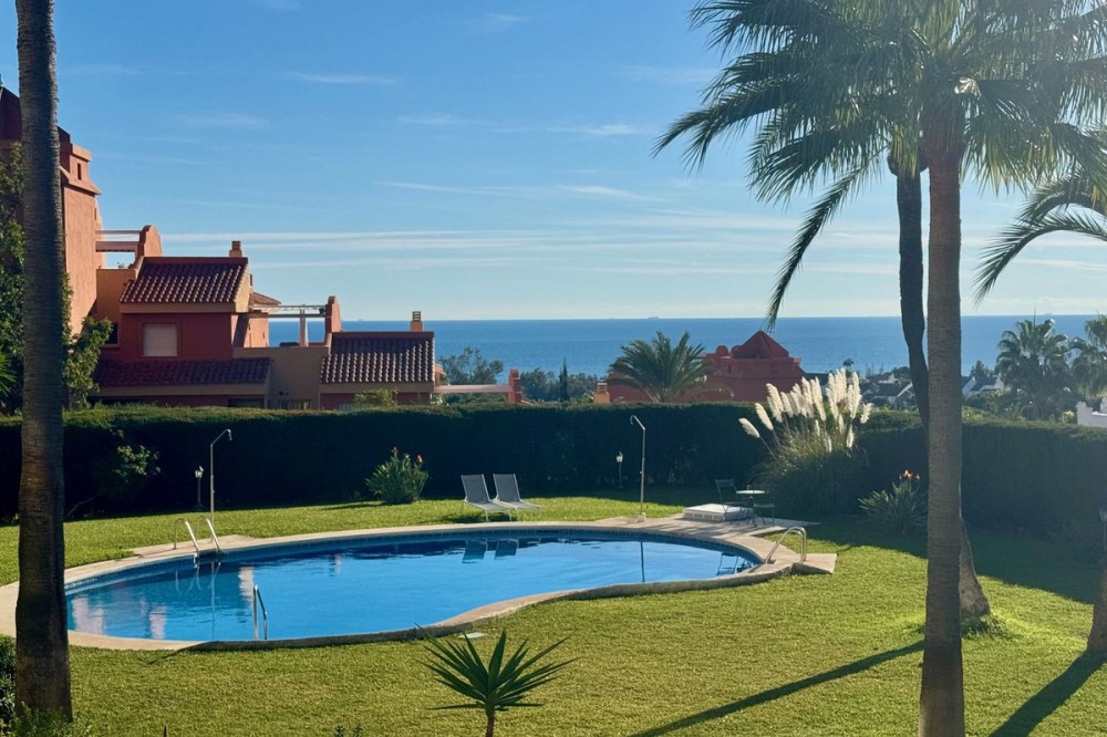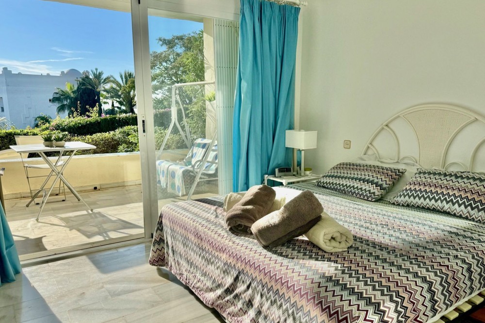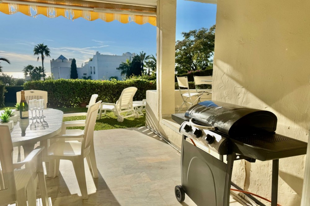 • A fantastic opportunity to own a ground-floor corner apartment in the highly desirable Reserva de Marbella (Las Chapas). Situated within an exclusive gated community of just 18 residences, the complex boasts beautifully landscaped gardens and a large communal pool. The location is ideal—just a short walk to local amenities and a pleasant 25-minute stroll to the picturesque Marbesa beach and the protected Artola dunes. This bright and airy corner apartment offers excellent potential for modernisation and enjoys impressive sea views. A spacious terrace, accessible from both the living room and main bedroom, flows directly into a private garden area, creating a tranquil and secluded outdoor space. Inside, the property features two generous bedrooms and two bathrooms. It comes fully furnished and includes full air conditioning for year-round comfort. A private parking space located just outside the community adds to the convenience.