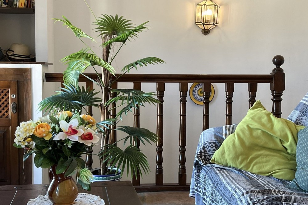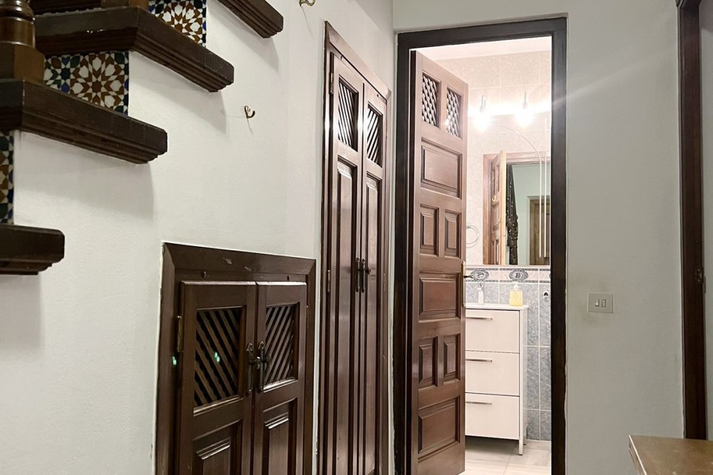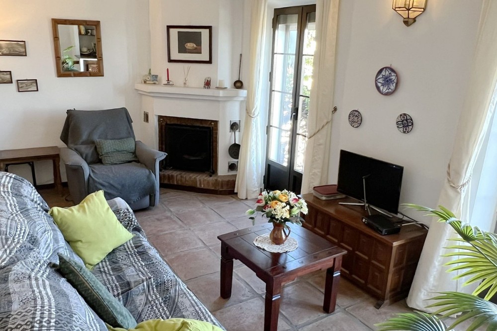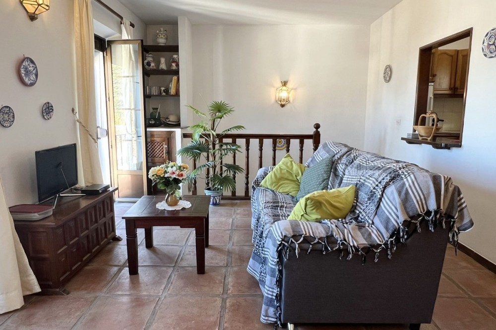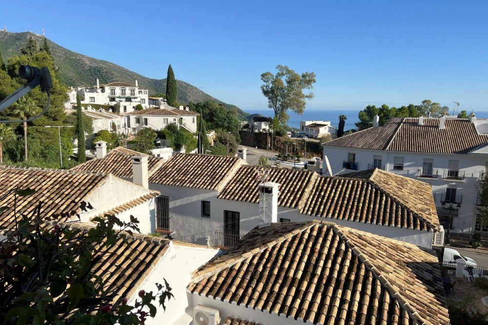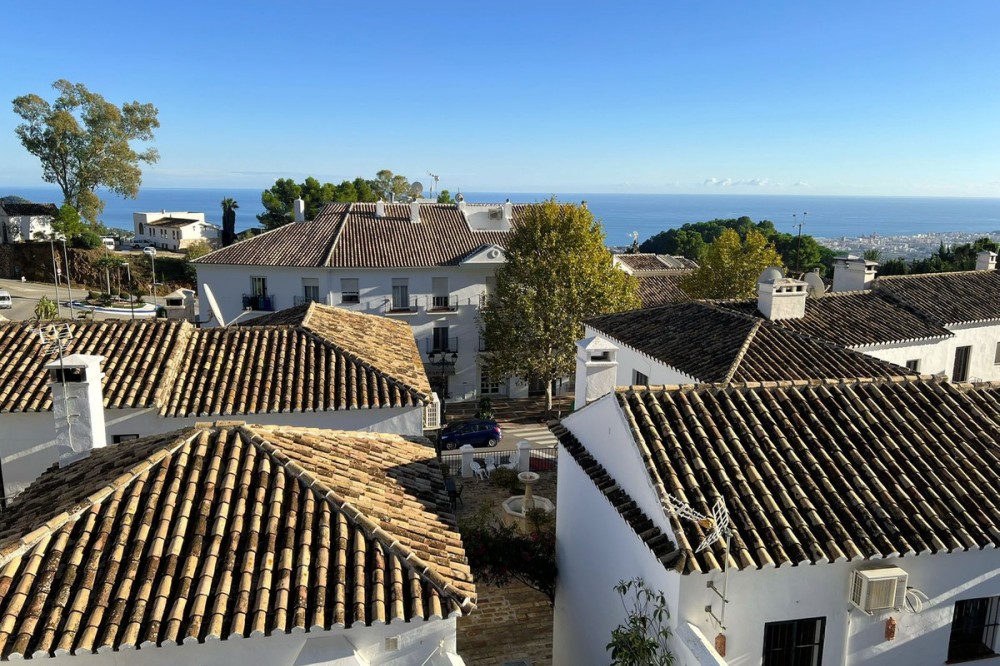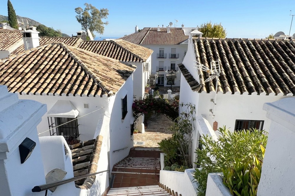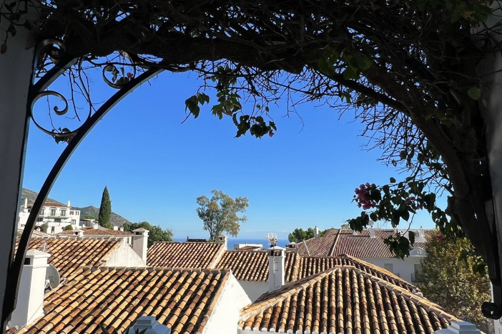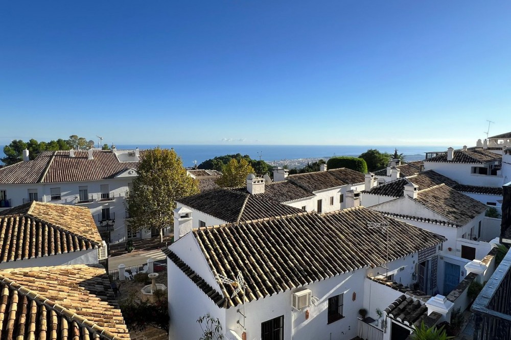 - SUNNY CHARMING TOWNHOUSE situated on the edge of Mijas village enjoying MAGNIFICENT SEA & MOUNTAIN VIEWS! Very popular community with large swimming pool and sunny terraces. This semi-detached property boasts many traditional Andalusian features such as terracotta floors, beautiful interior wooden carpentry, wrought-iron balconies and grills, hand-painted tiles, etc. The lounge-dining room has a fireplacetwo & two juliette balconies, roller blinds. Fitted kitchen with an open hatch to lounge. Small private patio with lovely bougainvillea, a BBQ area and storage cupboard. LOWER FLOOR: Master bedroom & guest bedroom both have fitted wardrobes. Shower room w/washing machine. Linen cupboard in hall. Storage area. Great rental potential. Ideal holiday home or for permanent living. Walking distance to all amenities the town can offer... Comm: 92 €/month IBI: 325 €/yr