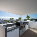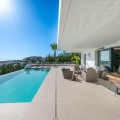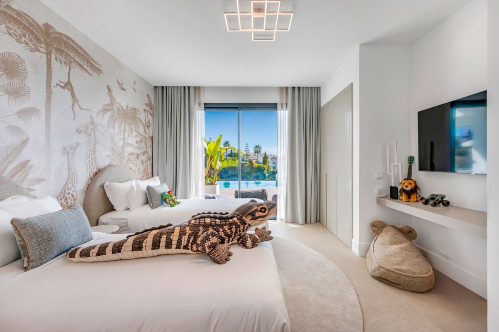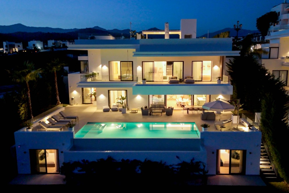 - Perfectly set within the exclusive La Resina Golf community, this is a modern four-level residence crafted by renowned architect Francisco Martínez Galván. With 674 m² of refined living and 249 m² of terraces, it delivers bold design, effortless luxury, and a seamless indoor-outdoor lifestyle. Arrival A private driveway leads to the top-floor entrance, where sweeping views of the Mediterranean and La Resina Golf Course immediately set the tone. Clean architectural lines, abundant natural light, and striking geometry create a stunning first impression. Main Living The heart of the home is an open-plan living and dining area anchored by a sculptural natural-stone kitchen island, supported by a discreet secondary kitchen. Floor-to-ceiling windows slide open to the infinity saltwater pool and lush tropical gardens, forming a private oasis for relaxation and entertaining. Two guest suites, integrated sound, and smart-home readiness complete this level. Upper Level The entire floor is designed for pure privacy. The master suite features a generous terrace with breathtaking sea views, a custom walk-in wardrobe, and a marble bathroom with a freestanding tub. A second en-suite bedroom and a flexible office/TV room enhance the space. Lower Level A luxury wellness and entertainment hub: cinema room, glass-fronted wine cellar, full gym, sauna, steam room, and cold plunge. A games room with designer bar, a cozy second living area, and two garden-level en-suite bedrooms create the perfect retreat. Additional features include a panic room, storage, machine room, and full underfloor heating. Lifestyle & Location La Resina Golf offers privacy, security, and contemporary architectural harmony. Nearby are the International American College, Bossa Café’s padel courts, everyday amenities, and Estepona’s beaches and marina—just minutes away. Malaga Airport is a smooth 45-minute drive. Solarium With full 360 degree views, you feel on top of the world. With stunning views to Gibraltar and the Atlas Mountains in North Africa! Full kitchen including built in top of the range BBQ, fridge, ice machine etc State of the art Jacuzzi to enjoy a sundowner. Villa One is a statement of modern coastal living—where architecture, comfort, and lifestyle meet in perfect balance.