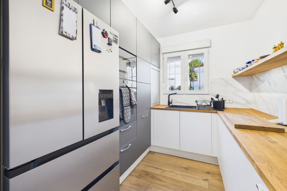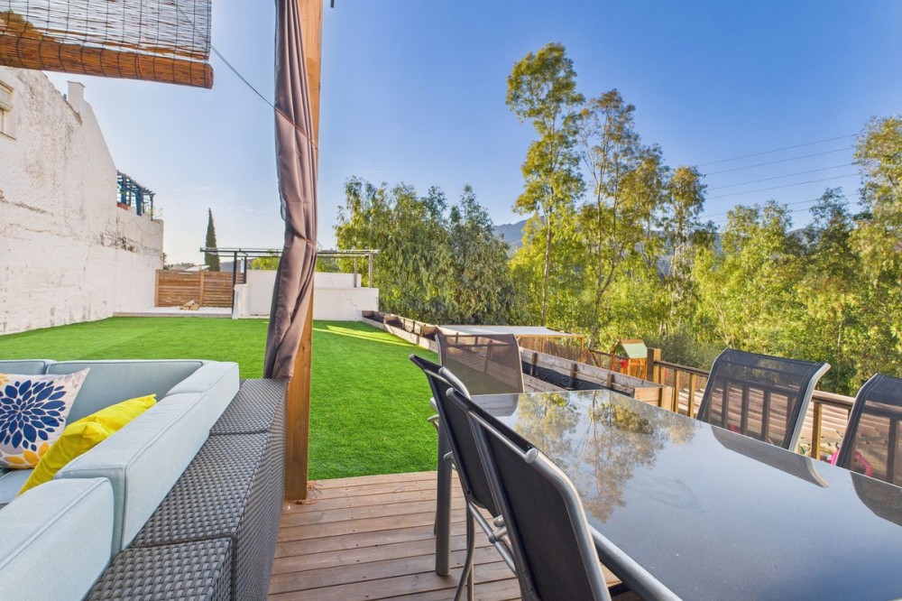 • Detached 3-Bedroom Villa in Puerto Romano, Estepona Located in the peaceful countryside setting of Puerto Romano, just 5 minutes by car from Estepona town centre, this charming detached 3-bedroom, 2-bathroom villa offers an excellent blend of privacy, outdoor space, and convenience. Distributed across three levels, the property forms part of a gated macro-community with a relaxed rural atmosphere while still enjoying easy access to beaches, shops, and all essential amenities. This older-build villa has undergone multiple renovations, including a complete electrical rewire, new plumbing, and various interior upgrades, making it a true turnkey property. The kitchen has been finished with solid oak worktops, including a stylish bar, adding warmth and character to the home. Air conditioning provides year-round comfort. The villa enjoys a west-facing orientation, offering beautiful mountain and garden views and wonderful afternoon sun. One of its standout features is the extensive outdoor space: a large private garden, social areas, fire pit, and plenty of room to create additional relaxation or entertainment zones. The community offers a shared swimming pool, well-maintained communal gardens, and the ease of minimal-maintenance outdoor areas. Parking is available on the street. With its generous outdoor spaces, countryside tranquillity, thoughtful upgrades, and proximity to Estepona, this home is ideal as a permanent residence or holiday getaway. Keys are in the office for easy viewings.