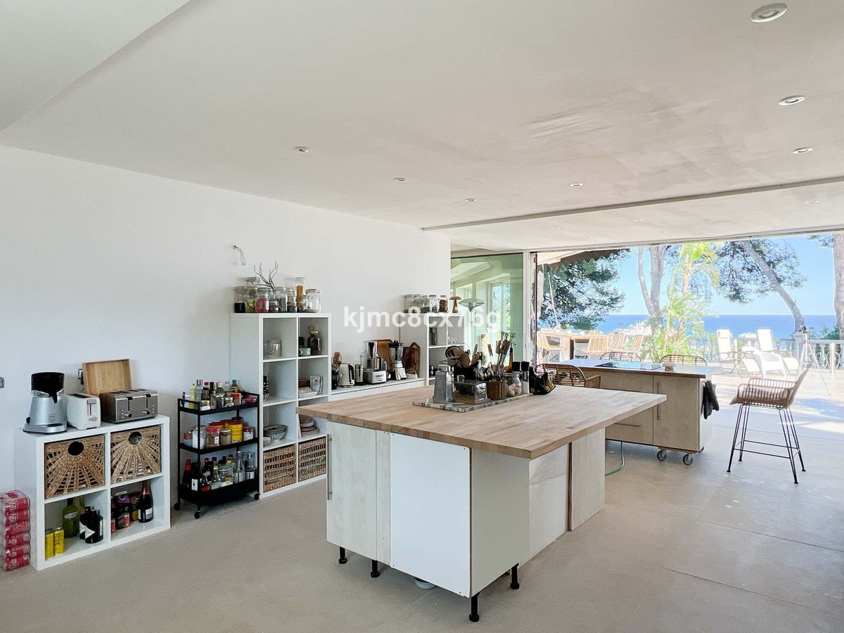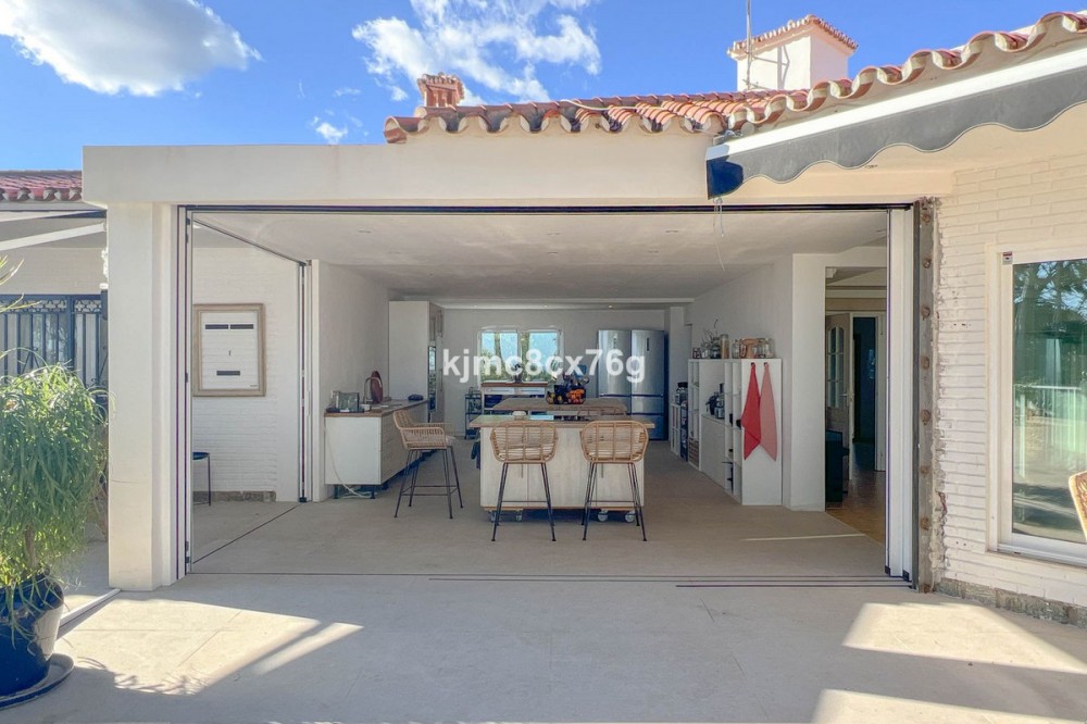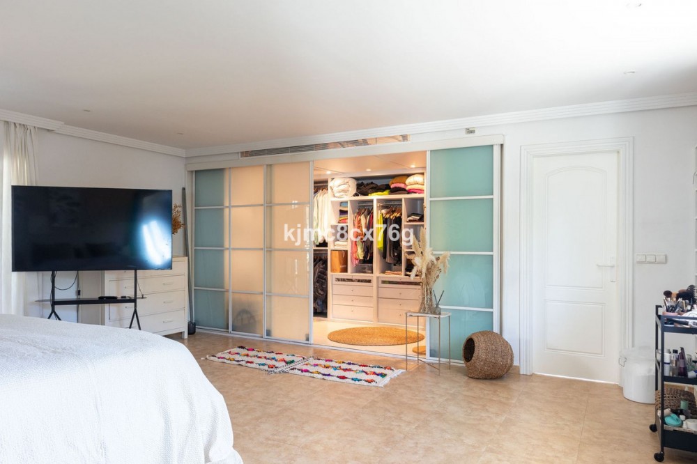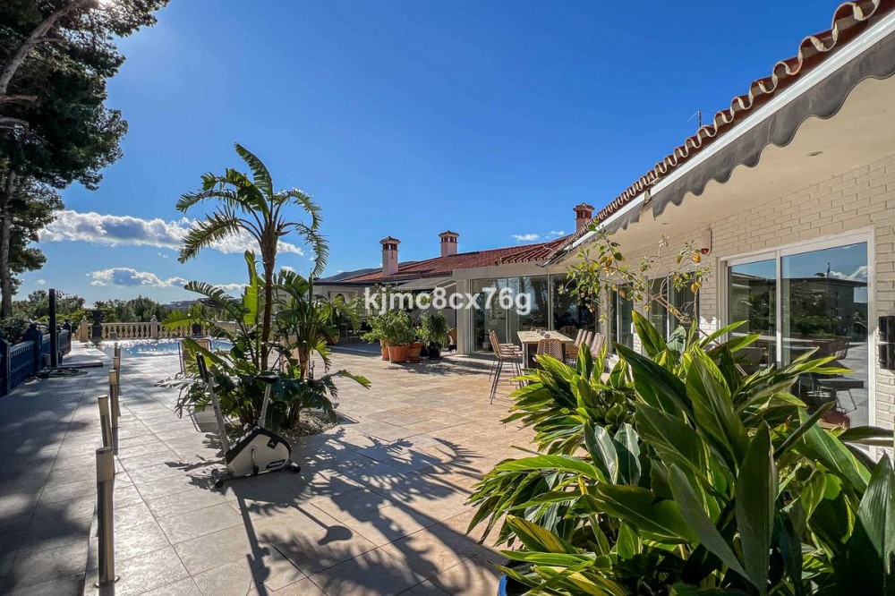 - FOR SALE – EXCLUSIVE VILLA WITH PANORAMIC SEA VIEWS AND TOTAL PRIVACY IN THE HEART OF THE COSTA DEL SOL This elegant villa is located in the elevated residential area of El Pinar, Torremolinos. It offers a rare combination of privacy, space, comfort, and stunning open views of the Mediterranean. The home is part of a quiet and secure community, surrounded by greenery, yet close to all services. The views from every corner of the house are unobstructed, stretching over the coastline and out to sea. The Mediterranean-style architecture has been fully renovated to merge indoor and outdoor spaces, allowing natural light and the landscape to become part of everyday life. On the ground floor, there is a fully independent guest apartment with two bedrooms, a bathroom with walk-in shower, a fully equipped kitchen, and a comfortable living-dining room with fireplace. Large windows open directly onto the garden, enhancing natural light and openness. The main residence welcomes you with a spacious entrance hall leading into a bright, expansive living room with high ceilings, a central fireplace, and panoramic windows. The master bedroom features a walk-in closet and en-suite bathroom with both a jacuzzi and a walk-in shower. There is also a guest toilet on this level. The kitchen is fully equipped and features a central island, opening onto a large terrace through sliding doors. This outdoor space connects seamlessly with the pool, covered porch, and a glazed chill-out area with an outdoor kitchen and barbecue, ideal for use year-round. The opposite wing of the ground floor includes four additional bedrooms with built-in wardrobes, three bathrooms with showers, a laundry room, and a large storage room connected directly to the two-car garage. The villa sits on a plot of nearly 2000 square metres with mature gardens and space for a vegetable garden, sports area or simply relaxing outdoors in complete privacy. Additional features include marble floors throughout the house, ceramic outdoor tiling, sliding PVC windows, several fireplaces, hot and cold air conditioning in all rooms, solar panels, ADSL and wifi, jacuzzi, outdoor kitchen, enclosed garage, and private garden. A home with personality, elegance and unbeatable views in one of the most desirable areas of the Costa del Sol.