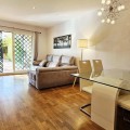 - This beautiful two-bedroom ground-floor apartment boasts a spacious outdoor area. It features a large covered terrace and a spacious private garden with a barbecue, pergola, and direct access to the swimming pool, paddle tennis court, and children's playground. The porch has a pergola, perfect for relaxing or gathering outdoors. The entire garden is paved and covered with high-quality artificial turf, making maintenance easy and ensuring it looks its best year-round. A barbecue area has also been created, equipped with custom-made furniture, a sink, water and electricity connections, and a second pergola that provides shade and comfort, creating an ideal space for meals and outdoor gatherings. Thanks to these improvements, the garden is a practical, comfortable, and modern space, perfect for enjoying time with friends and family. The apartment is located in the prestigious Selwo area, on Estepona's New Golden Mile, near Resina Golf, the new Padel Club, and the American School. Its south-facing orientation guarantees natural light throughout the day. This apartment features two bathrooms, one of which is en-suite with a dressing room and direct access to the terrace and garden; an extended kitchen with a laundry area and access to another terrace; and a bright living-dining room with access to the outdoor areas. It includes hot/cold air conditioning throughout, an underground parking space with direct elevator access to the apartment door, and additional outdoor parking for guests. The community, comprised of only 32 apartments, offers a large swimming pool, a children's playground, and a paddle tennis court. Its excellent location, less than 10 minutes from San Pedro Alcántara and Estepona, and very close to Marbella and Puerto Banús, makes this property a unique opportunity. Thanks to its wonderful outdoor spaces and the area's pleasant climate, it feels like home. A viewing is highly recommended.