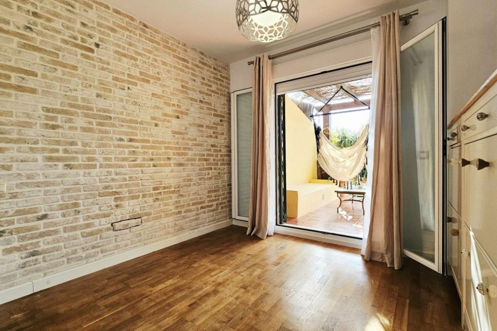 - This beautiful two-bedroom ground-floor apartment boasts a spacious outdoor area. It features a large covered terrace and a spacious private garden with a barbecue, pergola, and direct access to the swimming pool, paddle tennis court, and children's playground. The porch has a pergola, perfect for relaxing or gathering outdoors. The entire garden is paved and covered with high-quality artificial turf, making maintenance easy and ensuring it looks its best year-round. A barbecue area has also been created, equipped with custom-made furniture, a sink, water and electricity connections, and a second pergola that provides shade and comfort, creating an ideal space for meals and outdoor gatherings. Thanks to these improvements, the garden is a practical, comfortable, and modern space, perfect for enjoying time with friends and family. The apartment is located in the prestigious Selwo area, on Estepona's New Golden Mile, near Resina Golf, the new Padel Club, and the American School. Its south-facing orientation guarantees natural light throughout the day. This apartment features two bathrooms, one of which is en-suite with a dressing room and direct access to the terrace and garden; an extended kitchen with a laundry area and access to another terrace; and a bright living-dining room with access to the outdoor areas. It includes hot/cold air conditioning throughout, an underground parking space with direct elevator access to the apartment door, and additional outdoor parking for guests. The community, comprised of only 32 apartments, offers a large swimming pool, a children's playground, and a paddle tennis court. Its excellent location, less than 10 minutes from San Pedro Alcántara and Estepona, and very close to Marbella and Puerto Banús, makes this property a unique opportunity. Thanks to its wonderful outdoor spaces and the area's pleasant climate, it feels like home. A viewing is highly recommended.
