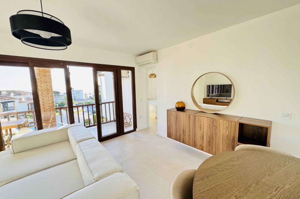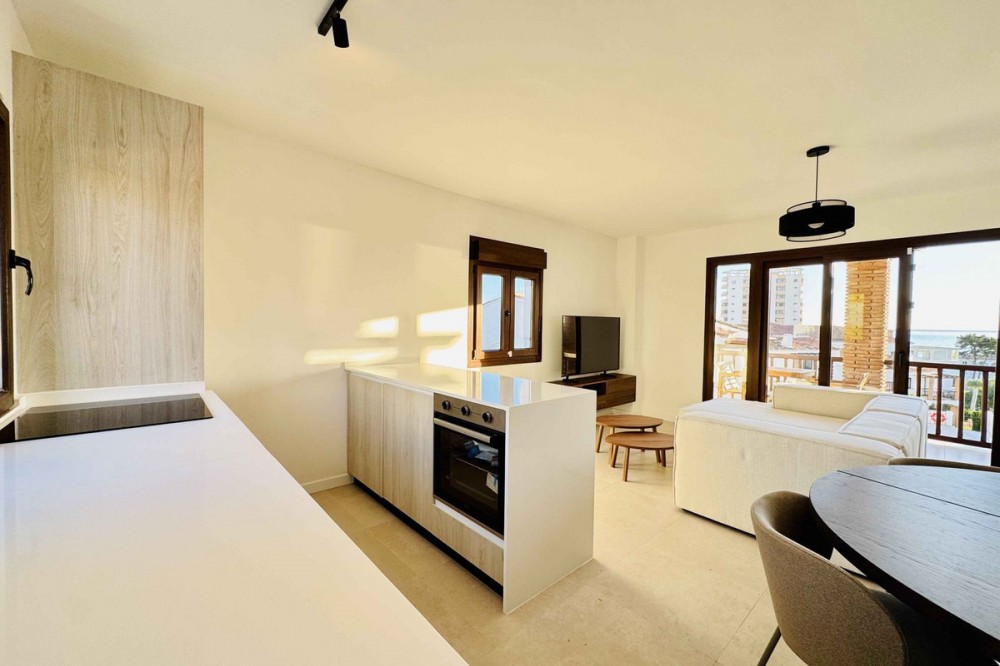 - Stunning 2-Bed, 2-Bath Top-Floor Apartment with Sea Views – Fully Renovated 2025 Discover a rare opportunity to own a modern, beautifully renovated top-floor apartment in a small, cosy community in Riviera del Sol, just a 3-minute walk from the beach and all amenities. This exceptional property combines luxury, comfort, and an unbeatable location. Recently fully renovated in 2025 and styled in elegant minimalistic Japandi design, the apartment is sold fully furnished with high-end, never-used furniture and appliances—ready to enjoy from day one. Property Highlights • 2 spacious bedrooms, both with fitted wardrobes • 2 en-suite bathrooms featuring vanity units, walk-in showers, toilets, and towel heaters • South-west orientation offering warm natural light throughout the day • Open-plan kitchen with brand-new appliances • Large terrace with access from the living room and one bedroom • Beautiful sea views from your private outdoor and indoor space • Fully furnished with luxurious, contemporary décor • Only two apartments in the building, ensuring privacy and tranquillity • Located within a charming community with communal pool and garden * Water is included in the community fees Step outside and find everything at your fingertips : supermarkets, shops, restaurants, and bars, all within walking distance - only 150m away-. Enjoy a stroll to the luxurious Max Beach restaurant and beach club, or reach Marbella and Fuengirola in just 10 minutes. Malaga Airport is conveniently located only 25 minutes away. Flooded with natural light and finished to exceptional standards, this apartment offers a perfect blend of style, location, and comfort. A unique opportunity to own a modern, top-floor home with sea views in one of the Costa del Sol’s most sought-after areas.