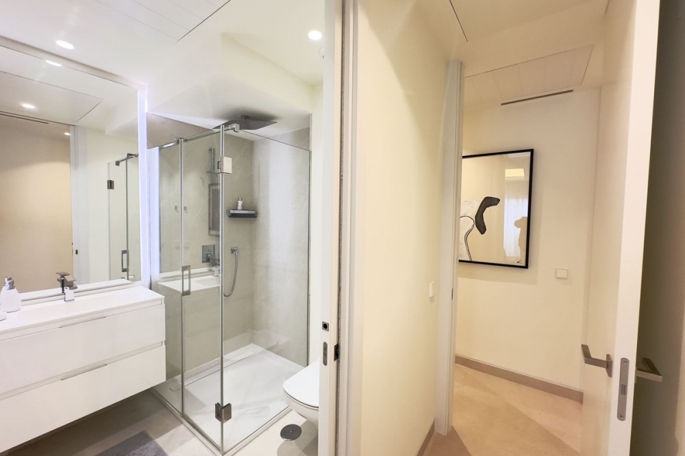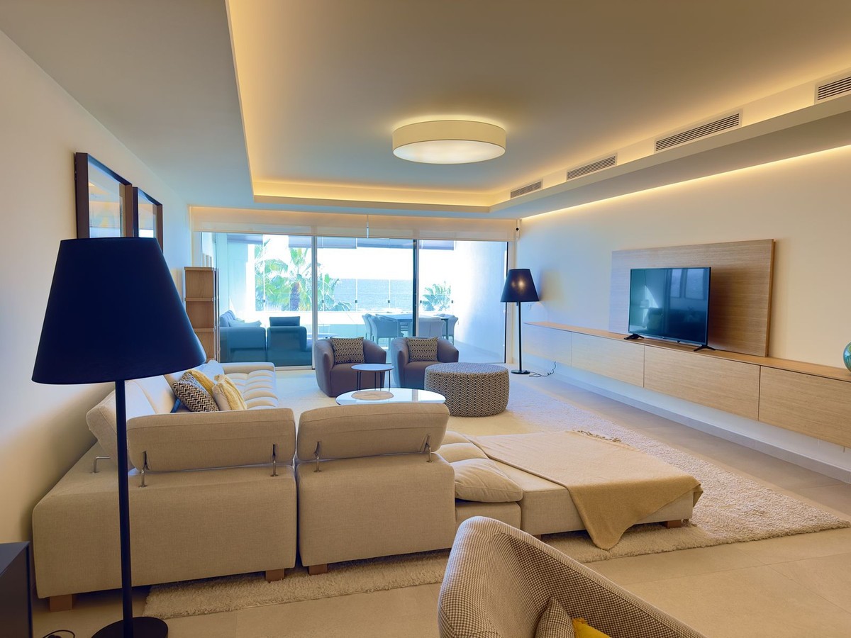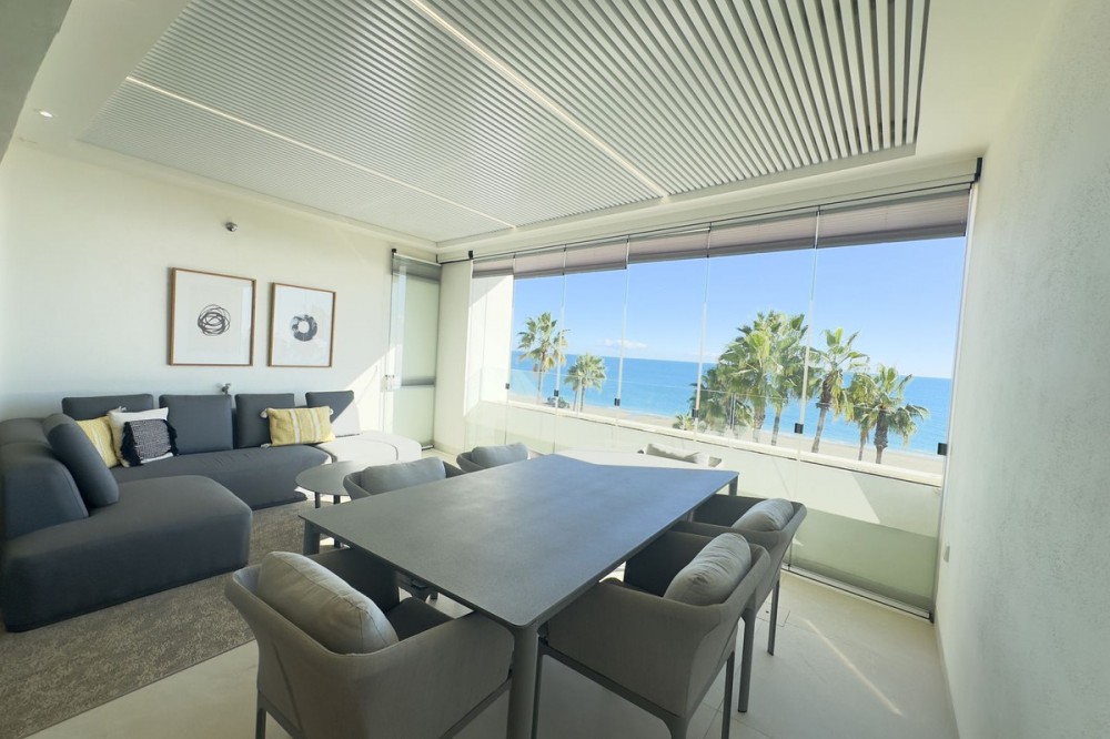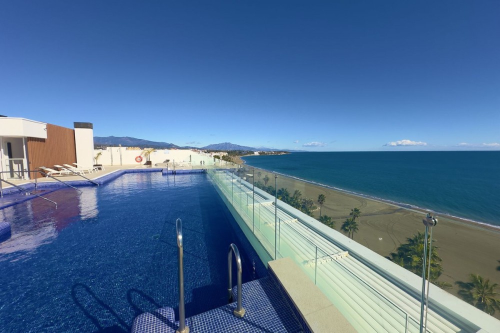 - **Stunning Luxury Seafront Residence in the Heart of Estepona** Located in the prestigious **Darya** residential complex—one of the most iconic and modern buildings on Estepona’s promenade—this exceptional property offers a truly privileged lifestyle with **uninterrupted, front-row views of the Mediterranean Sea** and an unbeatable central location. With **200 m² of built space**, this sophisticated apartment blends contemporary design, cutting-edge technology, and top-quality finishes. A home crafted for those who value **comfort, elegance, and direct access to all city services**, while enjoying privacy, security and an exclusive atmosphere. **✨ Interior – Premium Features** * Impeccable condition, **move-in ready** * Designer kitchen fully equipped with **AEG appliances** * Double oven, warming drawer and large double-door fridge * Spacious **Silestone central island** with ceramic hob * **Aerothermal climate control system** * **Underfloor heating** throughout the entire property * Zoned air conditioning (hot/cold) with **APP-based control** * Electric blinds in the living room with remote control * Video intercom and **safe box** * 3 full bathrooms featuring **Steinberg faucets** * Built-in wardrobes, fully fitted with interior lighting * Terrace enclosed with **Lumon glass system** and integrated blinds * **Two adjacent parking spaces** * Storage room **????️ Community Amenities – A true luxury rooftop** The spectacular rooftop terrace offers an exceptional leisure experience: * **Infinity saltwater pool** with breathtaking Mediterranean views * Outdoor gym * Barbecue area with sink and fridge * Jacuzzi and showers * Sunbeds and parasols * Convenient bathrooms on the same level * Direct elevator access suitable for people with reduced mobility A truly unparalleled property for those seeking the perfect blend of luxury, prime location and Mediterranean lifestyle.