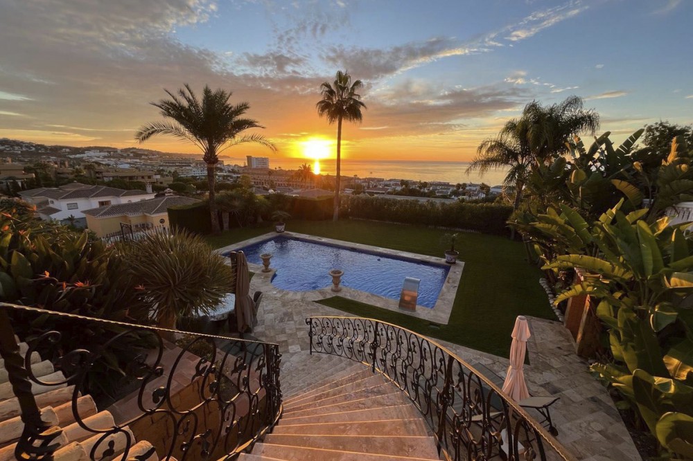 - Do you dream of ultimate luxury on the Costa del Sol? Seize this opportunity now! Welcome to your personal paradise in La Cala de Mijas. This breathtaking, fully renovated villa is not just a house; it is a masterpiece of design, comfort and pure indulgence. Located just a 10-minute walk from the bustling heart of La Cala, a life of sun, sea and unparalleled luxury awaits you here. An entrance that surpasses all expectations. Leave the world behind and step into an oasis of tranquillity. An impressive wooden gate, a serene front garden with a fountain and a majestic hall with a towering ceiling and a magnificent chandelier welcome you. The first thing you see? A panoramic, uninterrupted view of the Mediterranean Sea that takes your breath away. This is coming home. Life without boundaries The light, spacious living room flows seamlessly into a terrace that spans the entire width of the villa. Here, the boundary between indoors and outdoors fades away, and the spectacular sea view becomes your daily painting. The state-of-the-art open kitchen, equipped with high-quality Siemens appliances and a generous cooking island, is the beating heart of the house – a dream for every bon vivant and host. Your own five-star resort This villa is designed for an extraordinary lifestyle. The basement is an entertainment paradise that is second to none: • Your own private bar: Complete with beer tap and coolers, ready for unforgettable evenings. • Heated indoor pool & gym: Stay fit and relaxed all year round. • Separate studio: Perfect for guests or staff, with its own kitchen and entrance. • Garage for 3 cars: Space and security for your fleet. Outside, a beautifully landscaped garden with a stunning saltwater swimming pool awaits. Surrounded by fruit trees and illuminated by atmospheric lighting, this is the perfect place to enjoy the long Spanish summer evenings. Uncompromising perfection in every detail Over the past two years, this villa has been transformed with unprecedented precision. Everything is new, from the plumbing and electrical systems to the seven new sliding doors and electric shutters. Enjoy underfloor heating in every room, a state-of-the-art alarm system and a level of finish that you rarely encounter. This is more than a home; it is a unique opportunity to claim a dream life. A villa of this calibre, in this prime location, rarely comes onto the market. Don't wait any longer and let yourself be seduced by the ultimate combination of luxury, comfort and exclusivity.