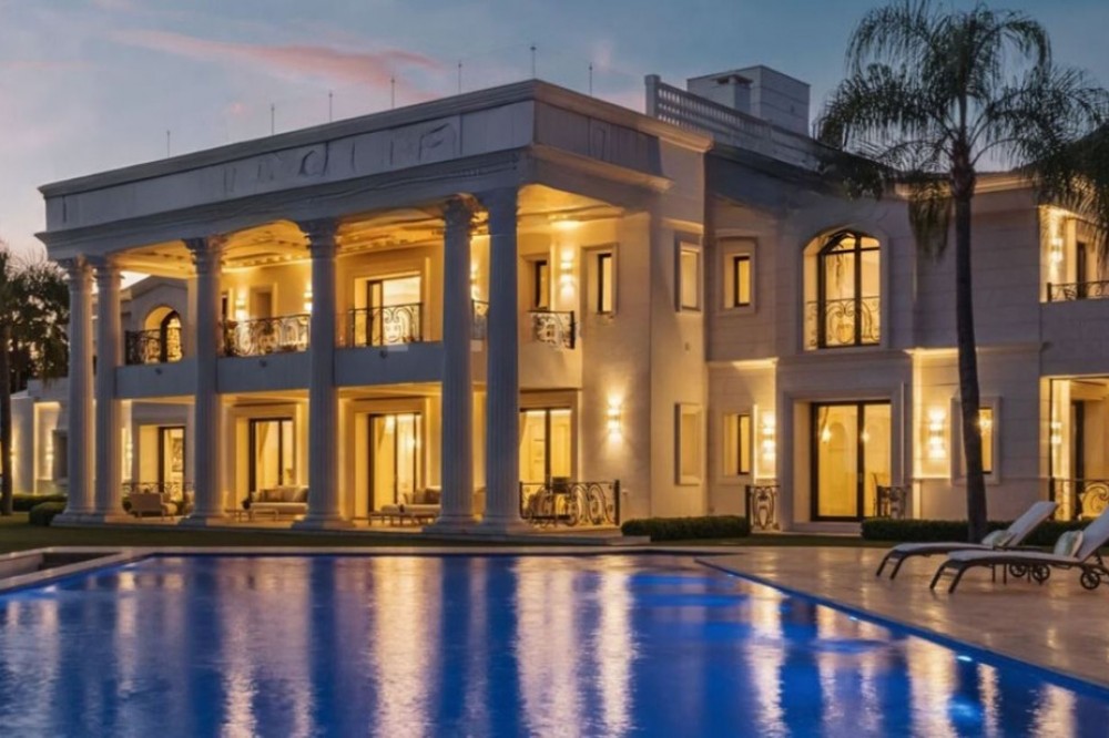 - Deze uitzonderlijke villa, een ware parel op de huidige markt, is een topinvestering in het hart van de prestigieuze Sierra Blanca, aan de beroemde Gouden Mijl van Marbella. Het pand, ontworpen door de bekroonde Spaanse architect Jesús del Valle Cardenete, werd in 2017 bekroond met de Premios Maceal Award voor Beste Internationale Villa. Deze villa straalt klassieke verfijning en tijdloze elegantie uit en is gelegen op een van de meest gewilde locaties in Marbella. De bevoorrechte ligging op het zuiden biedt een adembenemend uitzicht over de Middellandse Zee, met op de achtergrond de iconische berg La Concha. Gelegen op een ruim en vlak perceel van 5.850 m², biedt deze indrukwekkende residentie met vier verdiepingen 2.442 m² woonruimte, verdeeld over 10 slaapkamers en 13 badkamers. Een statige neoklassieke entree met Korinthische zuilen leidt naar een weelderige hal met een imposante dubbele trap en lift naar alle verdiepingen. De begane grond omvat elegante woon- en eetkamers, twee keukens, een kantoor, een speelkamer met bar, een tv-lounge en drie gastensuites. Alle woonruimtes komen uit op royale overdekte terrassen en een fantastische barbecueplek, ideaal voor buitenactiviteiten. De fraai aangelegde tuinen beschikken over een overloopzwembad, rustgevende waterpartijen en ruime zonneterrassen. De magnifieke master suite beschikt over twee badkamers en kleedkamers, een privé-lounge en een terras met panoramisch uitzicht op zee. De overige familiesuites hebben elk een eigen terras en lounge. In de kelder bevinden zich een garage voor acht auto's, een bioscoop, een wijnkelder en een complete spa met binnenzwembad, jacuzzi, sauna, stoombad, fitnessruimte en massageruimte, evenals personeelsverblijven. Deze buitengewone villa is tot in de puntjes afgewerkt en belichaamt de meest luxueuze levensstijl van Marbella.
