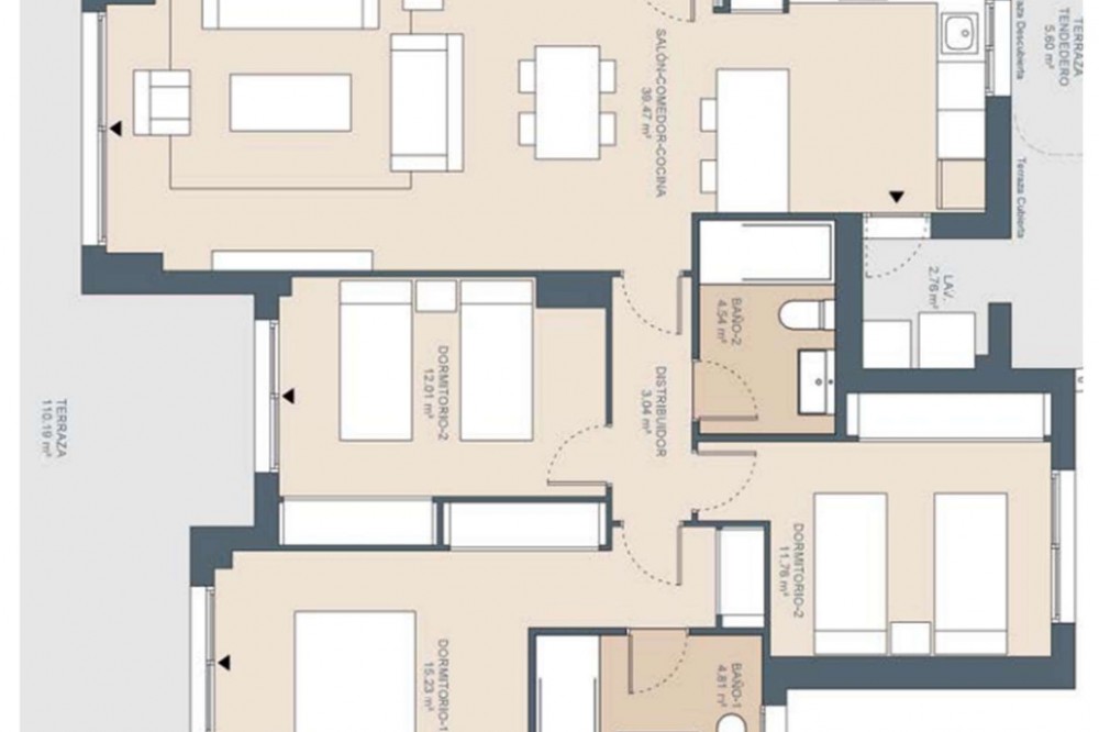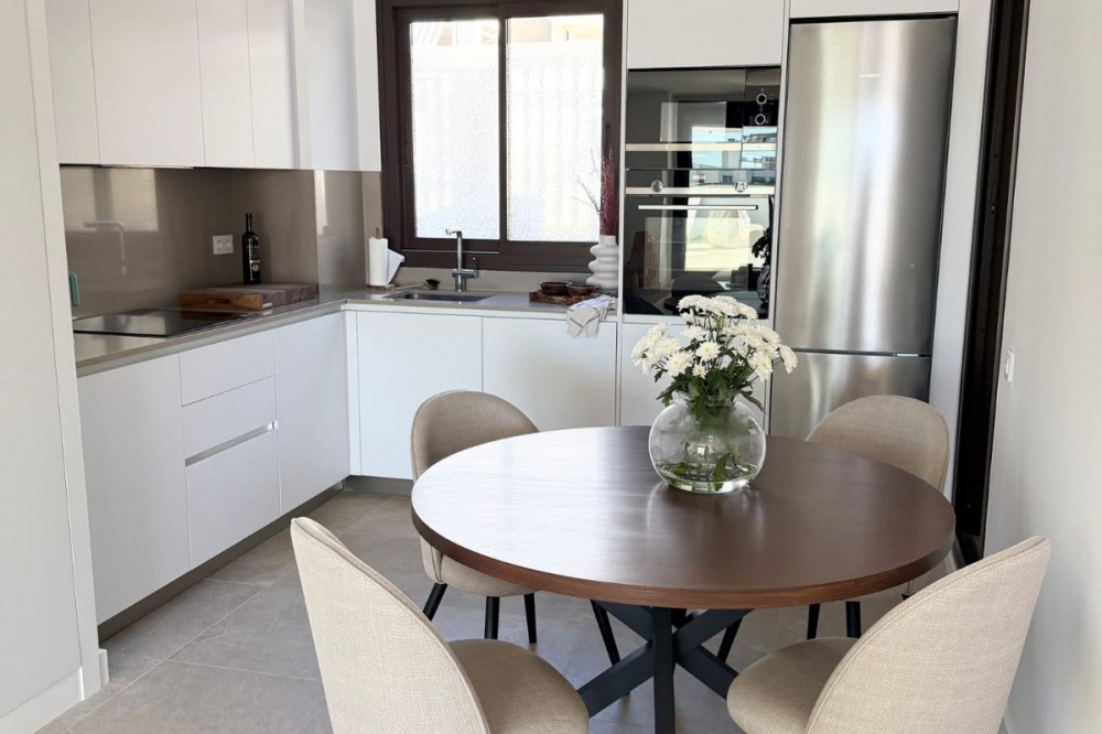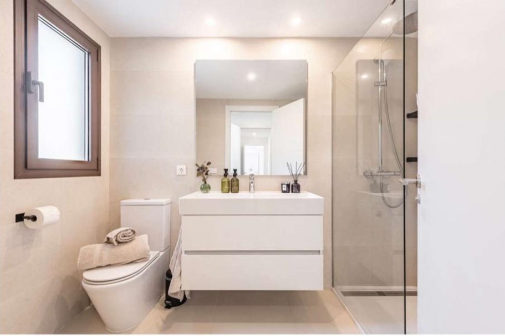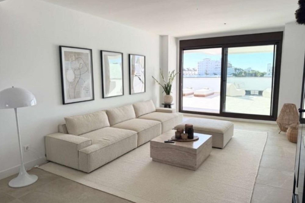 - Dit gloednieuwe, moderne appartement is gelegen in de zeer gewilde wijk Las Mesas in Estepona en wordt opgeleverd in 2025. Het biedt een eigentijds design, royale ruimtes en een uitzonderlijke levensstijl dicht bij de haven, het strand en alle voorzieningen. De woning beschikt over 100 m² woonoppervlak, met drie ruime slaapkamers en twee elegante, moderne badkamers afgewerkt met hoogwaardige materialen. De lichte, open keuken en woonkamer zorgen voor een naadloze overgang tussen binnen- en buitenleven, versterkt door grote ramen die de ruimte met natuurlijk licht overspoelen. Een van de meest opvallende kenmerken van het appartement is het indrukwekkende privéterras van 100 m², waar de hele dag zon ligt. Perfect om buiten te dineren, te ontspannen en gasten te ontvangen. Dit ruime terras vergroot de leefruimte aanzienlijk en biedt de ideale omgeving om te genieten van de levensstijl van de Costa del Sol. De woning beschikt tevens over een eigen garage en een berging, wat zorgt voor comfort en praktische bruikbaarheid. Bewoners profiteren van uitstekende gemeenschappelijke voorzieningen, waaronder een zwembad, een kinderbad en een volledig uitgeruste fitnessruimte, allemaal gelegen in een moderne en goed onderhouden woonwijk. Op loopafstand van de haven van Estepona, de boulevard, winkels, restaurants en alle andere voorzieningen, biedt dit appartement een zeldzame kans om een nieuwbouwwoning te kopen op een van de meest gewilde locaties van Estepona – ideaal als permanente woning, vakantiehuis of investeringsobject. Neem vandaag nog contact met ons op om een bezichtiging in te plannen of meer informatie aan te vragen!