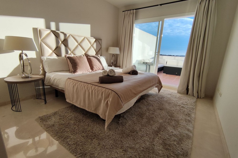 - Accommodatie voor maximaal 4 gasten is beschikbaar in een volledig van airconditioning voorzien penthouse-appartement met twee tweepersoonsslaapkamers, twee badkamers, een volledig uitgeruste keuken met moderne apparatuur en een ruime woonkamer. Het appartement van 200 m² beschikt over een groot terras met uitzicht op de tuin en de omgeving. Eigenaren hebben toegang tot satelliet-tv, privé-wifi, gratis parkeergelegenheid buiten of een privégarage. Er is een gedeeld, omheind zwembad in de tuin, alleen toegankelijk voor bewoners. De lagune ligt op ongeveer 300 meter van het appartement. De lagune van Alcazaba is de eerste in zijn soort in Europa en ligt vlakbij Estepona aan de Costa del Sol, in de gemeente Casares, op slechts 5 minuten rijden van het strand. Dit moderne wooncomplex wordt omgeven door een exotische tuin van 40.000 m² en beschikt over een kristalheldere lagune van 1,4 hectare met wit zand, geïmporteerd uit Marokko. Het water is het hele jaar door geschikt om te zwemmen en diverse niet-gemotoriseerde watersporten te beoefenen, zoals kajakken, waterfietsen en paddleboarden. Tot de voorzieningen behoren een sauna, jacuzzi en twee kinderspeelplaatsen (één in de lagune, gescheiden door een glazen veiligheidshek, en één in de tuin). Er is ook een privéfitnessruimte met uitzicht op de lagune. Toegang tot de lagune en alle bijbehorende diensten zijn gratis voor eigenaren. Er zijn twee restaurants naast de lagune, waarvan één open is voor het publiek en de andere exclusief voor gasten van het resort. Ze bieden een ruime keuze aan eten en drinken en hebben een schitterend uitzicht.