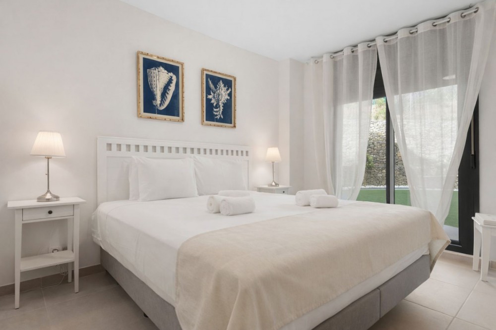 - Charming 3-Bedroom Apartment in La Cala de Mijas. Welcome to this bright and elegant 3-bedroom apartment, thoughtfully designed to offer comfort, space, and relaxation in a beautiful setting on the Costa del Sol. The spacious living room opens onto a large private terrace with a dining area and a cozy lounge set, perfect for unwinding after a day of exploring. From the terrace, you have direct access to a lovely garden where you can enjoy peaceful surroundings and outdoor living. Also have access to a well-maintained communal swimming pool, ideal for sunbathing and cooling off on warm days. The apartment is ideally located in a quiet residential neighborhood, right next to the picturesque Calanova Golf Club, just 650 meters away. Golf lovers will appreciate the proximity, as well as the excellent on-site restaurant. For daily essentials, a Carrefour supermarket is conveniently located only 3 km away. Distances: 3 km to La Cala de Mijas, a charming coastal town with shops, restaurants, and local atmosphere 4 km to the sandy beach of La Cala de Mijas, perfect for a relaxing day by the sea 17 km to Fuengirola train station, with easy connections along the coast 20 km to Aquamijas Water Park, ideal for families and children 16 km to Costa del Sol Hospital 38 km to Málaga International Airport With Marbella and Fuengirola just a short drive away, this apartment is an excellent base for discovering the best of the Costa del Sol, whether you are visiting for golf, beaches, or cultural experiences. Please do not hesitate to contact us. The keys are available at our office.