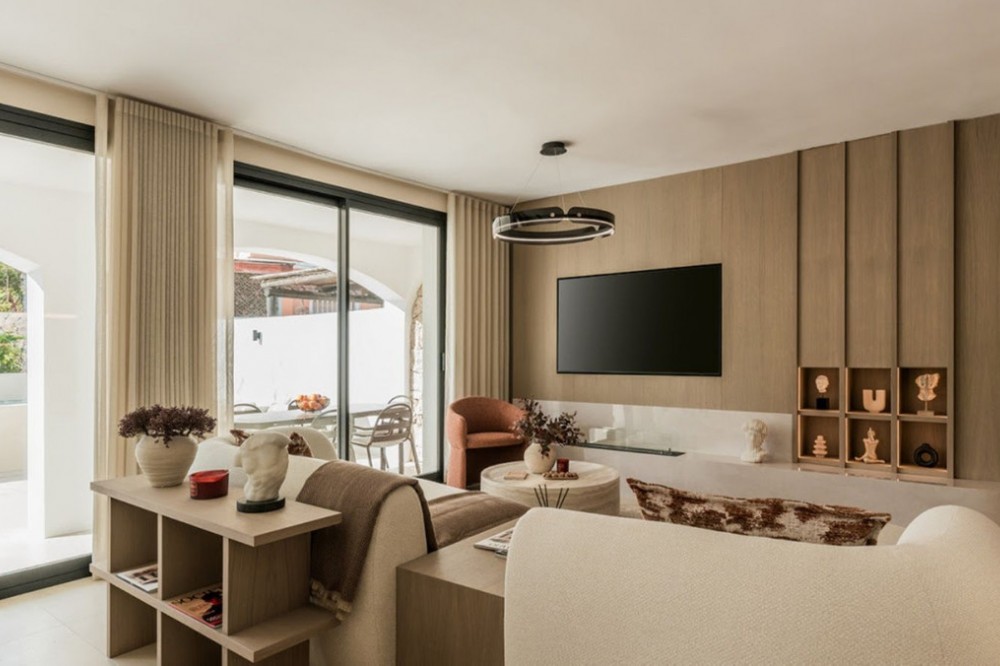 - Wij presenteren een elegante halfvrijstaande woning in een beveiligde woonwijk in het zeer gewilde San Pedro Beach in Marbella. Deze gevestigde woonwijk ligt op slechts een paar minuten lopen van alle voorzieningen, waaronder cafés, supermarkten, internationale scholen, de boulevard en een ruime keuze aan nieuwe restaurants aan het strand met zwembaden en traditionele strandtentjes. De toplocatie maakt het ideaal als permanente woning én als vakantiehuis. Het kleinschalige complex biedt aangelegde tuinen, een groot gemeenschappelijk zwembad, een padelbaan en privéparkeergelegenheid voor bewoners, dit alles in een rustige en kindvriendelijke omgeving, op slechts enkele minuten van de jachthaven van Puerto Banús, de Gouden Mijl van Marbella en Estepona. Deze woning geniet een bevoorrechte hoekligging en profiteert daardoor van optimale privacy en veel natuurlijk licht. Het is recent volledig gerenoveerd en beschikt over een open interieur, ontworpen met hoogwaardige materialen en zorgvuldig geselecteerde meubels, wat resulteert in een moderne, stijlvolle en perfect uitgebalanceerde woning. Comfort is het hele jaar door gegarandeerd dankzij airconditioning (warm en koud) en vloerverwarming in de gehele woning. Het huis is verdeeld over twee verdiepingen. De begane grond biedt een ruime open woonruimte met een moderne keuken, volledig uitgerust met hoogwaardige apparatuur en een kookeiland. De lichte woonkamer komt uit op een gedeeltelijk overdekt terras met een buitenkeuken, een geïntegreerde barbecue en wijnkoelkast, evenals een elegante eethoek in de buitenlucht. Deze ruimte wordt gecomplementeerd door een privé verwarmd zwembad en een buitendouche, ideaal om het hele jaar door van te genieten. Op deze verdieping bevinden zich tevens een gastenslaapkamer, een badkamer en een aparte wasruimte. De bovenverdieping bestaat uit de hoofdslaapkamer met en-suite badkamer, dubbele inloopdouche, kleedruimte en privéterras, evenals twee extra gastenslaapkamers die een badkamer delen. De woning beschikt tevens over twee eigen parkeerplaatsen en is voorbereid voor een laadpunt voor elektrische voertuigen. Deze instapklare woning is een zeldzame kans in San Pedro Beach en combineert een toplocatie, hoogwaardige afwerking en een eigentijds design, op slechts een steenworp afstand van de zee en alle voorzieningen.