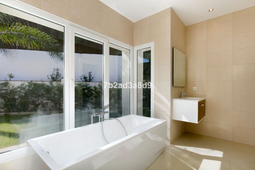 - Deze villa, gelegen in een rustige doodlopende straat in de zeer gewilde badplaats Sotogrande, is op het zuiden georiënteerd. De woning is gebouwd in 2005 en sindsdien smaakvol gerenoveerd. De locatie is ideaal, dicht bij winkels, de jachthaven en het strand. De villa is gelegen op een prachtig perceel van 1.543 m² in een beveiligde woonwijk en biedt een panoramisch uitzicht over het privézwembad en de goed onderhouden tuin. Met een bebouwde oppervlakte van 403 m² beschikt de woning over zes slaapkamers en vijf badkamers. De villa biedt parkeergelegenheid voor twee tot drie auto's binnen de afgesloten oprit, evenals een overdekte veranda met ruimte voor twee auto's, die toegang geeft tot de hoofdingang van het huis. De hal komt uit op een ruime woonkamer met open haard en een volledig uitgeruste keuken met eethoek. Op de begane grond bevinden zich twee ruime slaapkamers, elk met een eigen badkamer. De eerste verdieping omvat de master suite met een eigen badkamer en een grote inloopkast, evenals drie gastenslaapkamers die twee badkamers delen. Extra voorzieningen zijn onder andere een wasruimte, berging, airconditioning (warm en koud), wifi, bewakingscamera's, een beveiligde ingang en een alarmsysteem.