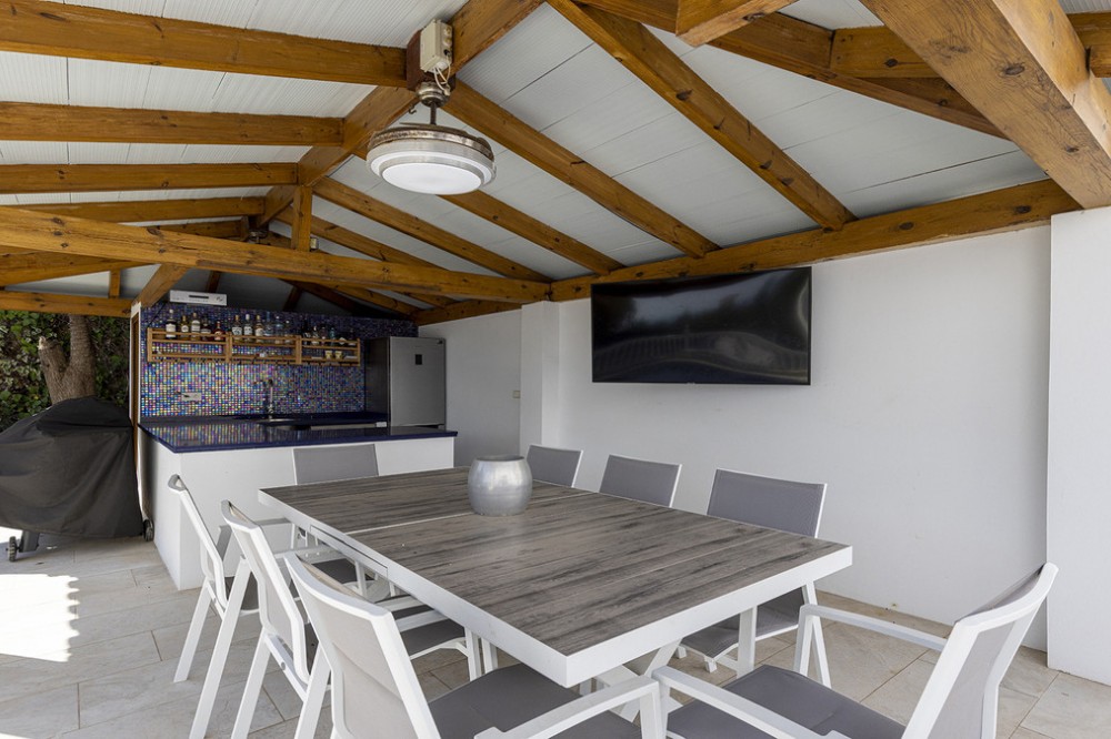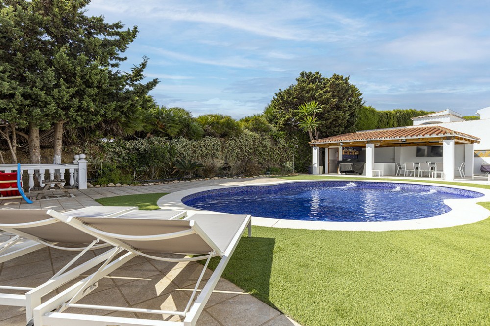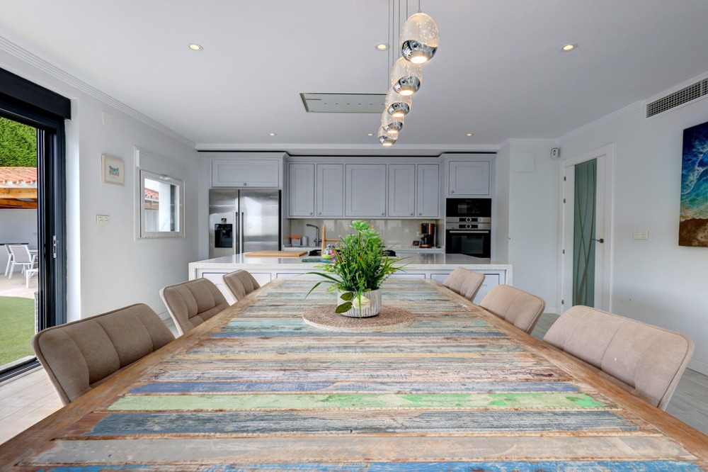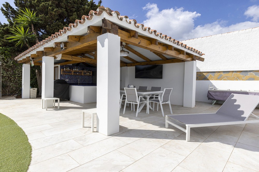 - Deze prachtig gerenoveerde vrijstaande villa in Jardin Tropical biedt de perfecte combinatie van comfort, elegantie en mediterrane charme. Gelegen op een ruim perceel van meer dan 900 m², bevindt de woning zich op een hoger gelegen gedeelte van het terrein en geniet van een adembenemend panoramisch uitzicht op zee. De woning is onlangs smaakvol gerenoveerd, waarbij moderne afwerkingen gecombineerd zijn met de warme sfeer van traditioneel Andalusisch design. Binnen vindt u vier ruime slaapkamers, waarvan twee met een eigen badkamer, plus een extra gezinsbadkamer op de gang. Er is ook een thuisbioscoop, of extra woonkamer voor extra gemak. De lichte en luchtige woonkamer komt uit op een ruim terras in serre-stijl, waar u van zonsopgang tot zonsondergang van de zon kunt genieten. Het is de perfecte plek om te ontspannen, buiten te dineren of gasten te ontvangen, het hele jaar door, terwijl u geniet van het uitzicht en het natuurlijke licht. Buiten komt de villa echt tot zijn recht met een privézwembad, een buitenbar en een zomerkeuken – een heerlijke plek voor gezellige bijeenkomsten of om gewoon te ontspannen onder de mediterrane zon. Op het terras bevinden zich ook een buitendouche en een toilet, terwijl de grote lager gelegen tuin nog meer ruimte biedt om te loungen of om zelf tuinprojecten aan te pakken. Extra voorzieningen zijn onder andere dubbele beglazing met jaloezieën rondom, wat zorgt voor comfort en energiezuinigheid. Deze villa is ideaal gelegen op loopafstand van het strand en biedt rust en privacy, terwijl alle voorzieningen op korte rijafstand liggen. De pittoreske jachthaven van Duquesa en het kustplaatsje San Luis de Sabinillas liggen op slechts 5 minuten afstand, de luchthaven van Gibraltar op 25 minuten en Málaga op ongeveer een uur rijden. Een stijlvol gerenoveerde woning op een toplocatie, perfect als gezinswoning of vakantiehuis. Kom samen met mij kijken!