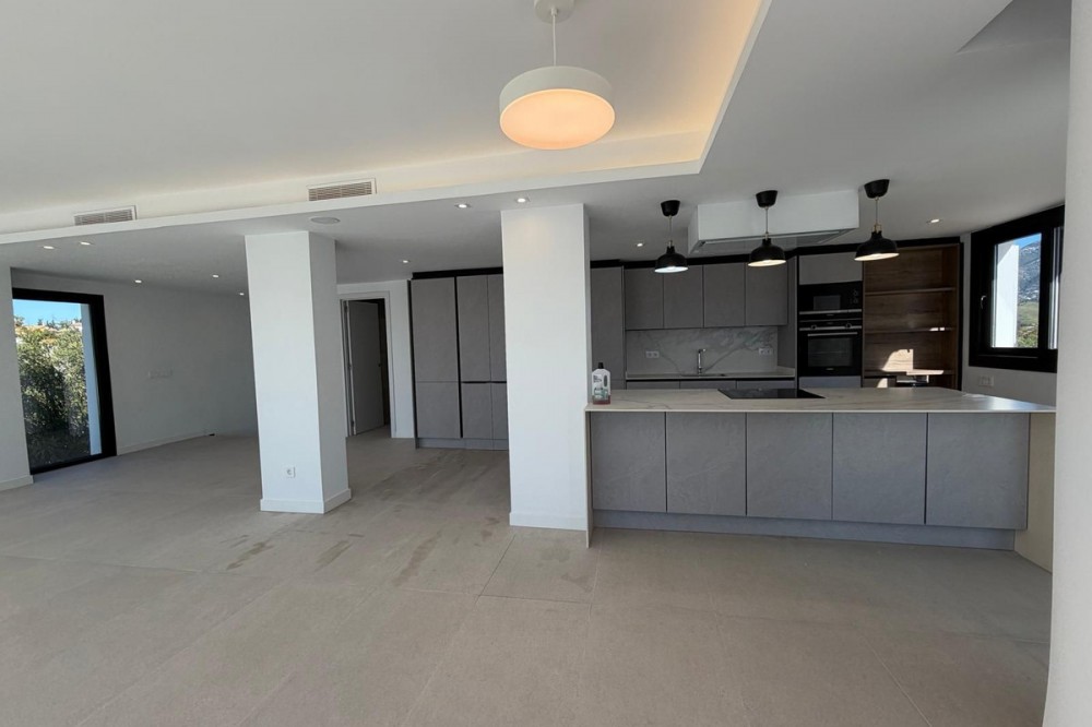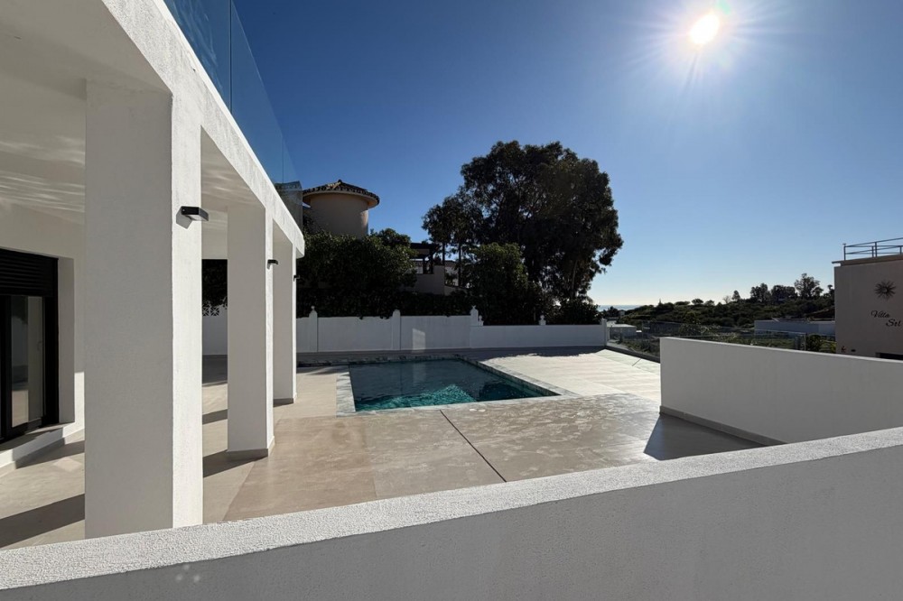 - Deze elegante villa biedt een perfecte combinatie van comfort, ruimte en modern design, ideaal voor wie een verfijnde maar ontspannen levensstijl zoekt in een zeer gewilde buurt. Gelegen vlakbij de internationale school, is het perfect voor gezinnen die op zoek zijn naar gemak, veiligheid en goede bereikbaarheid. De villa baadt in natuurlijk licht en beschikt over open woonruimtes met grote ramen en glazen deuren, waardoor binnen- en buitenruimtes naadloos in elkaar overlopen. U geniet er van een vrij uitzicht met een aangenaam zicht op zee. De moderne open keuken is voorzien van een groot kookeiland met een geïntegreerde kookplaat, ideaal voor zowel het dagelijks leven als het ontvangen van gasten. De woning beschikt over drie ruime slaapkamers, elk met een eigen badkamer, en in totaal vijf badkamers, wat comfort en privacy voor iedereen garandeert. Elke kamer is voorzien van individuele airconditioning, waardoor het hele jaar door een aangenaam binnenklimaat heerst. Buitenleven is uitzonderlijk, met een privézwembad, meerdere patio's en terrassen, en comfortabele loungeplekken in de buitenlucht – perfect om te ontspannen, gezellig samen te zijn of te genieten van de rustige omgeving. Geniet van een weids uitzicht met af en toe een glimp van de zee vanuit de villa, wat bijdraagt aan de serene en exclusieve sfeer. Extra voorzieningen zijn onder meer een privégarage en een grote, verborgen wasruimte achter de keuken, waardoor functionaliteit gecombineerd wordt met een strak en elegant interieur. Deze villa is niet zomaar een huis, het is een levensstijl die luxe, privacy en gemak biedt in een veilige en vriendelijke buurt, dicht bij alle voorzieningen, scholen en lokale bezienswaardigheden.