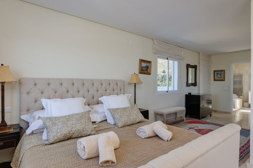 • Waar de Middellandse Zee de Atlas ontmoet: de grandeur van deze villa in La Alquería Mijas Deze villa, gelegen op een verhoogde en imposante locatie in de prestigieuze wijk La Alquería, is niet zomaar een residentie, maar een privé-uitkijkpunt van waaruit men de meest spectaculaire landschappen van de Middellandse Zee kan bewonderen. Op heldere dagen vervaagt de horizon en onthult zich de verre, ruige bergtoppen van Afrika, een ongewone achtergrond van betoverende schoonheid voor een leven in Andalusische luxe. Een compromisloze ruimte: Met een totale vloeroppervlakte van meer dan 572 m2 herdefinieert dit landgoed het concept van "ruimte om te ademen". Hoewel het interieur 385 m2 aan verfijnde woonruimte biedt, ligt de ware ziel van het pand in de royale afmetingen van de bijgebouwen: De infinity edge: een spectaculair privézwembad van 54 m² met Romeinse trappen dat lijkt over te lopen in de vallei. De grote veranda: een overdekt terras van 31 m², de ultieme 'buitenwoonkamer', ontworpen voor lange middagen in de schaduw en dineren in de buitenlucht met uitzicht op de schitterende kustlijn van Mijas. Het terrein: de villa is gelegen op een uitgestrekt perceel van 3.050 m² en biedt volledige privacy. De toegang tot het terrein verloopt via een indrukwekkende entree met een elektronische poort die toegang geeft tot een majestueuze binnenplaats en een aparte garage van 55 m² met geïntegreerde berging. De kunst van het interieur: Binnen combineert de villa grandeur met intiem comfort. Zes elegante slaapkamers (de meeste met een eigen terras) zorgen ervoor dat elke gast over een eigen, persoonlijke plek beschikt. Het hart van het huis is de droom van elke chef-kok: een moderne keuken uitgerust met een extra groot fornuis, twee ovens en een enorme Amerikaanse koel-vriescombinatie, perfect voor het ontvangen van grote gezelschappen. Of u zich nu terugtrekt in de knusse tv-kamer of geniet van de zeebries vanuit de super kingsize suite op de begane grond, het ontwerp van het huis is erop gericht om het ongelooflijke licht en het uitzicht op de omgeving in elke hoek te laten doordringen. De ultieme troef voor een onovertroffen levensstijl: Met een zeer aantrekkelijke vraagprijs is deze villa een unieke kans op de huidige markt: een direct bewoonbaar toevluchtsoord dat rust en een ongelooflijk investeringspotentieel biedt. Van barbecues bij zonsondergang op het terras tot de nabijheid van de golfbanen van wereldklasse aan de Costa del Sol, dit is een object dat u moet ervaren om het te begrijpen. Geniet van de stilte, de ruimte en het uitzicht dat zich over twee continenten uitstrekt.