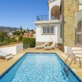 - Exclusieve villa met toeristenvergunning, uitzicht op zee, privézwembad, zonnepanelen en vloerverwarming. Welkom in deze prachtige villa die royale woonruimtes, verfijnde details en unieke flexibiliteit perfect combineert. De woning beschikt over zes slaapkamers, vier badkamers en twee volledig uitgeruste keukens, verdeeld over drie onafhankelijke woongedeelten – elk met een eigen ingang. Dankzij de officiële toeristenvergunning biedt deze villa de ideale mogelijkheid om afzonderlijke gedeelten of het gehele pand te verhuren, waardoor het niet alleen een droomhuis is, maar ook een zeer winstgevende investering. De villa is voorzien van zonnepanelen die ongeveer 80% van het elektriciteitsverbruik van de eigenaren dekken, en vloerverwarming in alle badkamers en het hoofdgedeelte met drie slaapkamers, wat zorgt voor comfort en energiezuinigheid. Omgeven door een prachtig onderhouden tuin, biedt het pand meerdere terrassen waar u kunt genieten van de zon, het uitzicht op zee en onvergetelijke bijeenkomsten. Het privézwembad vormt het hart van het huis tijdens warme mediterrane dagen, terwijl het ruime dakterras uitnodigt om te genieten van een panoramisch uitzicht op de zee en de lucht. Een uitnodigende buitenkeuken met barbecue maakt het pand compleet – de perfecte setting voor lange avonden met familie en vrienden. Indeling: •Centraal gedeelte: Drie slaapkamers, woonkamer, twee badkamers en een volledig uitgeruste keuken. Vloerverwarming in dit gehele hoofdgedeelte en in alle badkamers. Directe toegang tot een groot terras met buitenkeuken, barbecue en eethoek – ideaal om te genieten van het mediterrane buitenleven. •Linkervleugel: Appartement met twee slaapkamers, woonkamer, badkamer, keuken en een eigen tuin met gazon en eethoek – perfect voor gasten of verhuurdoeleinden. •Rechtervleugel: Elegant appartement met eigen badkamer en een ruim terras met adembenemend uitzicht op zee. Aan de voorzijde van het pand leidt een trap naar het ruime dakterras, waar u kunt genieten van volledige privacy en een adembenemend panoramisch uitzicht. Extra voorzieningen zijn onder meer een garage en ruime opbergruimte, terwijl het hele pand – zowel binnen als buiten – gekenmerkt wordt door nauwgezette aandacht voor detail en zorg. Deze villa is de perfecte combinatie van comfort, flexibiliteit en een benijdenswaardige locatie aan zee. Het is meer dan alleen een huis, het is een levensstijl – met als bijkomend voordeel een sterk potentieel voor verhuurinkomsten. Een woning die u echt in persoon moet komen bekijken. Neem vandaag nog contact met ons op om een privébezichtiging te regelen.