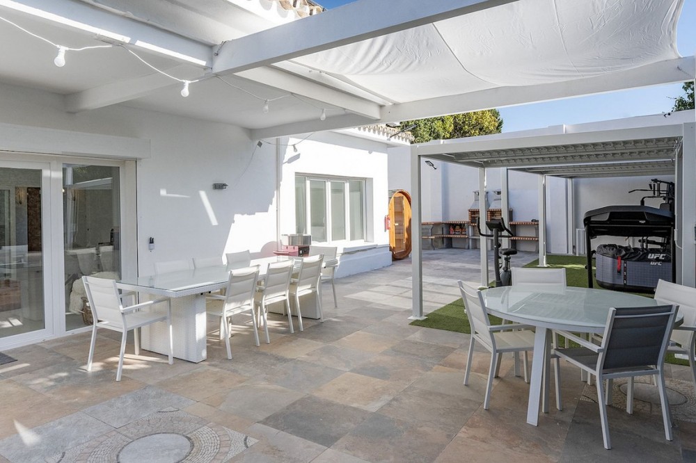 - Moderne villa in Benalmádena: luxe, privacy en rendement. Wij bieden deze fantastische, onlangs gerenoveerde woning aan, gelegen in een gevestigde woonwijk van Benalmádena, op slechts een paar minuten lopen van alle voorzieningen en het strand. Indeling en interieurontwerp Gelegen op een perceel van 815 m² met een prachtige tuin, biedt dit buitengewone pand 346 m² aan fraai ontworpen woonruimte verdeeld over twee verdiepingen, gecombineerd met een buitenruimte die is ontworpen voor een gezonde levensstijl het hele jaar door, met eersteklas faciliteiten: een fantastisch verwarmd zwembad, jacuzzi, sauna, fitnessruimte, barbecueplaats... Binnenin beschikt het over een ruime entreehal, een grote woon-eetkamer die uitkomt op de buitenruimte, een aparte keuken, een wasruimte, 5 grote slaapkamers, 2 badkamers en een volledig zelfstandig studioappartement, perfect voor personeel, gasten of om te verhuren. Samenvatting van de kenmerken • 346 m² bebouwd op een perceel van 815 m² • Volledig gerenoveerd en direct klaar om in te trekken. • Volledige privacy • Zonnepanelen • 6 slaapkamers / 3 badkamers • Wasruimte • Gelegen op het zuidwesten om de hele dag van de zon te genieten • Verwarmd zwembad, sauna en jacuzzi • Sportschool • Barbecue • Garage voor 3 voertuigen • Actieve toeristenvergunning. • Rustige en privélocatie dicht bij voorzieningen, Puerto Marina en Arroyo de la Miel. Investeringsmogelijkheid De woning wordt volledig gemeubileerd en uitgerust verkocht. Of u nu op zoek bent naar een stijlvolle gezinswoning of een exclusieve vakantiewoning, deze uitzonderlijke villa is een veilige investering. De woning beschikt over een toeristenvergunning en biedt een hoog rendement.