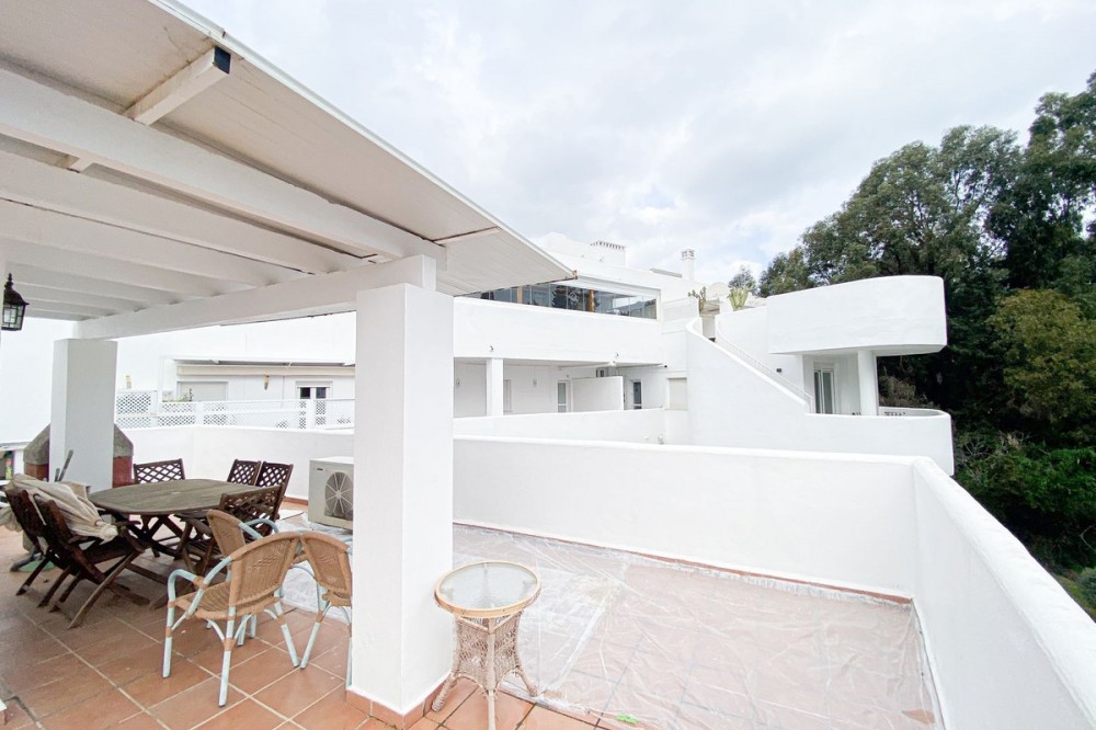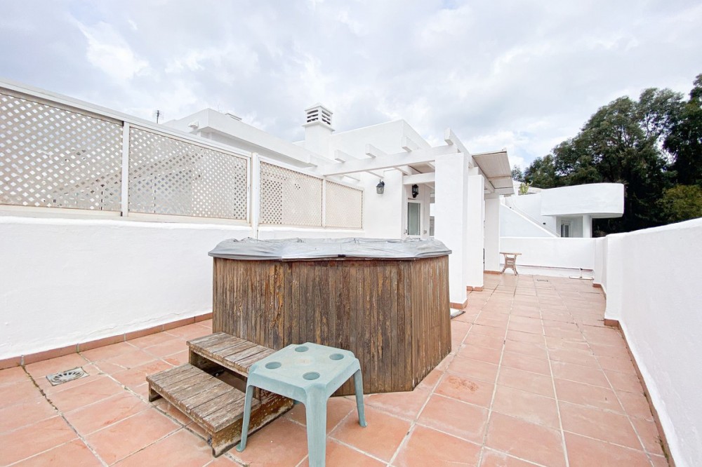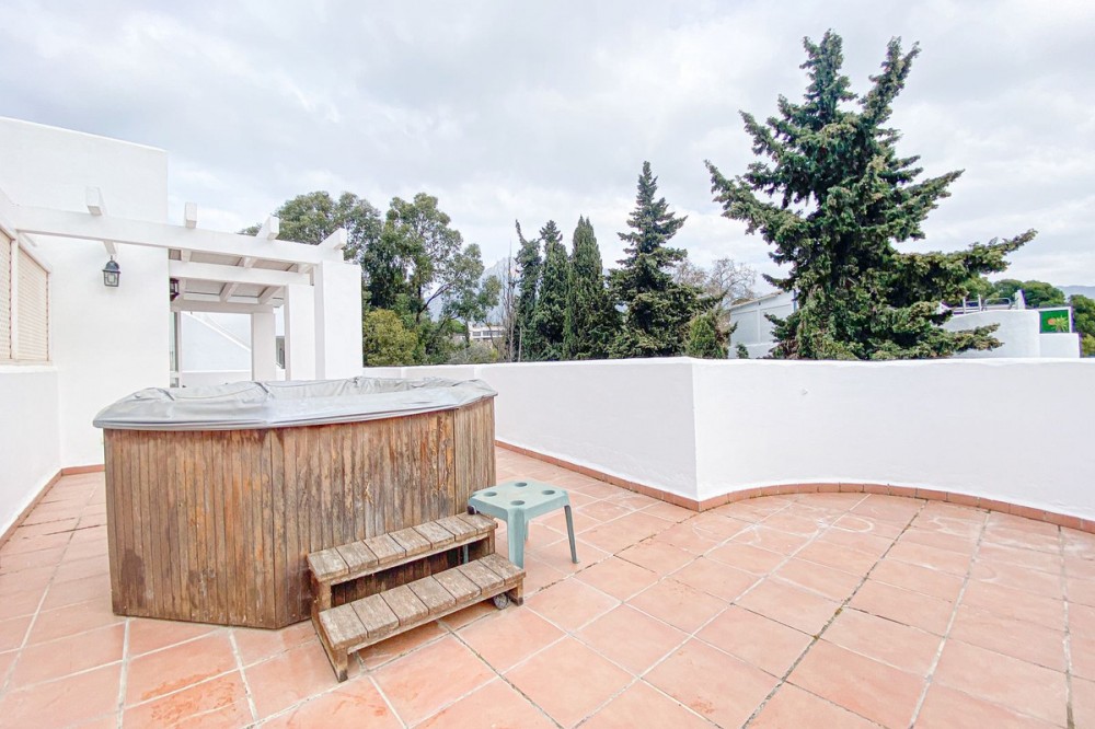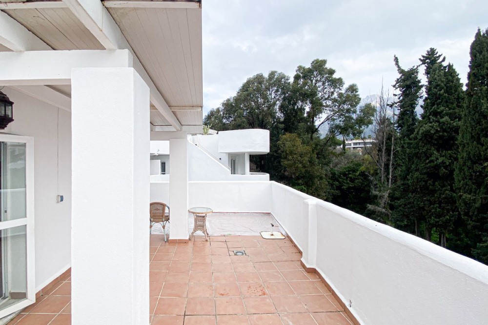 - Wij presenteren dit exclusieve duplex penthouse, gelegen in een van de meest prestigieuze wijken aan de Gouden Mijl van Marbella (Marbella Real). Een woning die opvalt door het buitengewone exterieurontwerp en het magnifieke terras/solarium van 86 m², ideaal om het hele jaar door van het mediterrane klimaat te genieten. Het bovenste terras is de perfecte plek om te ontspannen, bijeenkomsten bij zonsondergang te organiseren of gewoon te genieten van de bevoorrechte omgeving met uitzicht op zee. De woning beschikt over 2 slaapkamers en 2 badkamers, met een comfortabele en functionele indeling die comfort en licht combineert. Het is gelegen in een onberispelijk onderhouden wooncomplex dat een uitzonderlijke levenskwaliteit garandeert, met 24-uursbeveiliging, uitgestrekte tuinen, 5 zwembaden, een fitnessruimte, sauna en een sociale club. Een strategische investering op een onovertroffen locatie, omgeven door alle voorzieningen, sportfaciliteiten en recreatiemogelijkheden op slechts een steenworp afstand, in het hart van de Golden Mile.