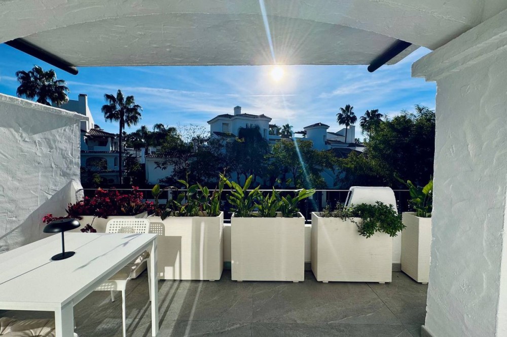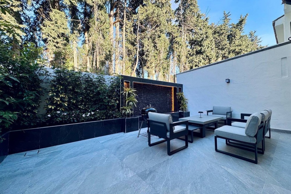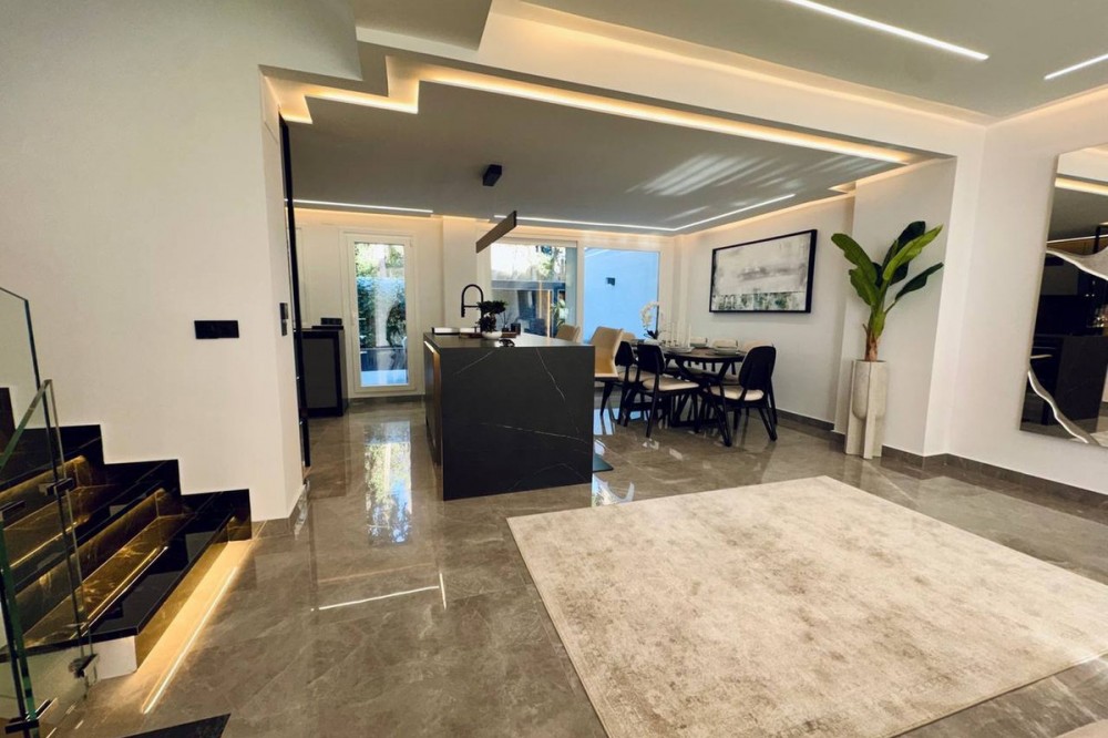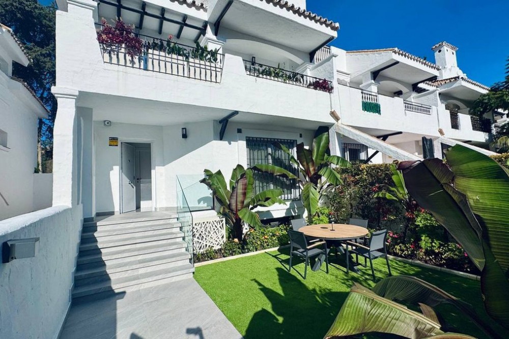 - A magnificent semi-detached house is offered for sale in the established Los Naranjos urbanisation in Marbella, in a quiet and well-connected residential area. The house has an approximate constructed area of 225 m², plus porches and terraces, and is distributed over several floors, offering spaciousness and comfort: ???? Basement: with direct access from the street, it includes a garage and storage room. ???? Ground floor: spacious living-dining room, separate kitchen, toilet, front garden, rear patio, and terrace area. ???? First floor: three bedrooms, two full bathrooms, and a terrace. ???? Rooftop: additional terrace ideal as a solarium. The property enjoys outdoor spaces both at the front and rear, perfect for enjoying Marbella's climate year-round. Located within a well-established urbanisation, with good access and close to all services, shops, and leisure areas. An excellent opportunity both as a permanent residence and as an investment in one of the most sought-after areas of Marbella.