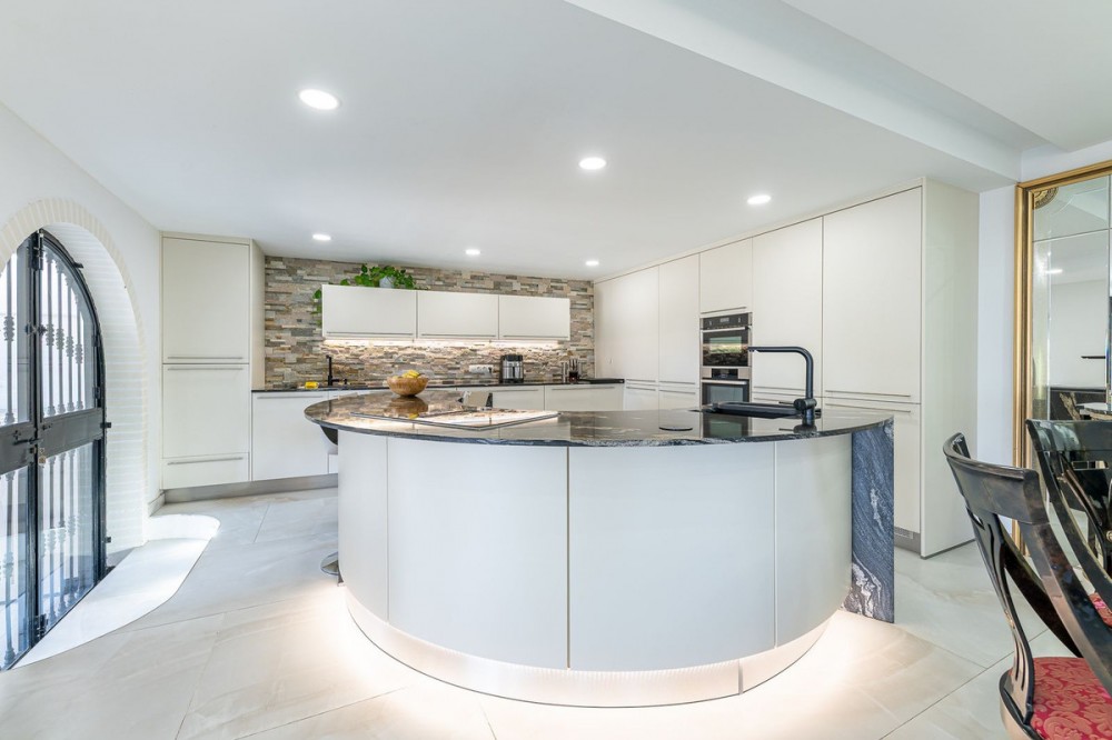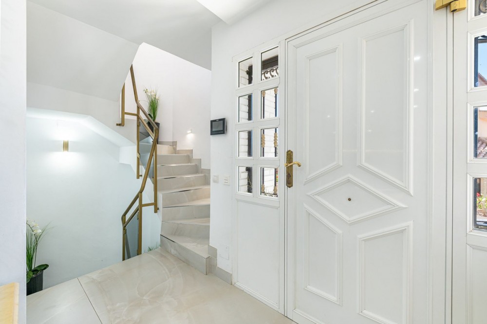 - Spectaculaire designvilla in La Capellanía: luxe, uitzicht op zee en een toeristenvergunning. Wij presenteren u deze prachtige vrijstaande villa in La Capellanía, een van de meest exclusieve en gewilde wijken van Benalmádena. De woning combineert op perfecte wijze traditionele mediterrane architectuur met een eigentijds interieurontwerp en is volledig gerenoveerd met luxe afwerkingen. De villa beschikt over een vergunning voor toeristische verhuur, waardoor het een uitzonderlijke investeringsmogelijkheid is met een bewezen hoog rendement. VERDELING OVER DRIE NIVEAUS De woning is zorgvuldig ontworpen om comfort en natuurlijk licht te maximaliseren: WOONVERDIEPING (75 m²): Het hart van het huis. Een indrukwekkende open ruimte die de woon-eetkamer integreert met een unieke ronde designkeuken. De keuken is voorzien van een prachtig kookeiland van natuursteen, LED-verlichting langs de wanden en hoogwaardige apparatuur. De woonkamer valt op door de moderne open haard ingebouwd in een paneel van zwart marmer en grote ramen die direct toegang bieden tot het zwembad. NACHTVERDIEPING: Gelegen op de bovenverdieping voor optimale privacy. Deze verdieping bestaat uit 4 ruime slaapkamers met kamerhoge inbouwkasten. De kamers bieden een panoramisch uitzicht op de Middellandse Zee en toegang tot privéterrassen. KELDER: Een veelzijdige, multifunctionele ruimte, ideaal voor een wijnkelder, fitnessruimte, thuisbioscoop of speelruimte. EXTERIEUR EN VRIJETIJDSBESTEDING Het perceel biedt een privé en veilige omgeving: Privézwembad van 10x4 meter met een strandachtige toegang, omgeven door hoogwaardig kunstgras. Professionele barbecueplek onder een moderne, bioclimatische pergola, perfect om buiten te dineren. Privé parkeergelegenheid en hoge omheining zorgen voor totale privacy. BELANGRIJKSTE KENMERKEN 4 lichte slaapkamers en 3 designbadkamers: voorzien van geaderd zwart marmer, inbouwkranen en wandtoiletten. Energie-efficiëntie: Uitgerust met ultramoderne zonnepanelen. Klimaatbeheersing: Volledige airconditioning en een moderne open haard. Beveiliging: Dubbelglas veiligheidsramen en video-intercomsysteem. Wonen in La Capellanía betekent genieten van de rust van een prestigieuze woonwijk, op slechts enkele minuten van het strand, het Reserva del Higuerón, en met gemakkelijke toegang tot de snelweg richting Málaga en de luchthaven.