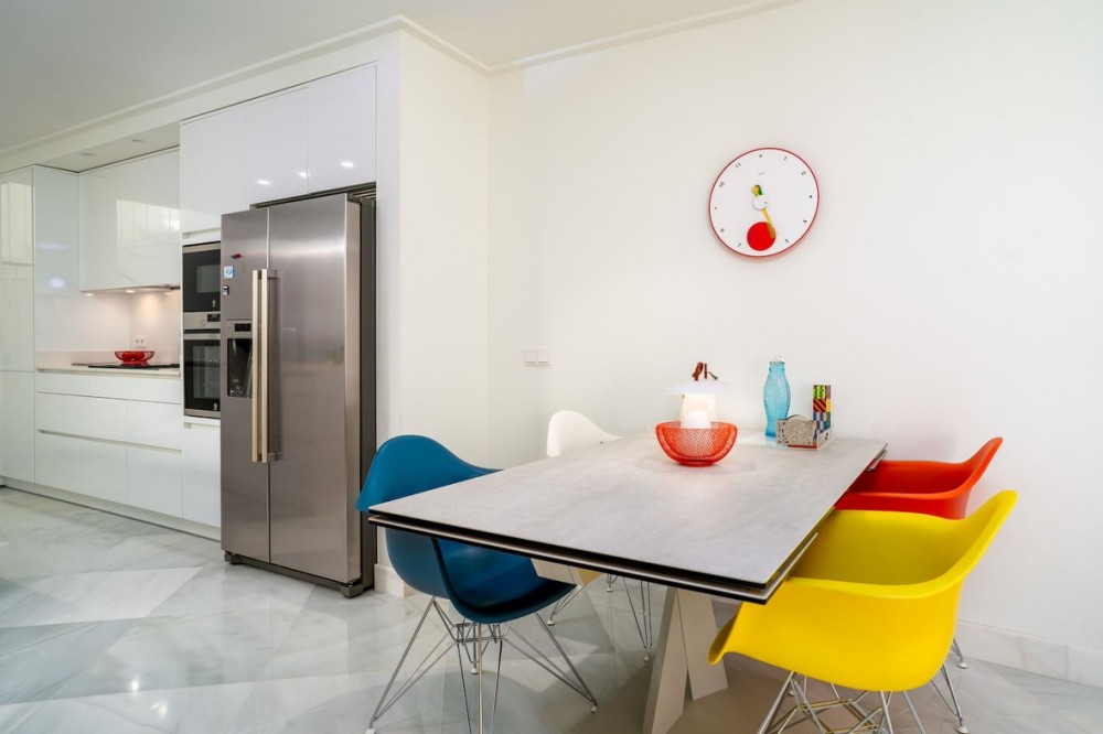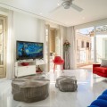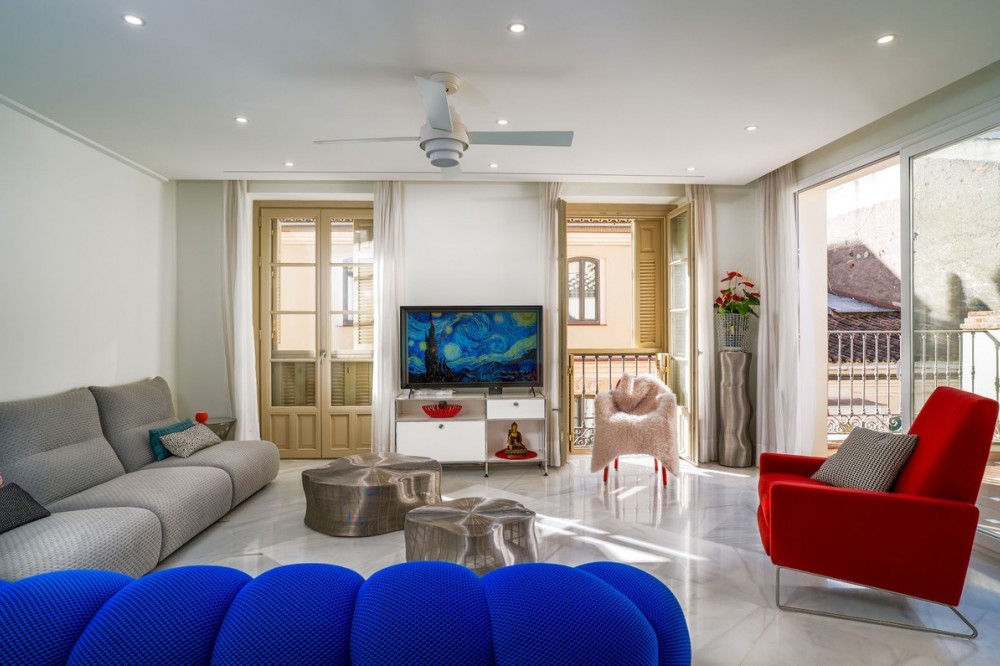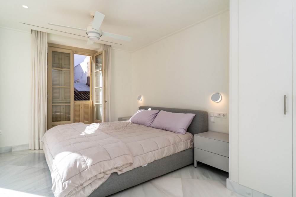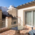 - Exclusief duplex penthouse in het hart van het historische centrum van Málaga Dit volledig gerenoveerde duplex penthouse is gelegen in het hart van het historische centrum van Málaga, aan de zeer gewilde Calle Bolsa, en geniet van een van de meest prestigieuze adressen van de stad. Op slechts een steenworp afstand van de kathedraal van Málaga, Calle Larios, Muelle Uno, de haven, musea, gerenommeerde restaurants en alle dagelijkse voorzieningen, biedt het een unieke kans om midden in het culturele en gastronomische leven van de stad te wonen, terwijl u geniet van privacy en een royale buitenruimte. Het appartement bevindt zich op de bovenste verdieping van een gerenoveerd gebouw en beschikt over een eigen lift die direct toegang geeft tot het appartement. Bezoekers kunnen met de lift naar de derde verdieping, waarna nog een trap leidt naar de ingang van het penthouse. De begane grond beschikt over een ruime woon- en eetkamer die naadloos overgaat in een open keuken, voorzien van hoogwaardige apparatuur, waaronder een oven, magnetron, Amerikaanse koelkast en vaatwasser. Een aparte wasruimte met wasmachine en droger is geïntegreerd in op maat gemaakte kasten. Er zijn drie ruime slaapkamers, elk met een eigen en-suite badkamer. Een vierde kamer, momenteel in gebruik als kantoor, kan gemakkelijk dienstdoen als extra slaapkamer, kleedkamer of multifunctionele ruimte. Twee slaapkamers bevinden zich op de begane grond in een aparte vleugel voor meer privacy, terwijl de derde slaapkamer op de bovenverdieping is gelegen. Een gastentoilet completeert de indeling. Tussen de woonkamer en de slaapkamers aan de straatkant bevindt zich een bijzonder ruim terras dat een natuurlijke overgang vormt tussen het dag- en nachtgedeelte. Deze buitenruimte biedt comfortabel plaats aan zowel een eettafel als een loungehoek. Een terras van deze omvang in het historische centrum van Málaga is zeer ongebruikelijk en voegt aanzienlijk toe aan de leefbaarheid. Op de bovenverdieping bevindt zich een tweede terras, op dezelfde verdieping als de derde slaapkamer. Vanaf deze verdieping leidt een elegante wenteltrap naar het dakterras. Vanaf deze verhoogde positie geniet u van een onbelemmerd uitzicht op de kathedraal van Málaga, gedeeltelijk uitzicht op de haven en de zee, en een panoramisch uitzicht over de daken van het historische centrum en de omliggende heuvels. Het pand biedt in totaal circa 56 m² aan terrassen, verdeeld over drie verdiepingen. Het appartement is volledig gerenoveerd met hoogwaardige materialen en moderne technische installaties. Het klimaatbeheersingssysteem is voorzien van Airzone-technologie, waardoor de temperatuur in elke kamer afzonderlijk kan worden geregeld voor meer comfort en een hogere energie-efficiëntie. De woning wordt instapklaar verkocht en is geschikt als hoofdverblijf, tweede huis of exclusieve stadswoning in Málaga.