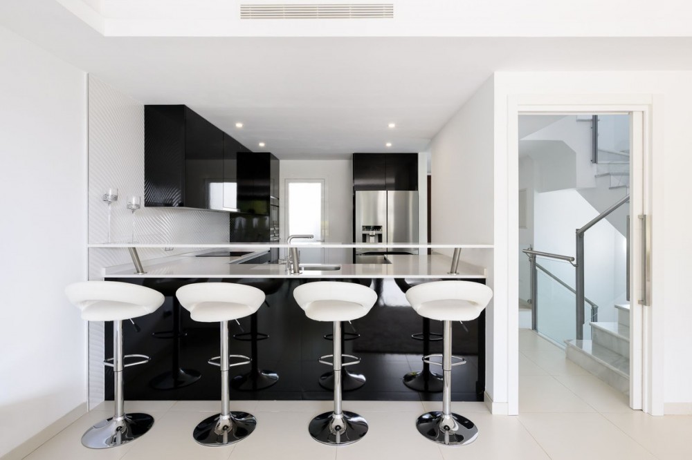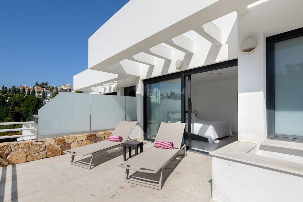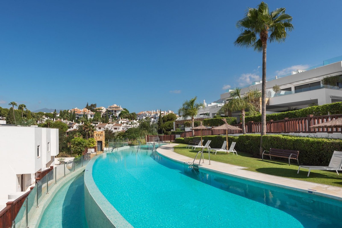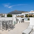 - EXCLUSIEVE AANBIEDING Maak kennis met uw droomhuis aan de Golden Mile. Locatie, locatie, locatie... Dit prachtige, nieuw gebouwde herenhuis belichaamt luxe en is perfect gelegen op slechts enkele meters van de gerenommeerde hotels Puente Romano en Marbella Club aan de Gouden Mijl. Dankzij de toplocatie biedt deze woning ongeëvenaard gemak en toegang tot enkele van de meest prestigieuze voorzieningen van Marbella. Stap binnen en laat u betoveren door de elegantie en verfijning van deze prachtige woning. Met drie grote slaapkamers en 2,5 badkamers biedt dit herenhuis ruime en comfortabele leefruimtes, perfect om te ontspannen en gasten te ontvangen. De master suite is een waar toevluchtsoord, met directe toegang tot een eigen terras op het zuiden met adembenemend uitzicht op zee, een inloopkast en een prachtige en-suite badkamer. Stel je voor dat je wakker wordt met het zachte geluid van de golven en geniet van je ochtendkoffie terwijl je het panoramische uitzicht bewondert. Voor buitenactiviteiten beschikt de woning over een groot, privé dakterras met een buitenkeuken en barbecue, de perfecte plek om in alle privacy buiten te dineren en te genieten van de mediterrane zon. Onder het huis biedt een grote kelder eindeloze mogelijkheden, of u nu een extra slaapkamer, een speelkamer of een thuisbioscoop wilt creëren – de keuze is aan u. Daarnaast zorgt een privégarage voor twee auto's met directe toegang tot het huis via een lift naar alle verdiepingen voor extra gemak en veiligheid. Bewoners van deze exclusieve woongemeenschap genieten tevens van toegang tot een ondergrondse parkeergarage, 24-uursbeveiliging en drie zwembaden, waaronder een verwarmd zwembad, waardoor ze het hele jaar door kunnen ontspannen en plezier beleven. Mis deze unieke kans niet om een stukje paradijs te bezitten aan The Golden Mile. Plan vandaag nog een bezichtiging in en maak van dit droomhuis uw realiteit.