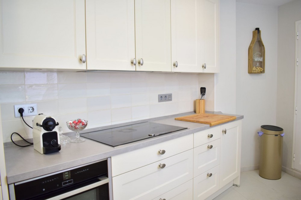 - Wij bieden een uniek appartement aan in een van de beste strandcomplexen van Elviria. Dit gezellige, volledig gerenoveerde appartement met twee slaapkamers, een ruime woonkamer en een panoramisch terras is de perfecte keuze voor wie comfort en privacy waardeert. Het complex beschikt over prachtig aangelegde tuinen, een privétennisbaan, een zwembad, een vijver en directe toegang tot enkele van de mooiste stranden van Marbella. De nieuwe keuken is uitgerust met apparatuur van MIELE, NEFF en LIEBHER. Er is een nieuw airconditioningsysteem van DAIKIN. Het appartement beschikt tevens over een aparte wasruimte en een kleedkamer. Een ruime berging van 25 m² en een parkeerplaats zijn inbegrepen.