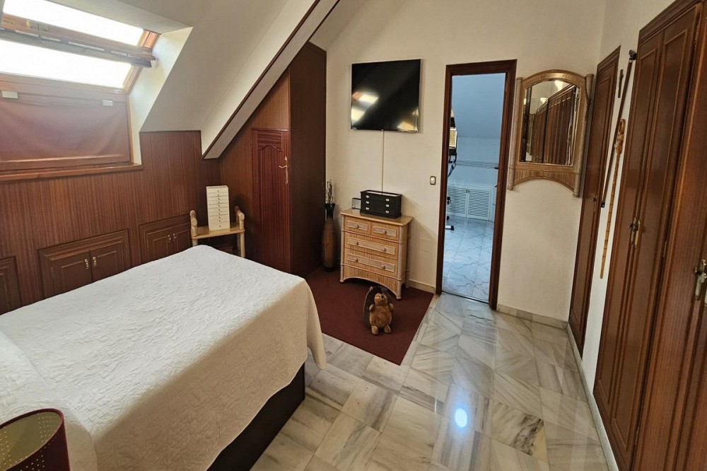 - Dit luxueuze duplex penthouse is gelegen in het hart van Fuengirola, op slechts 10 minuten lopen van het stadscentrum en 400 meter van het strand. Omgeven door essentiële voorzieningen zoals klinieken, scholen, winkelgebieden en openbaar vervoer, biedt deze woning ongeëvenaard gemak. Het penthouse biedt meer dan 300 m² woonruimte en beschikt over 5 slaapkamers, allemaal voorzien van hoogwaardige airconditioning. De master suite beslaat 30 m² en er zijn 3 badkamers, waaronder een indrukwekkende van 30 m². De woning omvat tevens een terras van 20 m² en een patio op de bovenverdieping met een douche en een wasruimte. De open woon-, eet- en bibliotheekruimte beslaat 60 m² en er is een volledig ingerichte keuken met airconditioning. Er is voldoende opbergruimte met 14 lage en 8 hoge inbouwkasten, allemaal met geïntegreerde verlichting. Andere pluspunten zijn onder meer twee bergingen, een grote garage en een afgesloten patio op de benedenverdieping met een stenen barbecue. De gemeenschap beschikt over zwembaden voor volwassenen en kinderen, zodat er voor alle leeftijden vermaak is. Veiligheid en comfort staan voorop, met een geavanceerd alarmsysteem over twee verdiepingen en telefoon-tv-aansluitingen in alle kamers. Deze woning biedt een luxueuze en functionele levensstijl, ideaal voor gezinnen of voor wie op zoek is naar een uitzonderlijke investering. Dankzij de toplocatie en de bijzondere kenmerken biedt dit duplex penthouse een unieke kans op luxueus wonen in Fuengirola.