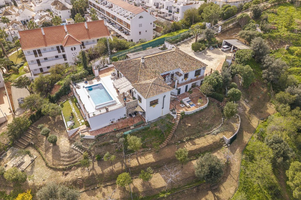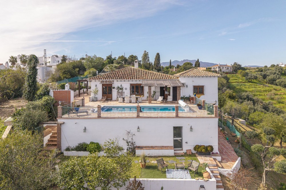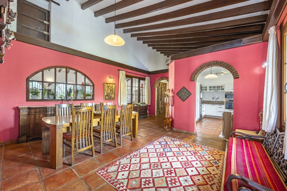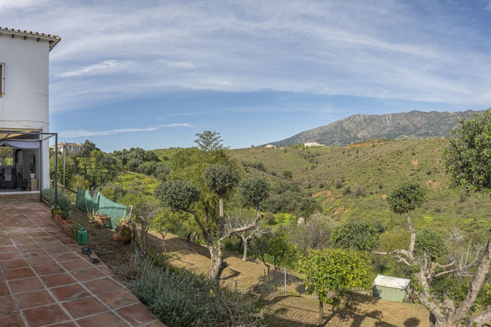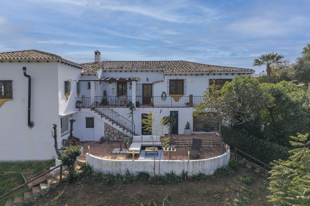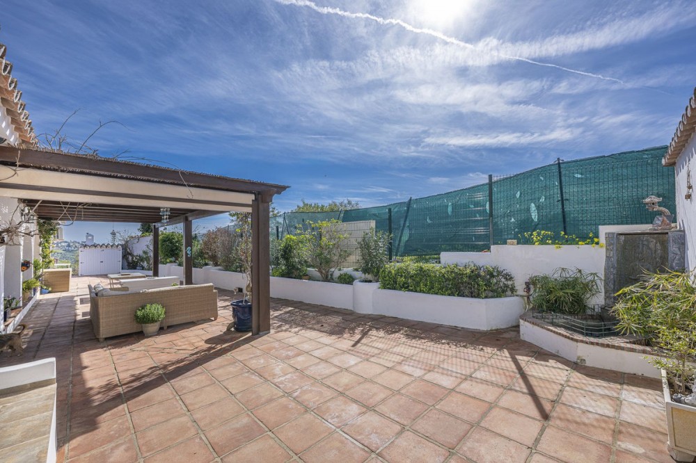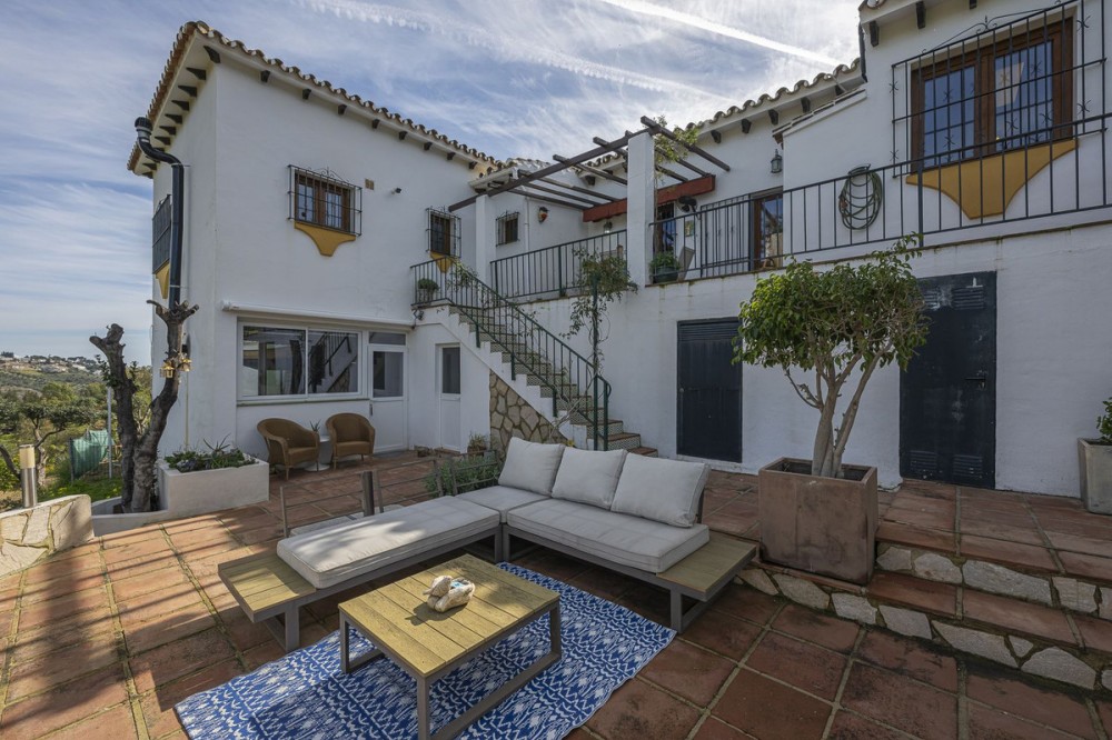 - In het hart van de prestigieuze wijk Loma del Flamenco, binnen Mijas Golf, ligt deze prachtige villa die Andalusische charme perfect combineert met hedendaags comfort. Gelegen op een ruim perceel van meer dan 6.000 m², biedt de woning privacy, ruimte en een unieke natuurlijke omgeving, met panoramisch uitzicht op zee en bergen dat uitnodigt om te genieten van de rust van de Costa del Sol. Het huis beschikt over drie ruime tweepersoonsslaapkamers, elk met een eigen badkamer, en is gedeeltelijk gerenoveerd met hoogwaardige materialen en een verfijnde smaak, waardoor een warme en harmonieuze sfeer is gecreëerd. De grote woonkamer met open haard en directe toegang tot de patio op het zuiden grenst aan een lichte eetkamer en een volledig uitgeruste, aparte keuken. Buiten omringen de verschillende patio's en terrassen een privézwembad waar de zon de hele dag schijnt. Het pand biedt tevens parkeergelegenheid voor meer dan vier auto's, diverse bergingen en een eigen waterput die de tuinen en fruitbomen op het landgoed van water voorziet. Tot de moderne voorzieningen behoren zonnepanelen met batterijopslag, wat zorgt voor energie-efficiëntie en duurzaamheid. De locatie is ongeëvenaard: op slechts 15 minuten van de stranden van Fuengirola en vlakbij de twee golfbanen van Mijas, die bekend staan om hun exclusieve sfeer en prachtig onderhouden omgeving. Binnen 25 minuten bereikt u de luchthaven van Málaga, het centrum van Málaga en Marbella – waardoor deze woning een ideale plek is voor zowel permanent wonen als vakanties. Een villa met karakter, positieve energie en een werkelijk luxueuze locatie in een van de meest gewilde gebieden van de Costa del Sol.