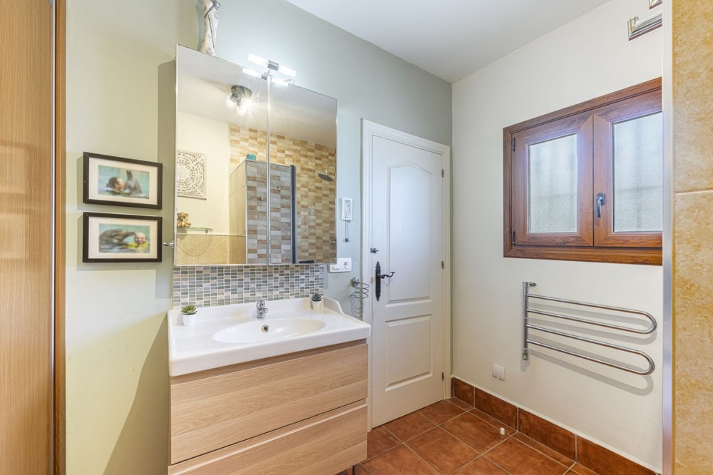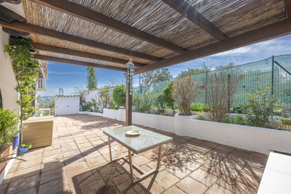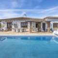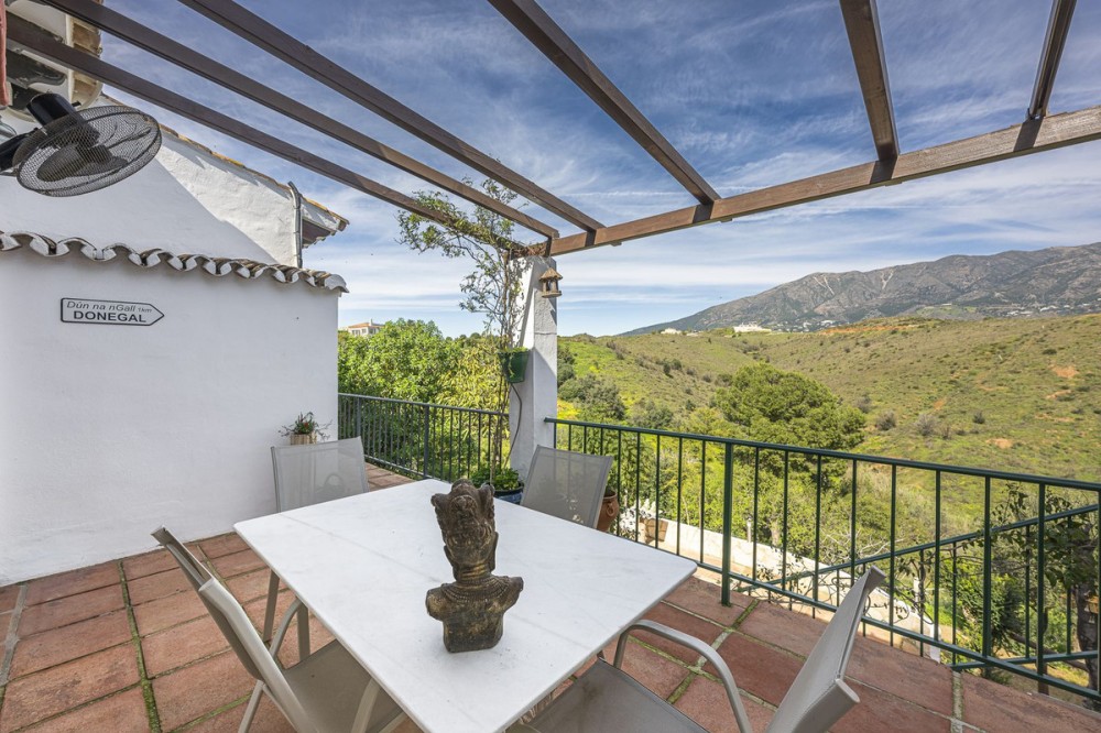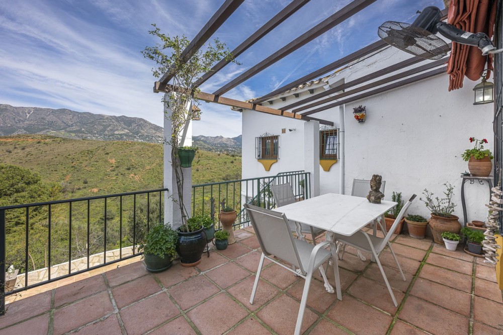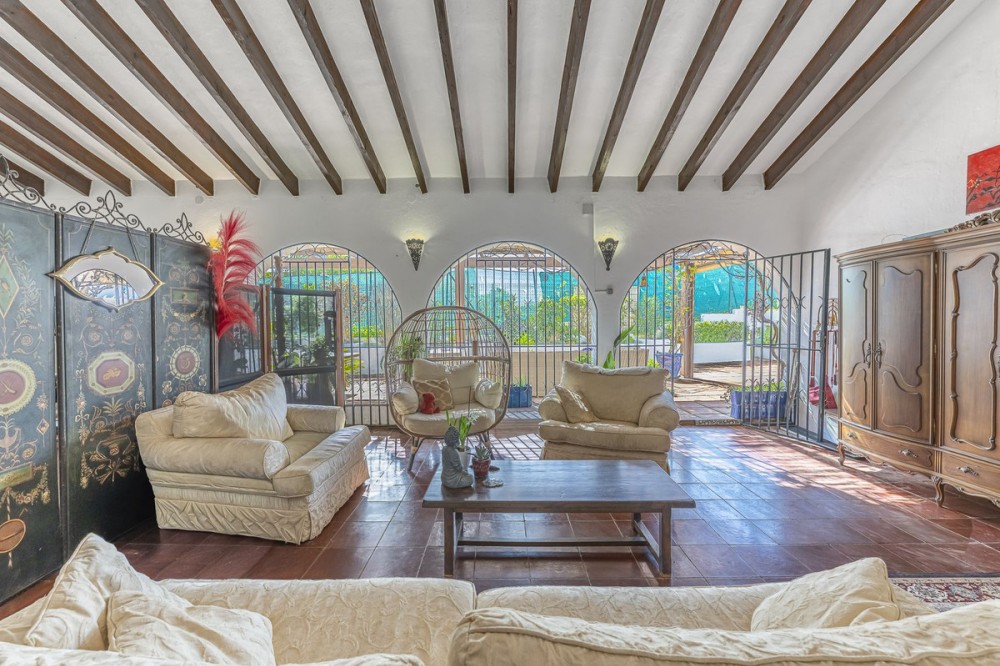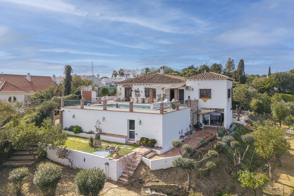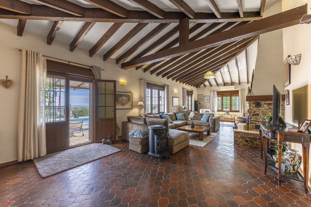 - In het hart van de prestigieuze wijk Loma del Flamenco, binnen Mijas Golf, ligt deze prachtige villa die Andalusische charme perfect combineert met hedendaags comfort. Gelegen op een ruim perceel van meer dan 6.000 m², biedt de woning privacy, ruimte en een unieke natuurlijke omgeving, met panoramisch uitzicht op zee en bergen dat uitnodigt om te genieten van de rust van de Costa del Sol. Het huis beschikt over drie ruime tweepersoonsslaapkamers, elk met een eigen badkamer, en is gedeeltelijk gerenoveerd met hoogwaardige materialen en een verfijnde smaak, waardoor een warme en harmonieuze sfeer is gecreëerd. De grote woonkamer met open haard en directe toegang tot de patio op het zuiden grenst aan een lichte eetkamer en een volledig uitgeruste, aparte keuken. Buiten omringen de verschillende patio's en terrassen een privézwembad waar de zon de hele dag schijnt. Het pand biedt tevens parkeergelegenheid voor meer dan vier auto's, diverse bergingen en een eigen waterput die de tuinen en fruitbomen op het landgoed van water voorziet. Tot de moderne voorzieningen behoren zonnepanelen met batterijopslag, wat zorgt voor energie-efficiëntie en duurzaamheid. De locatie is ongeëvenaard: op slechts 15 minuten van de stranden van Fuengirola en vlakbij de twee golfbanen van Mijas, die bekend staan om hun exclusieve sfeer en prachtig onderhouden omgeving. Binnen 25 minuten bereikt u de luchthaven van Málaga, het centrum van Málaga en Marbella – waardoor deze woning een ideale plek is voor zowel permanent wonen als vakanties. Een villa met karakter, positieve energie en een werkelijk luxueuze locatie in een van de meest gewilde gebieden van de Costa del Sol.