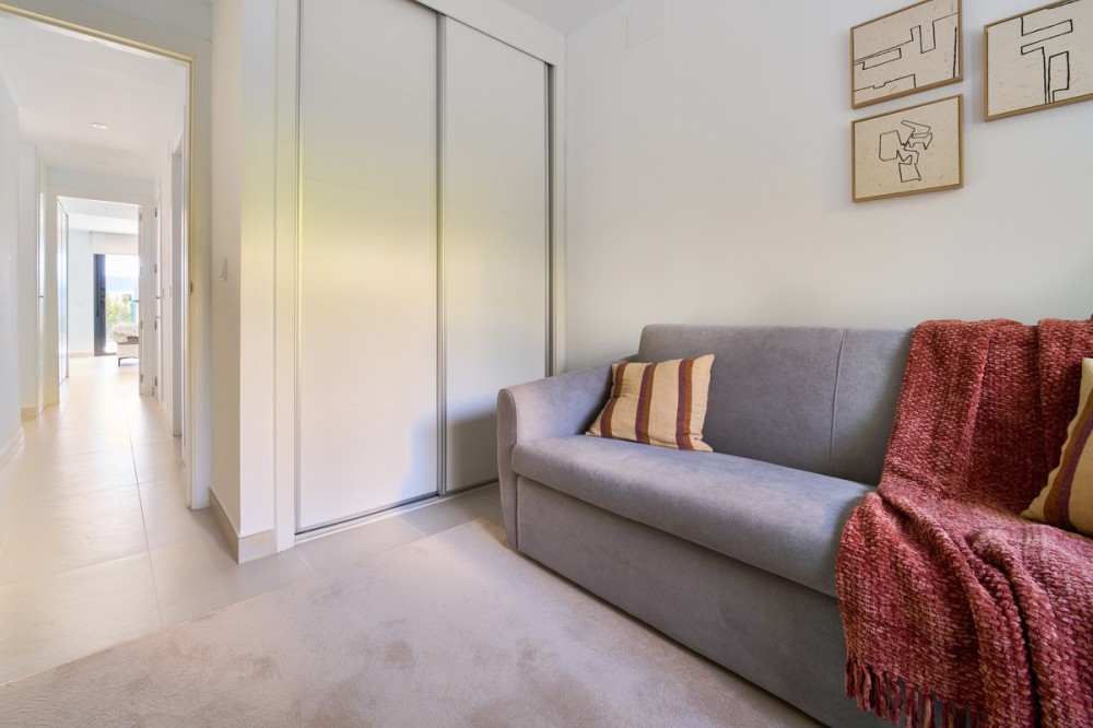 - Nieuwbouwproject: Prijzen vanaf € 540.000 tot € 540.000. [Slaapkamers: 2] [Badkamers: 2] [Woonoppervlakte: 90m2]. Laatste unit! Instapklaar, volledig gemeubileerd 2-slaapkamer appartement op de begane grond, gelegen op het zuiden, in een beveiligde woonwijk met zwembaden, tuinen, jacuzzi's en een kinderspeelplaats. Strategisch gelegen aan de nieuwe Gouden Mijl van Marbella, op loopafstand van het strand, alle voorzieningen en diensten, en het stadje Cancelada. Puerto Banús en Estepona liggen op slechts 10 minuten rijden. De woning heeft een modern design met comfortabele eigenschappen zoals vloerverwarming, efficiënte aerothermische verwarming, ruime terrassen en een tuin op het zuiden, twee garageplaatsen en een berging.