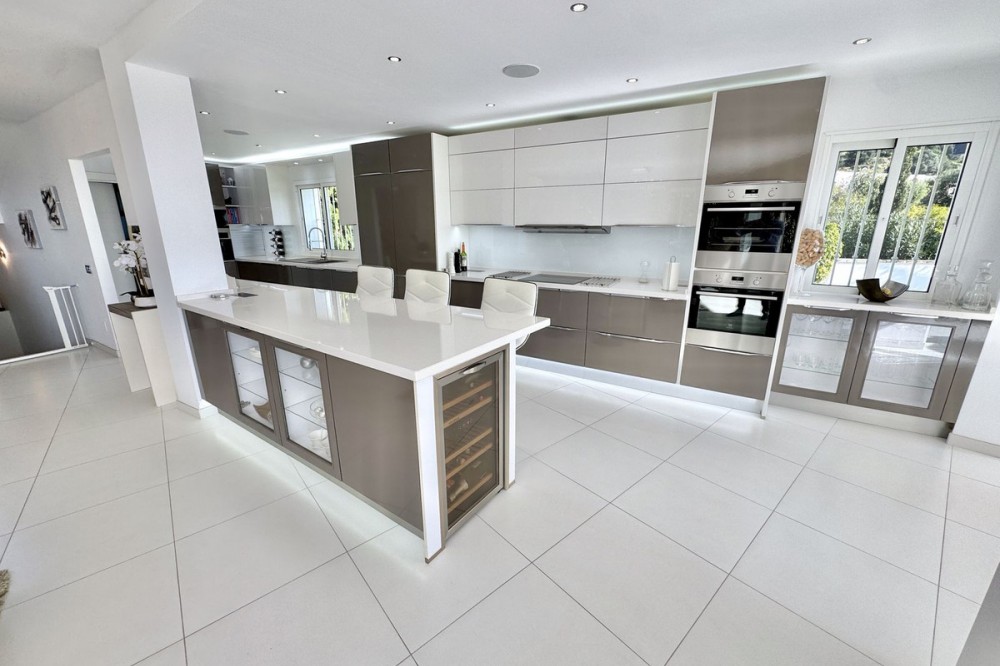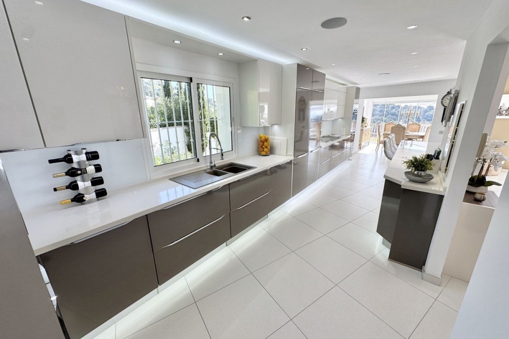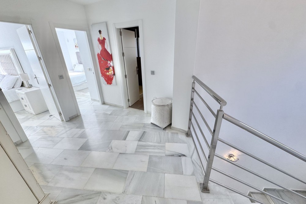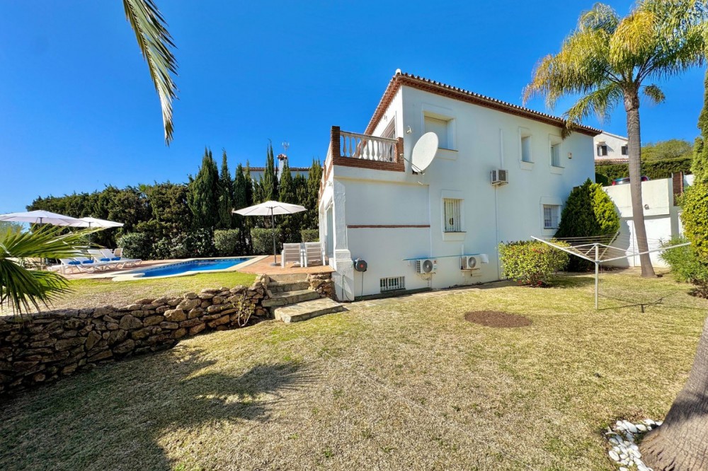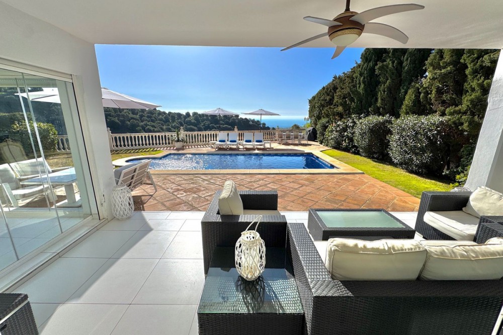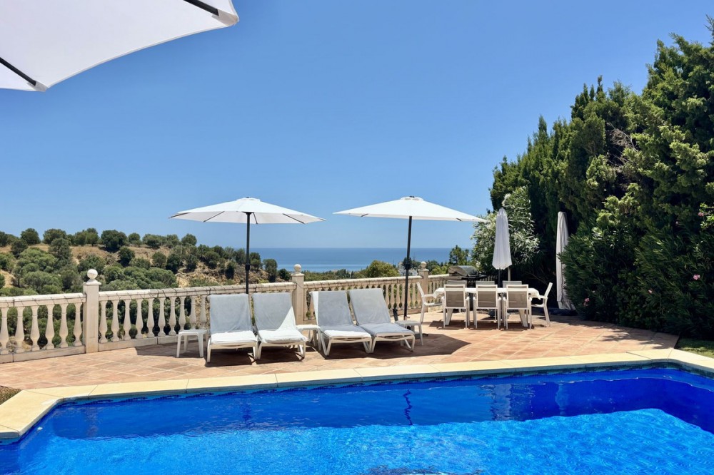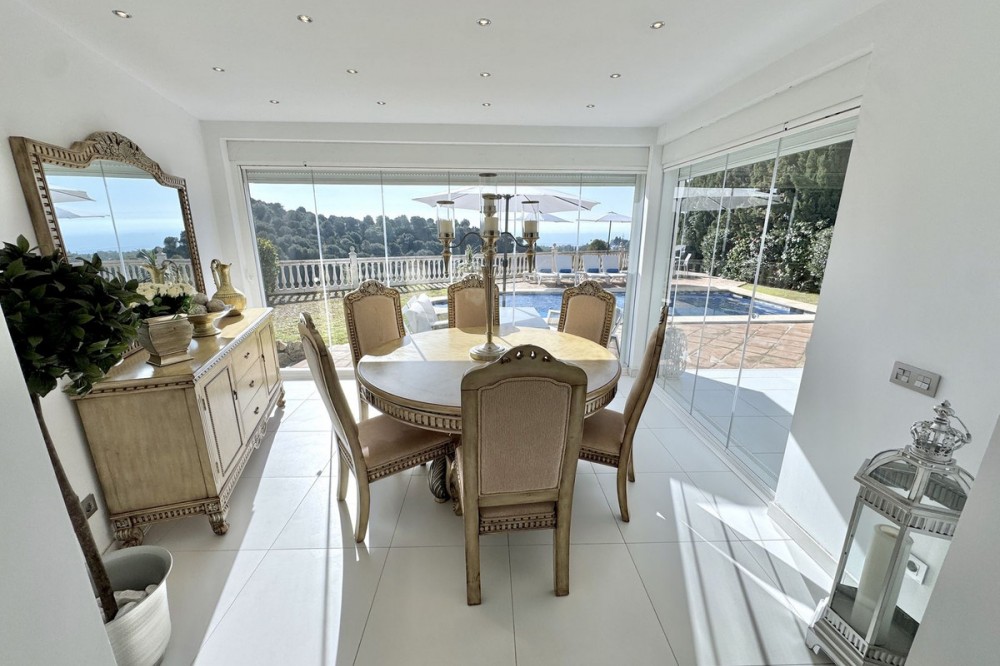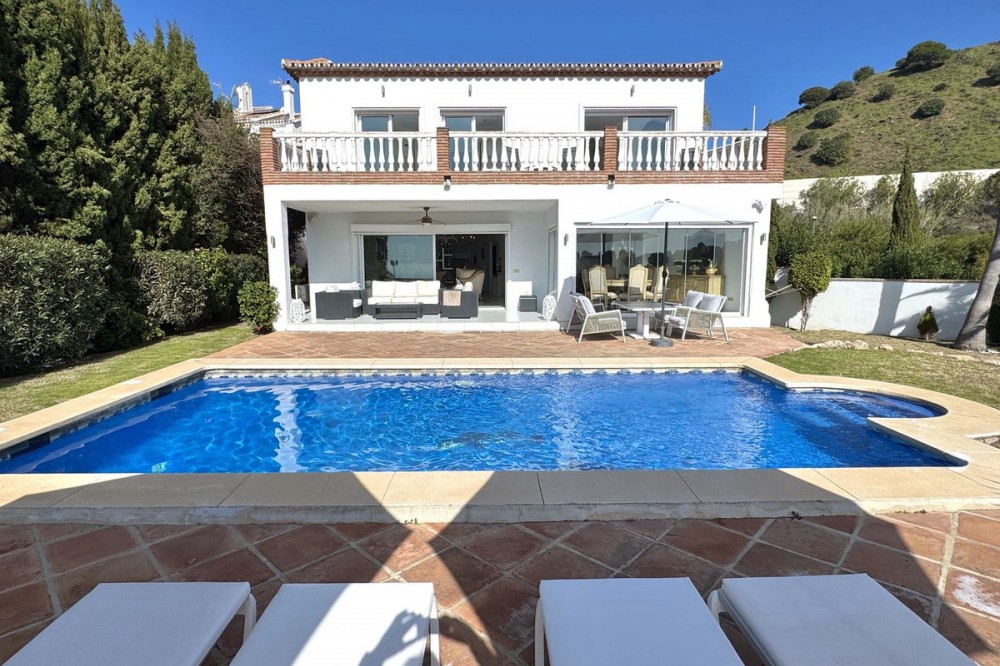 - Nieuwe aanbieding - Prachtige villa met 5 slaapkamers en 3,5 badkamers op een verhoogd perceel in Upper Calahonda, met een schitterend panoramisch uitzicht over de met bomen omzoomde heuvels tot aan de zee. Deze prachtige woning te koop in Calahonda, Mijas Costa, is centraal gelegen aan de Costa del Sol, op loopafstand van diverse populaire restaurants en op slechts ongeveer 4 minuten rijden (met de auto of taxi) van populaire stranden en restaurants aan het strand. VILLA Aan de voorzijde van de villa bevindt zich een grote parkeerplaats met een elektrische poort en een voetgangerspoort met een trap naar de veranda. BEGANE GROND: Grote houten dubbele deuren geven toegang tot de entreehal met een deur naar het toilet en een open verbinding naar de lichte en ruime open woonruimte. Deze omvat een zithoek met sfeervolle open haard, een enorme open luxe keuken met eethoek, en directe toegang tot het ontspannende overdekte terras en het zonovergoten terras bij het zwembad en de tuin. Ideaal om van de zon te genieten of gasten te ontvangen, met een prachtig panoramisch uitzicht op de zee en de met bomen omzoomde heuvels. Er is tevens een aparte bijkeuken voor de wasmachine en droger, en een aantrekkelijke trap naar zowel de bovenverdieping als de overloop. BOVENVERDIEPING: U beschikt over een ruime overloop met een groot raam en deuren naar 3 tweepersoonsslaapkamers en een tweede luxe badkamer met douche. De hoofdslaapkamer heeft een eigen inloopkast en een luxe badkamer met douche. Alle drie de tweepersoonsslaapkamers op de bovenverdieping hebben inbouwkasten en openslaande deuren naar het grote terras op het zuiden. Ook vanaf de slaapkamers en het terras op de bovenverdieping heeft u een panoramisch uitzicht op de groene heuvels en de zee. BEGANE GROND (half souterrain): Vanuit de woonkamer loopt u via een trap naar beneden naar een grote ontvangsthal, nog twee tweepersoonsslaapkamers en een derde doucheruimte, die allemaal profiteren van natuurlijk licht door de lichtkoepel. De villa is tevens voorzien van airconditioning en elektrische/handmatige rolluiken. TUIN & ZWEMBAD: Ruime tuin met gazon, berging en pompkamer voor het zwembad. Daarnaast een terras bij het zwembad en een zwembad zelf, alles met een panoramisch uitzicht op de open zee en de groene heuvels. LOCATIE Gelegen in Upper Calahonda, op loopafstand van een aantal populaire lokale restaurants en op slechts ongeveer 4 minuten rijden (met de auto of taxi) van populaire stranden en restaurants aan het strand. Deze accommodatie biedt tevens gemakkelijke toegang tot beide snelwegen langs de kust, waardoor de reistijd naar de meeste plaatsen en de luchthaven van Malaga kort is. Het populaire stranddorp "La Cala de Mijas" ligt op slechts ongeveer 8 minuten rijden en de ongelooflijk mooie oude binnenstad van Marbella met zijn met palmbomen omzoomde boulevard ligt op slechts ongeveer 15 minuten rijden. De luchthaven van Malaga ligt op circa 30 minuten rijden. DE LEVERANCIER LAAT ONS HET VOLGENDE WETEN: De IBI (gemeentebelasting) bedraagt ongeveer... € 901 per jaar. De afvalheffing (BASURA) bedraagt ongeveer € 142 per jaar. De servicekosten bedragen circa € 37 per maand. We zijn momenteel bezig met het maken van een video-rondleiding door de woning, maar als u actief op zoek bent naar een villa met 3-5 slaapkamers in het centrum van de Costa del Sol, wacht dan niet langer en neem nu contact met ons op om deze prachtige woning met schitterend uitzicht te reserveren of te bezichtigen.
