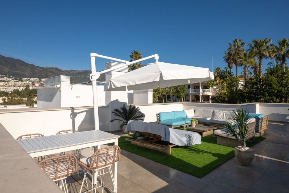 - Word wakker met het geluid van de zee en de eindeloze blauwe horizon in dit uitzonderlijke duplex penthouse direct aan de kust in Torrequebrada, Benalmádena. Ontworpen voor wie privacy, zonlicht en een panoramisch uitzicht op de Middellandse Zee waardeert, biedt deze woning met drie slaapkamers een zeldzame kans om een werkelijk bevoorrechte woning aan zee te bezitten. Deze woning, voltooid in 2020 in de exclusieve, beveiligde woonwijk LAR BAY, biedt directe toegang tot de boulevard en het strand. Stap naar buiten en u bent binnen enkele minuten op het zand, de zee en in alle rust van de Costa del Sol. Het populaire Yucas Café & Bar ligt op korte loopafstand, ideaal voor een diner bij zonsondergang aan het water. Binnen stroomt het natuurlijke licht de open woonruimte binnen, waar de elegante zithoek, de eetruimte en de volledig uitgeruste designkeuken naadloos in elkaar overvloeien. Schuifdeuren van vloer tot plafond geven toegang tot een ruim terras met uitzicht op de Middellandse Zee – een perfecte plek om spectaculaire zonsopgangen en maanverlichte avonden te bewonderen. Boven, op het zeer ruime dakterras, bevindt zich een waar toevluchtsoord. Of u nu in alle privacy wilt zonnebaden, van een glas wijn bij zonsondergang wilt genieten of onvergetelijke diners onder de sterren wilt organiseren, het uitzicht is simpelweg adembenemend. De drie slaapkamers zijn zorgvuldig geplaatst voor comfort en rust, en beschikken alle over inbouwkasten en grote ramen. De master suite heeft een en-suite badkamer met dubbele wastafel en een eigen, intiem terras. Bewoners profiteren van prachtig aangelegde gemeenschappelijke ruimtes en twee zwembaden: een ideaal om baantjes te trekken en een ander om te ontspannen. Dit alles op slechts een steenworp afstand van het strand in een van de meest gewilde wijken van Benalmadena. Met de luchthaven van Malaga op slechts 14 km afstand en de bruisende stad Malaga binnen handbereik, is dit penthouse perfect als luxe permanente woning, vakantiehuis of hoogwaardige investering aan de Costa del Sol. De woning beschikt over een eigen parkeerplaats en een berging, die gunstig naast elkaar liggen. Een tweede parkeerplaats met meubilair is mogelijk/optioneel. Let op: de aankoopprijs is exclusief belastingen, zoals overdrachtsbelasting (7%). In totaal geschat op 10-11%.