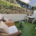 - Volledig gerenoveerd appartement met 2 slaapkamers in Los Balcones de la Quinta, Benahavís Dit prachtig gerenoveerde appartement op de begane grond is gelegen in de charmante, afgesloten woonwijk Los Balcones de la Quinta, in het gewilde La Quinta-gebied van Benahavís. Het biedt comfort, stijl en een rustige omgeving met een mooie ligging op het zuidwesten en uitzicht op de tuinen en de omliggende bergen. Het appartement beschikt over een ruime en lichte woon- en eetkamer met een geïntegreerde, open keuken voorzien van Bosch-apparatuur, wat zorgt voor een moderne en uitnodigende leefruimte. Vanuit de woonkamer is er directe toegang tot het overdekte terras, waarvan een deel eenvoudig kan worden afgesloten om een extra ruimte te creëren, ideaal als thuiskantoor, tv-kamer of leeshoek. De hoofdslaapkamer beschikt over een eigen badkamer, kleedruimte en een privéterras, terwijl een gastenslaapkamer met aparte badkamer comfortabele accommodatie biedt voor familie of bezoekers. Er is een eigen parkeerplaats voor één auto beschikbaar. Gelegen in een rustige, beveiligde woonwijk in een van de meest gevestigde woongebieden van La Quinta, dicht bij golfbanen, de natuur en op korte rijafstand van San Pedro, Puerto Banús en het strand, is dit een werkelijk prachtig pand, perfect geschikt als permanente woning of als stijlvol vakantiehuis.
